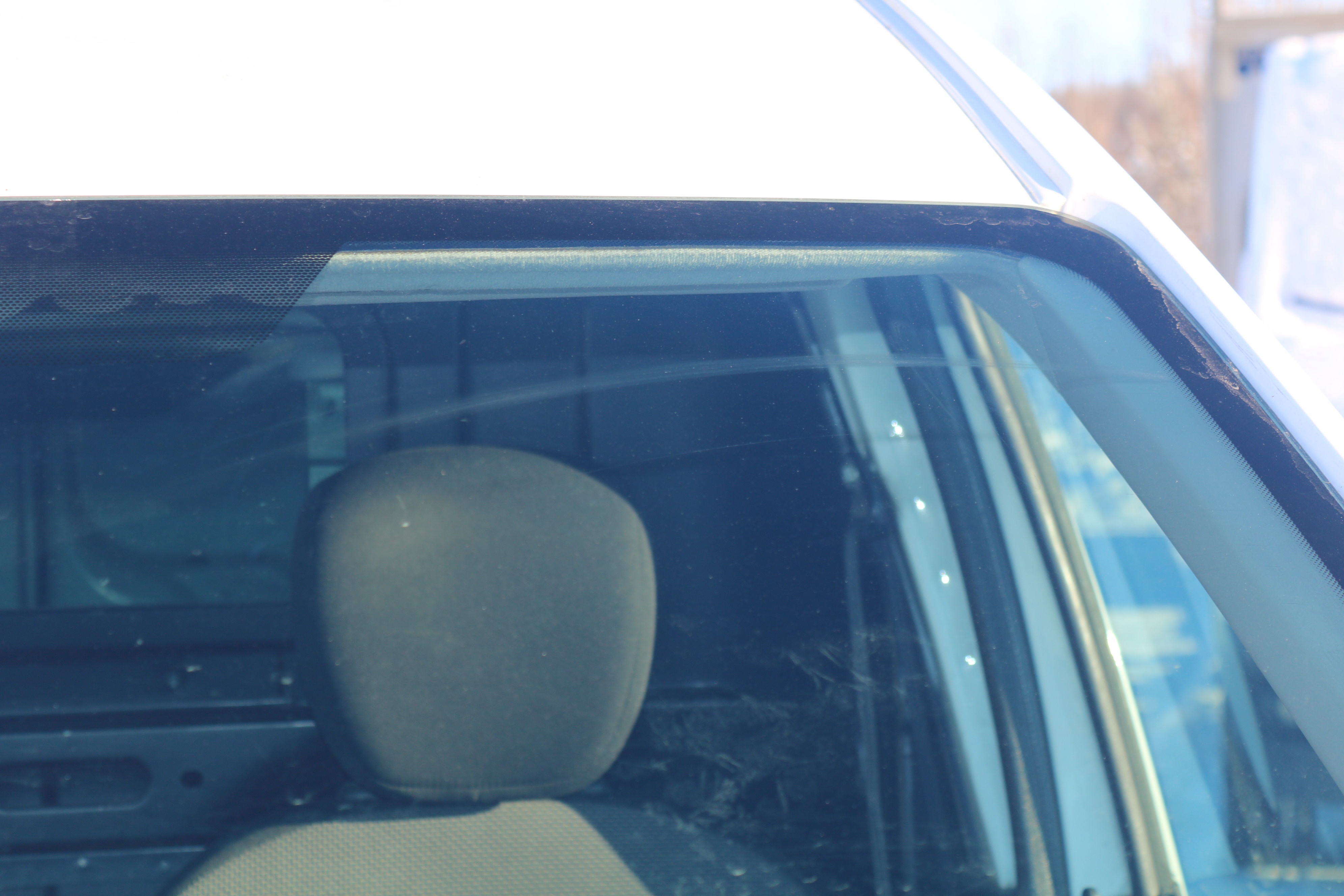 There are scratch marks on the windshield from bad windshield wipers.