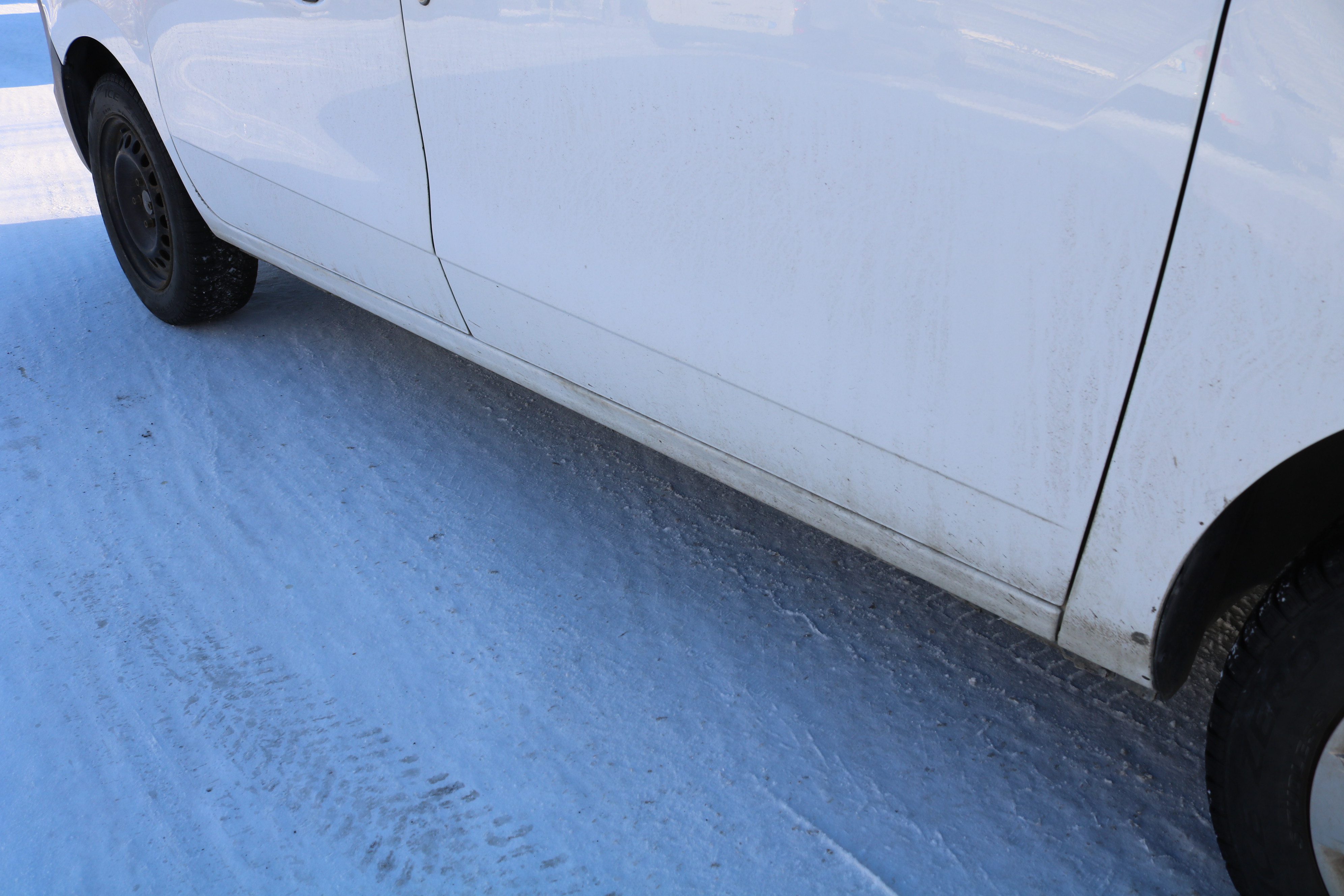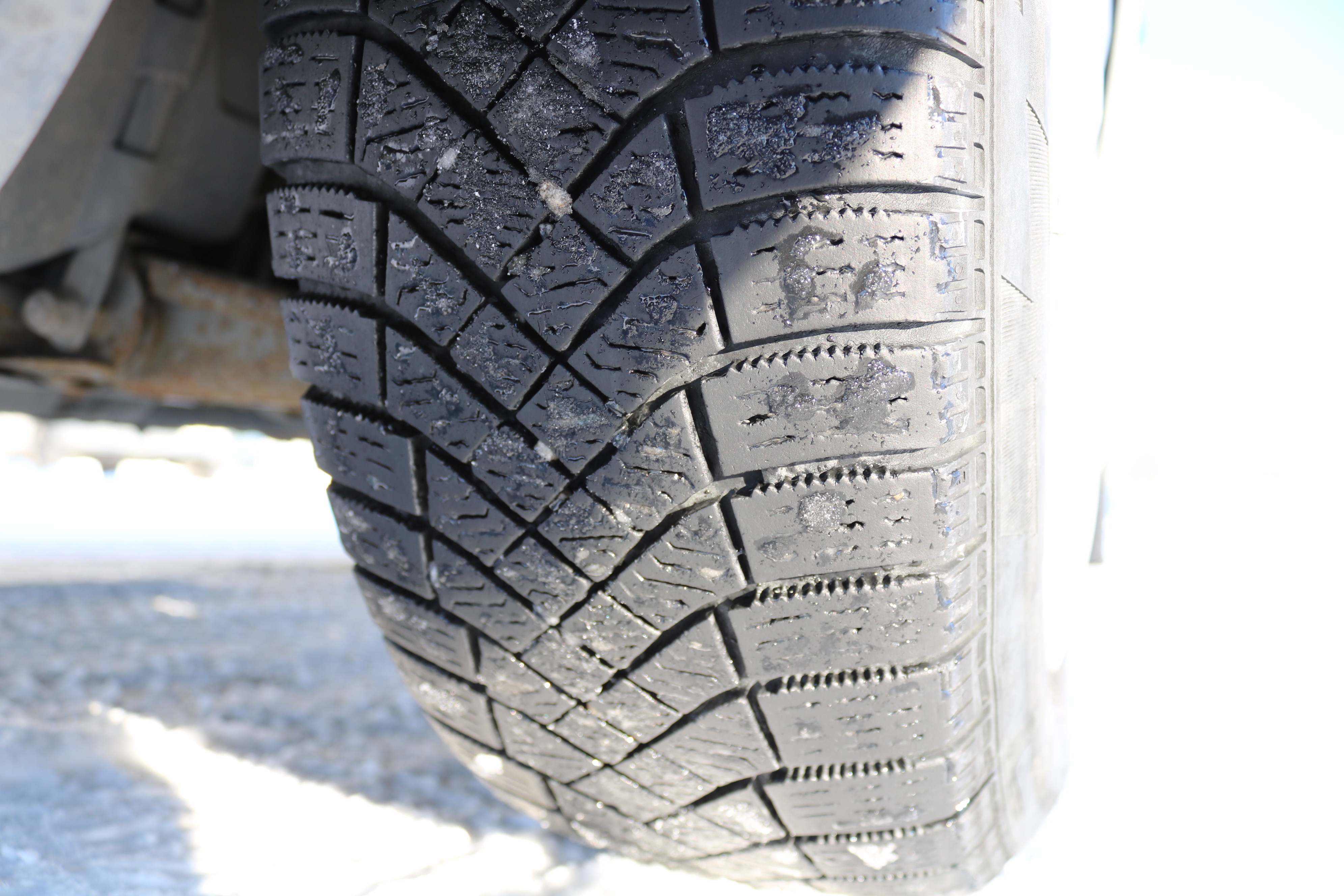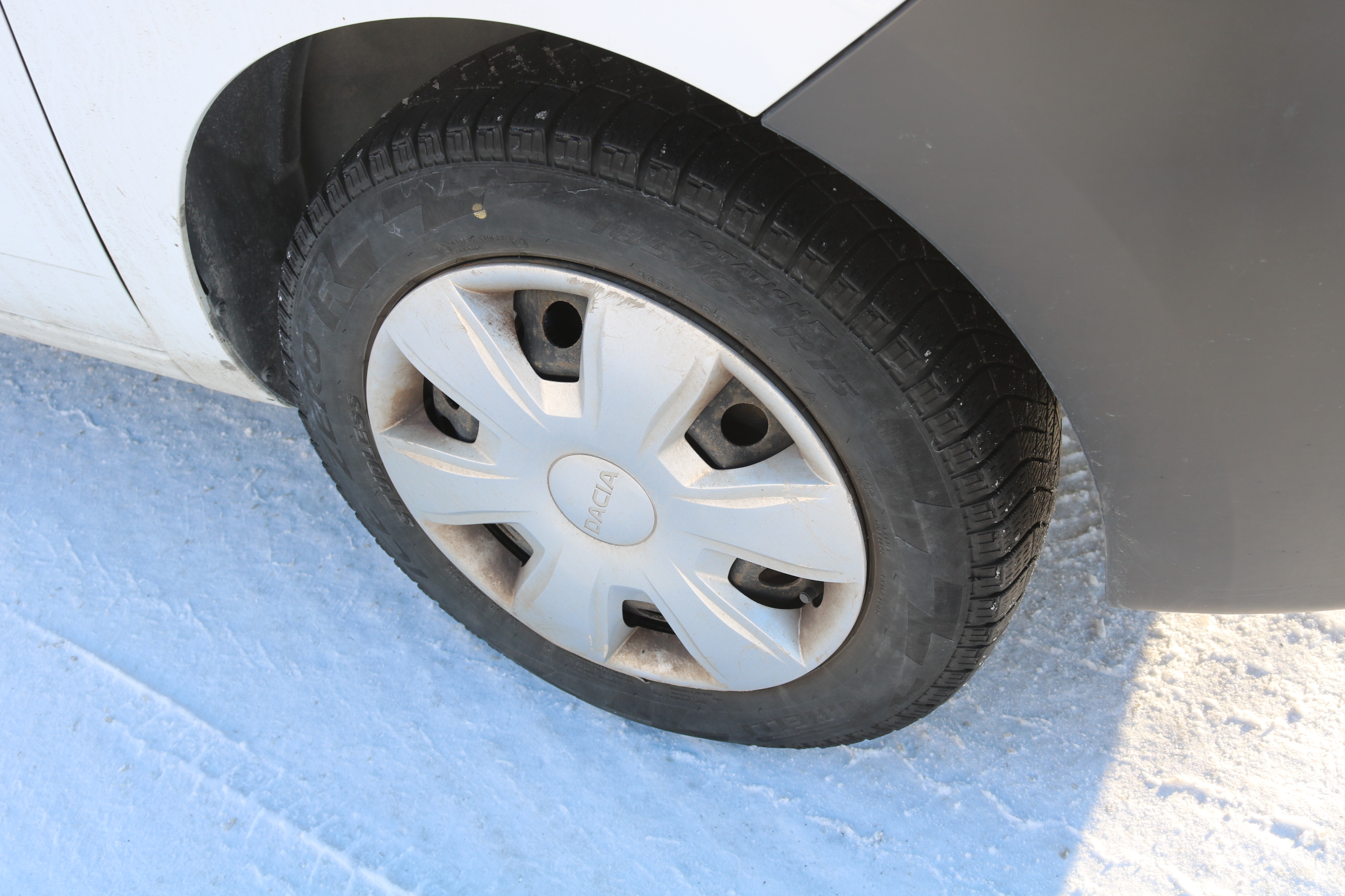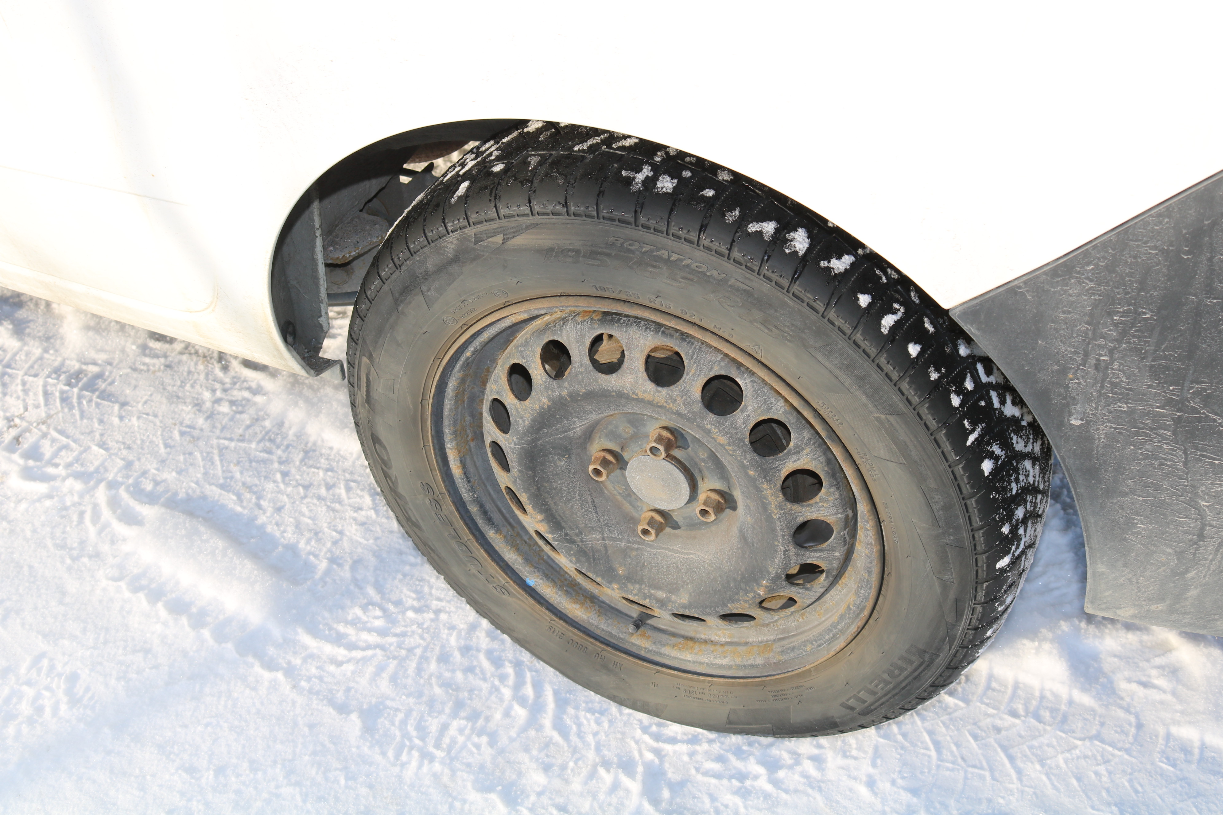 The craftsman's car is on studless winter tires. Worn out.