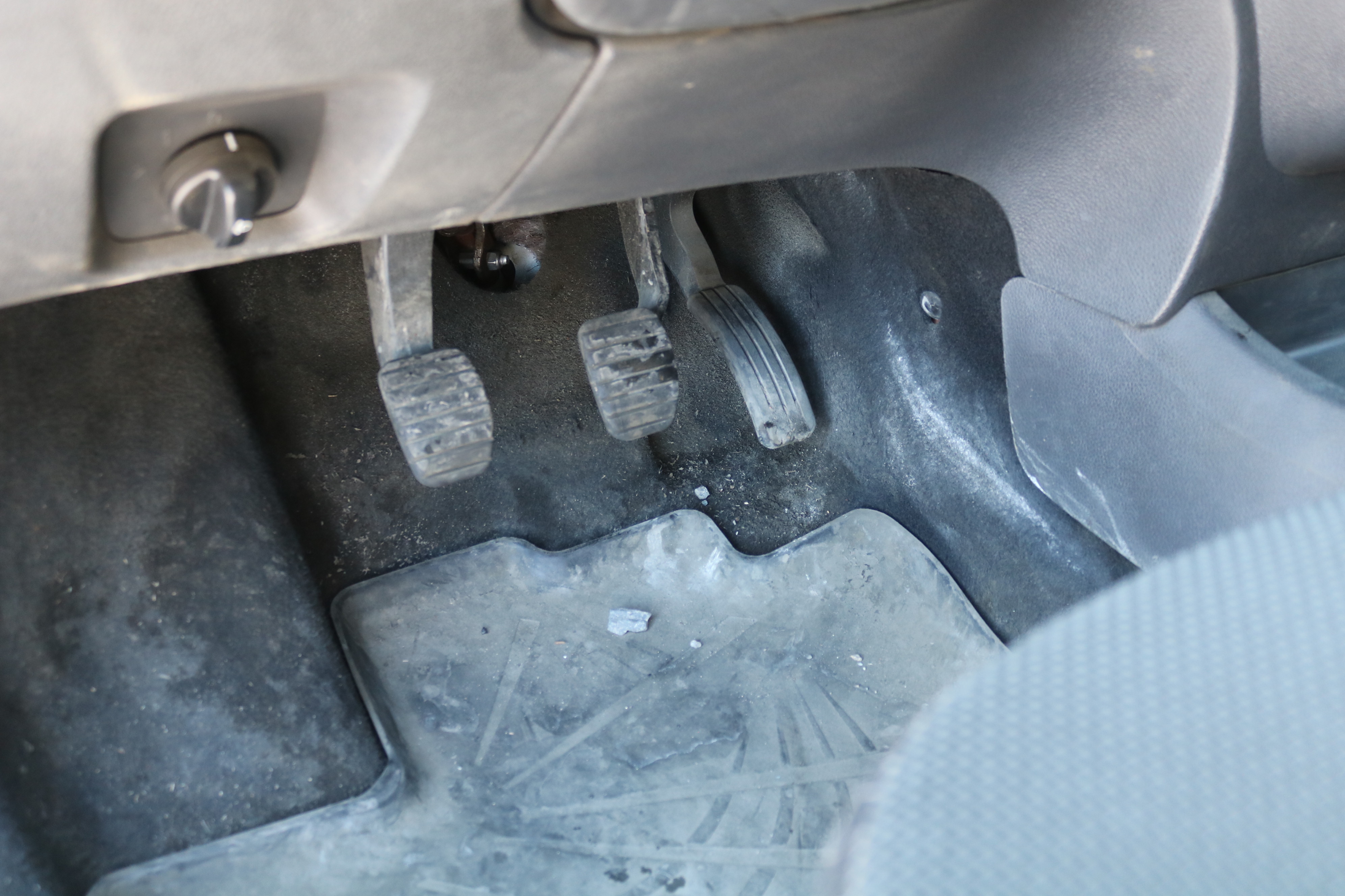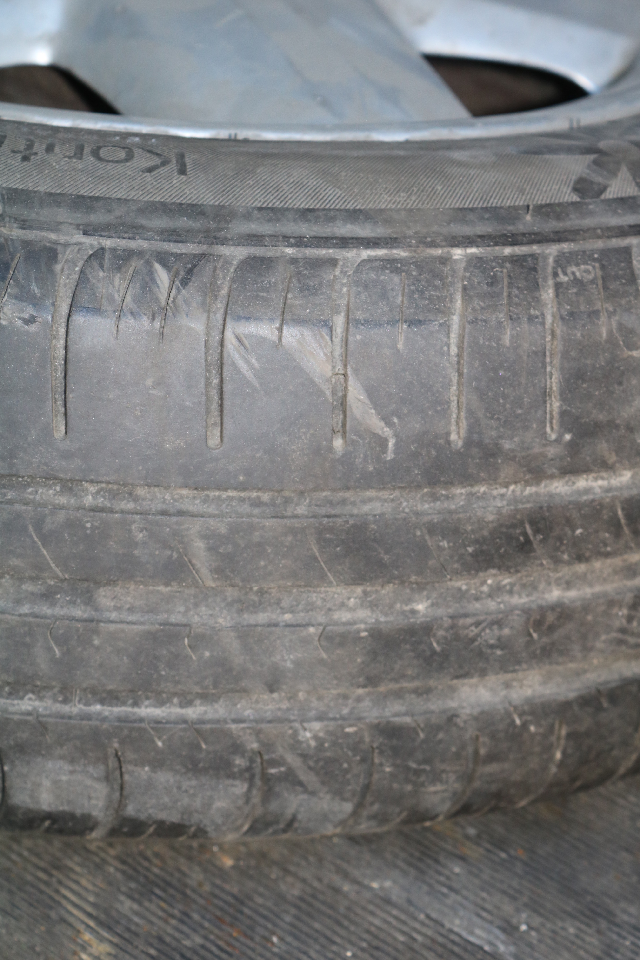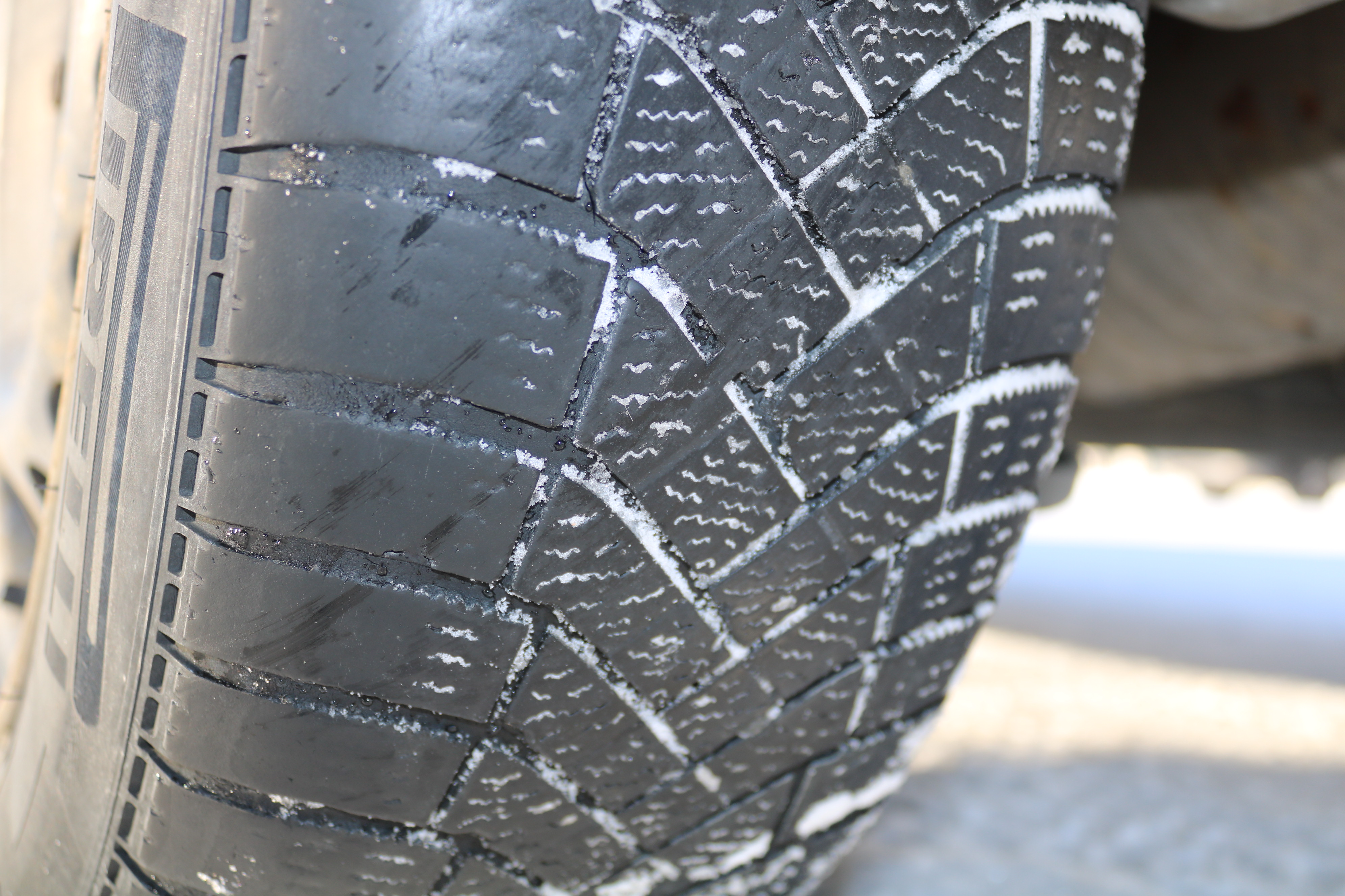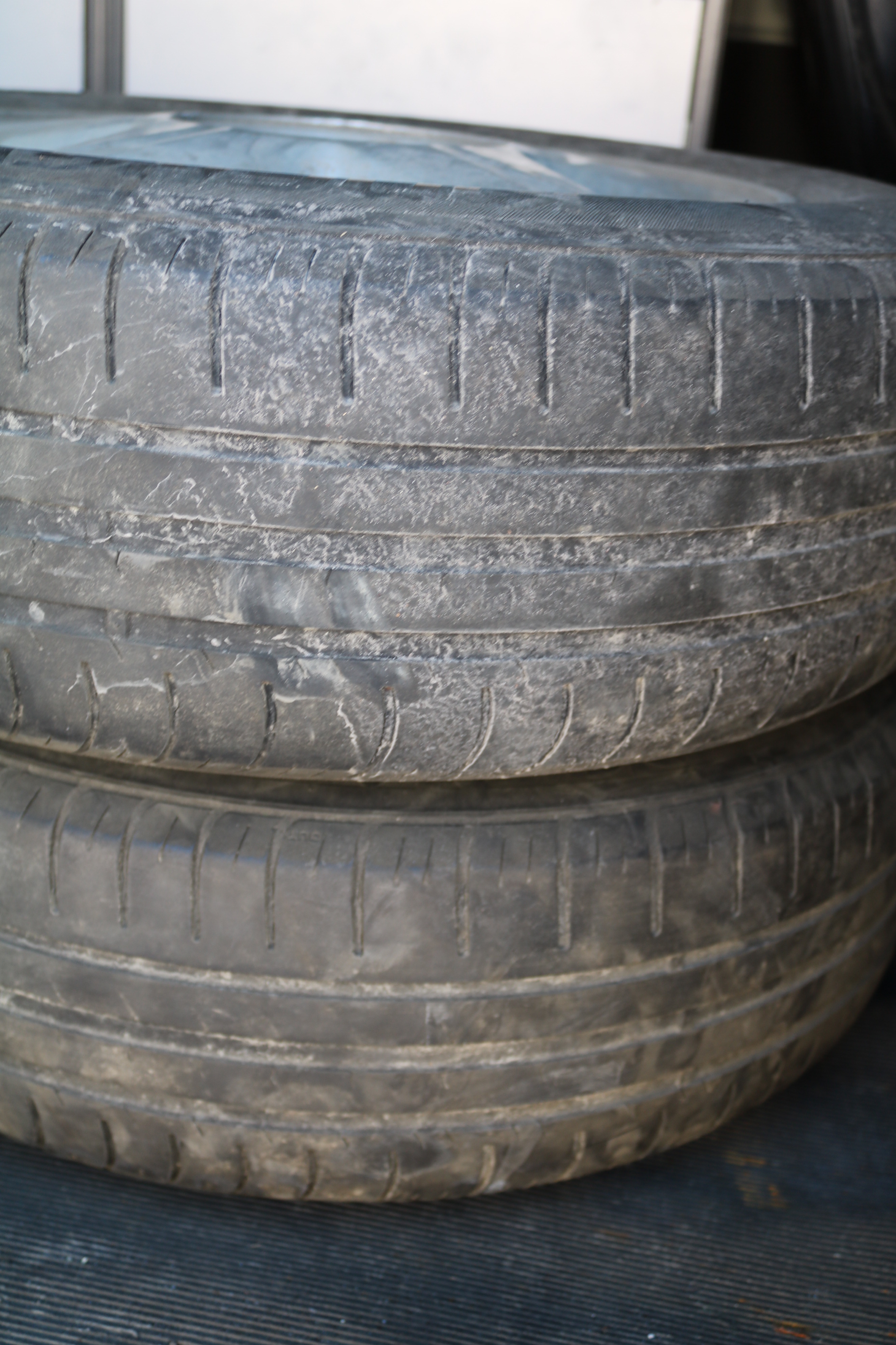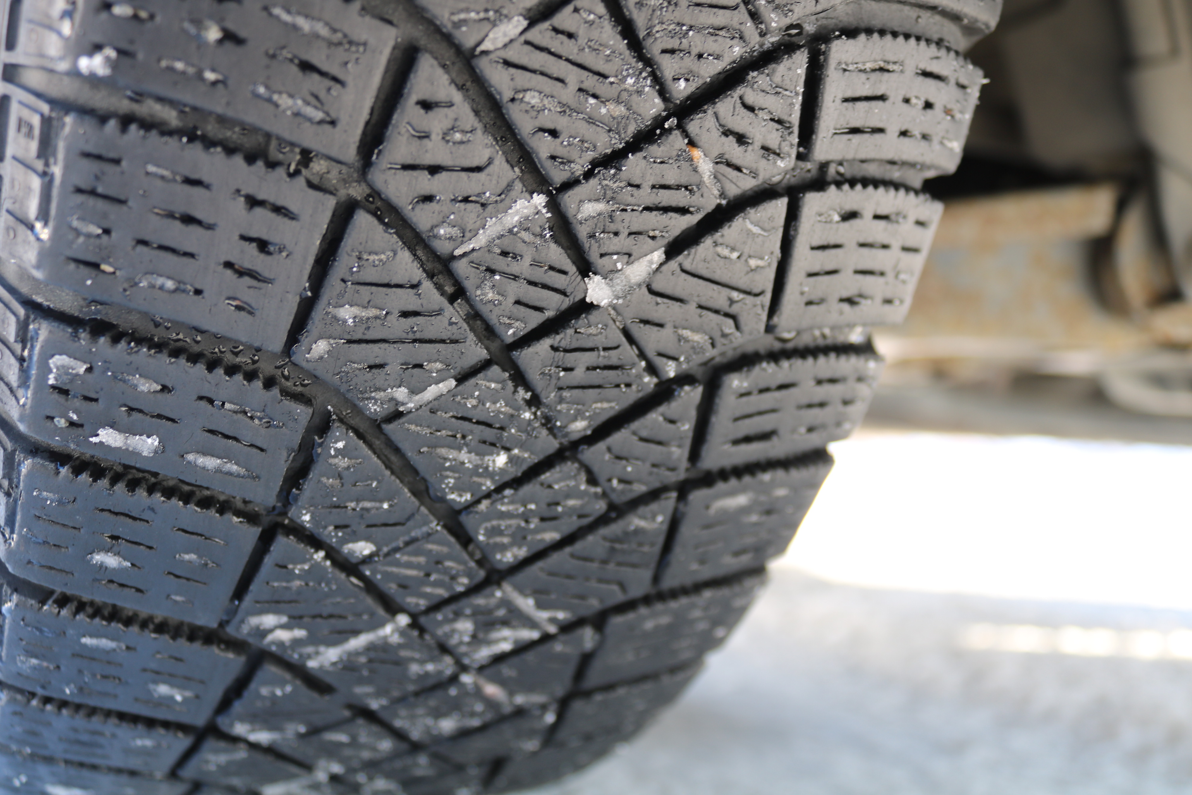 The craftsman's car is on studless winter tires. Worn out.