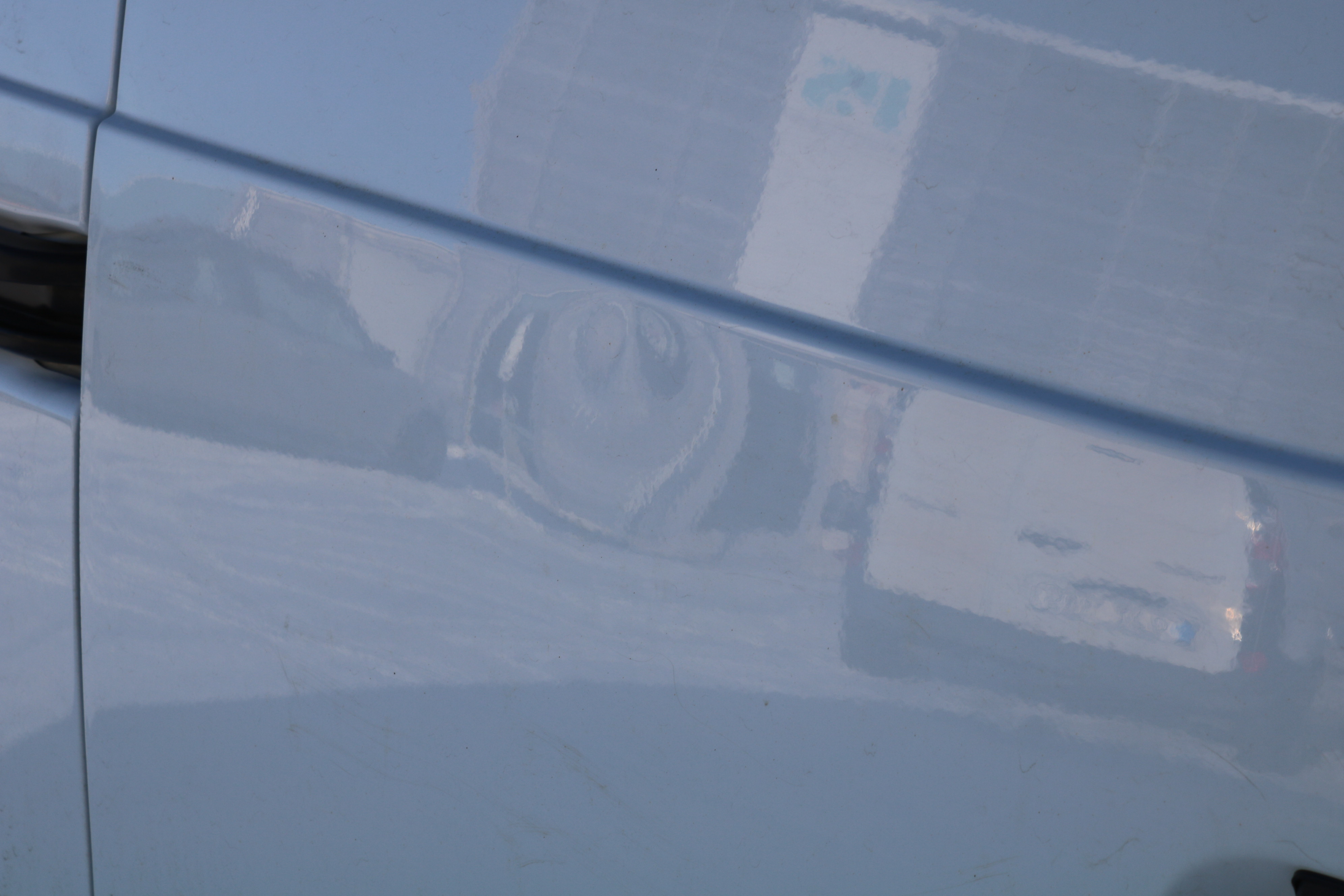 The craftsman's car has a matte paint finish, scratches, stone chips, scuffs, and paint residue and decals are also found on the car.