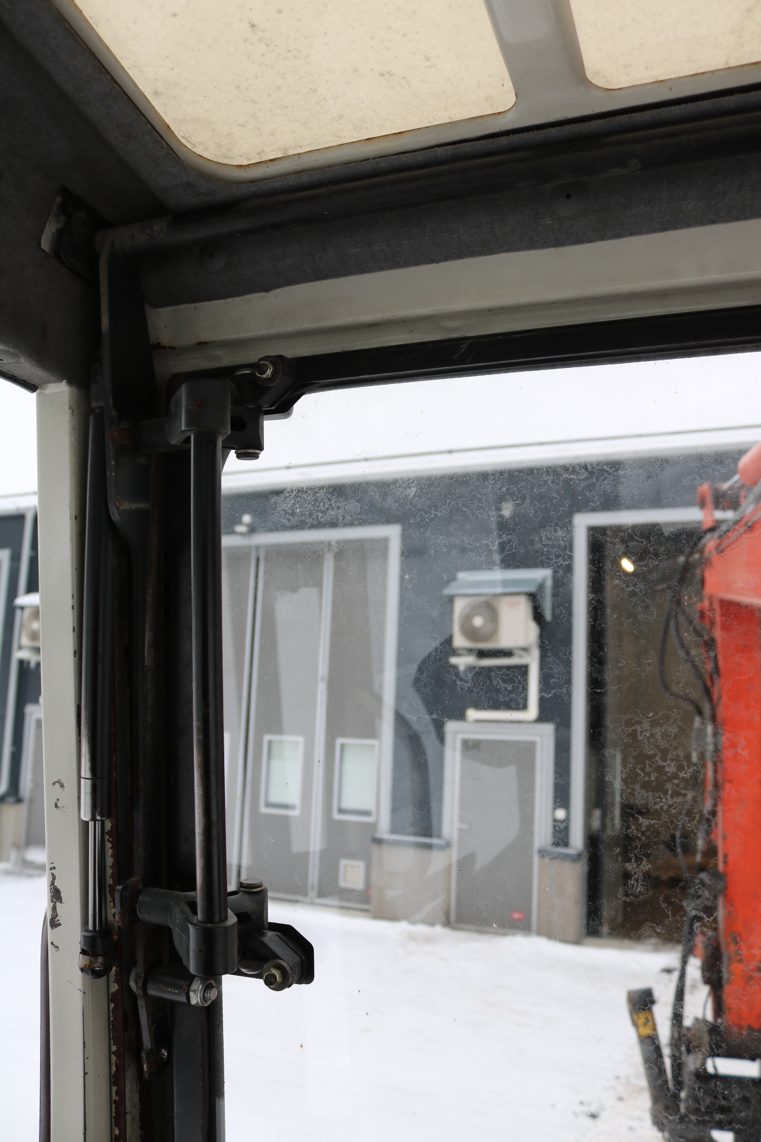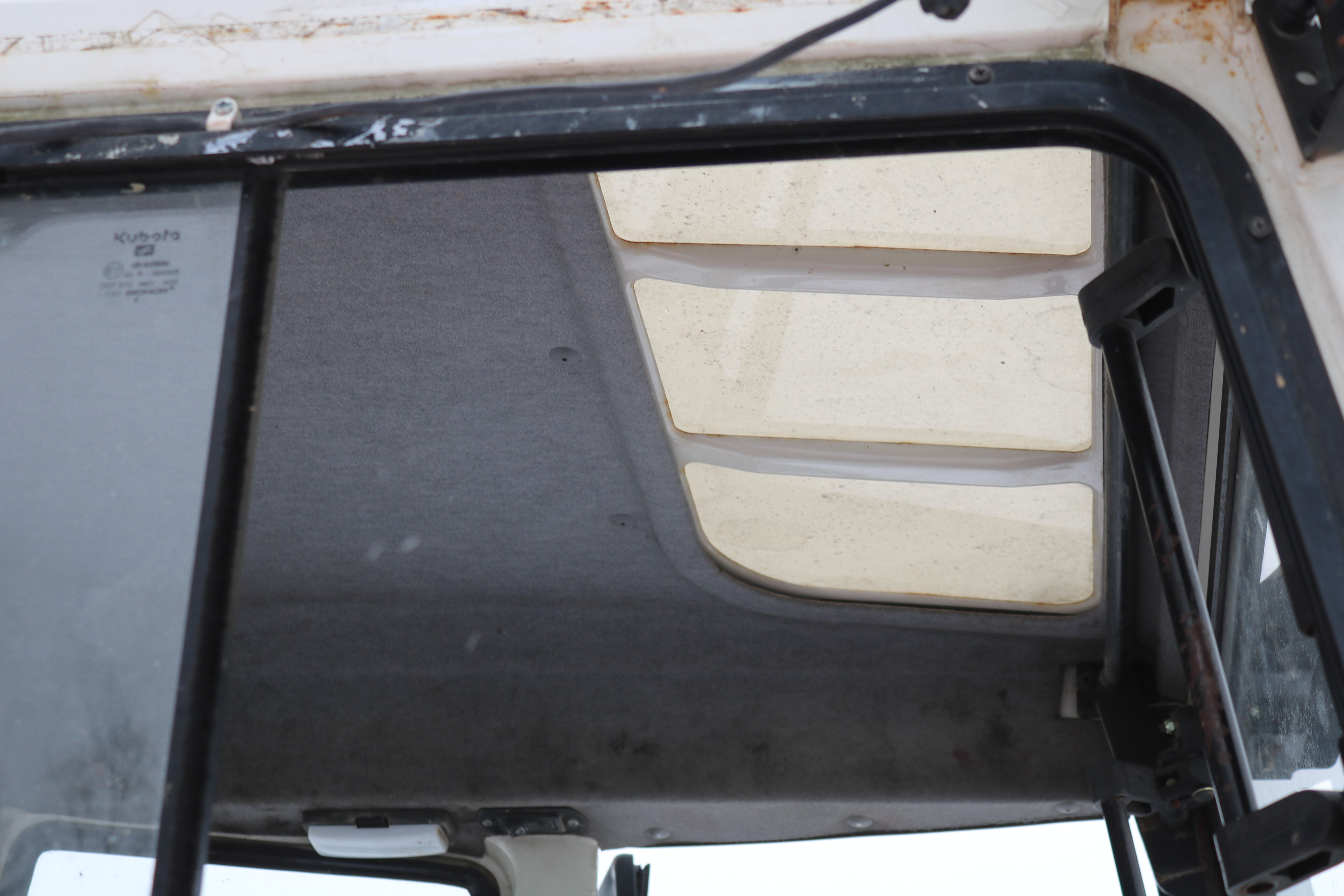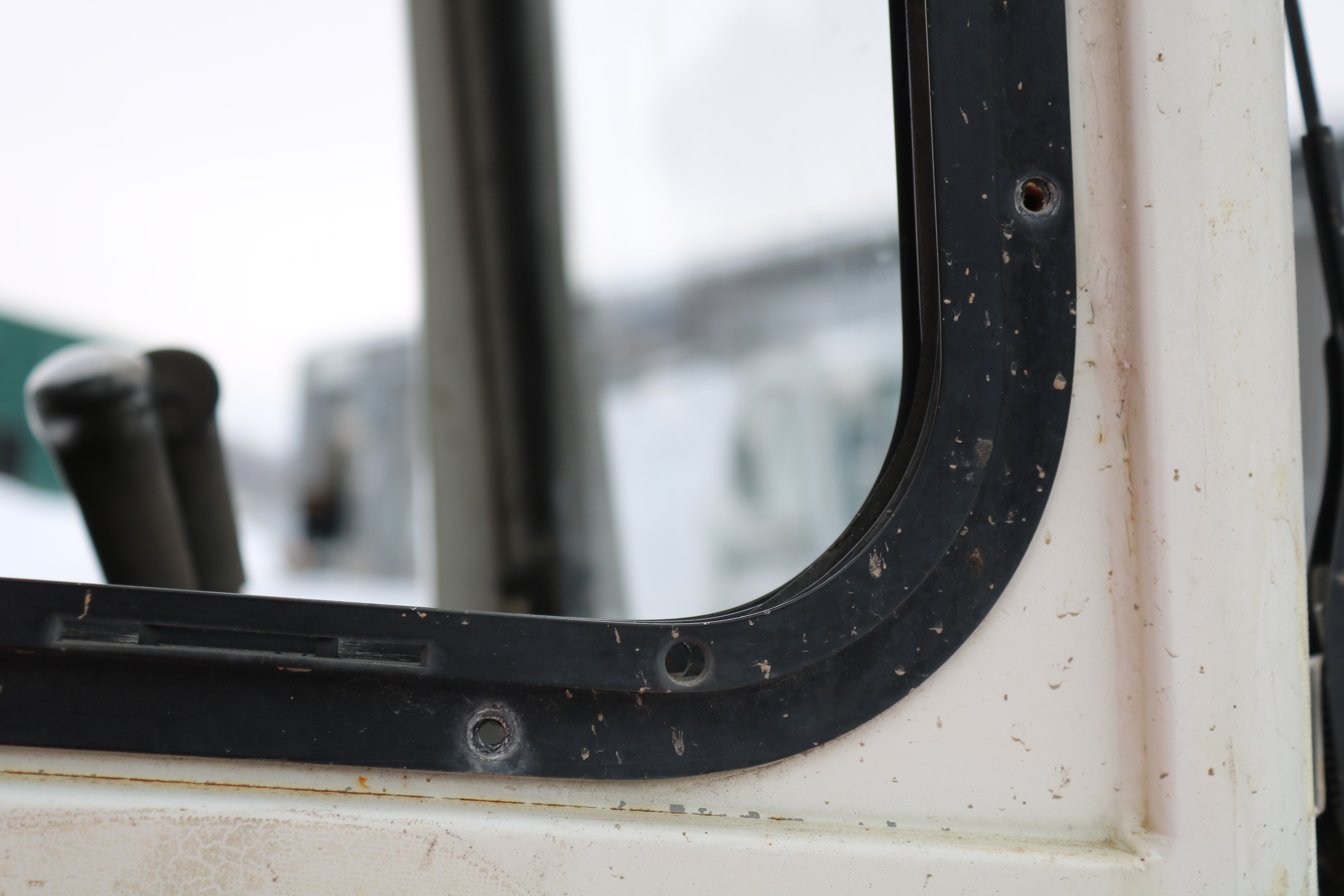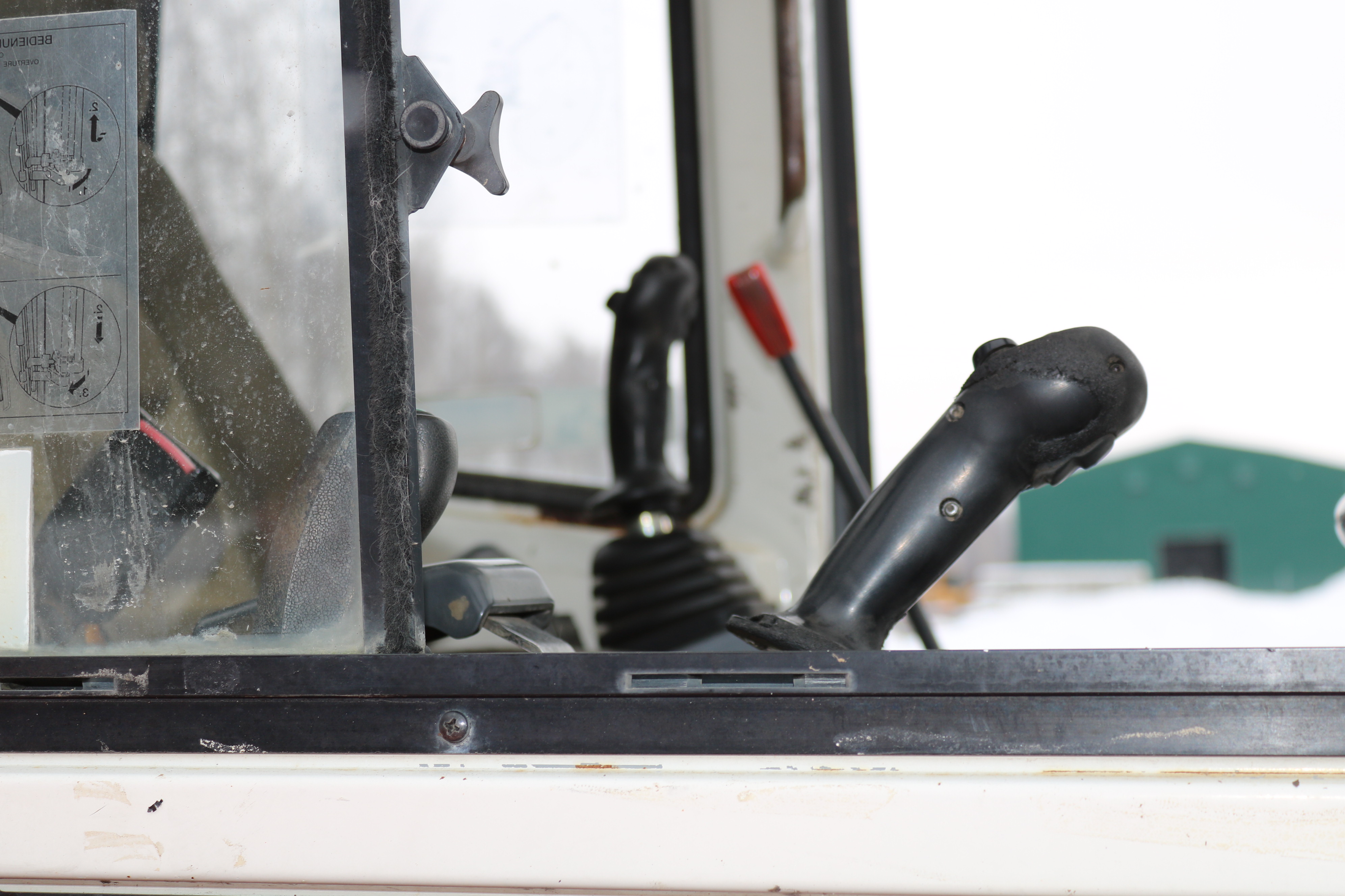 The window on the right side of the cab is broken, but a new window is included that the buyer can install themselves.