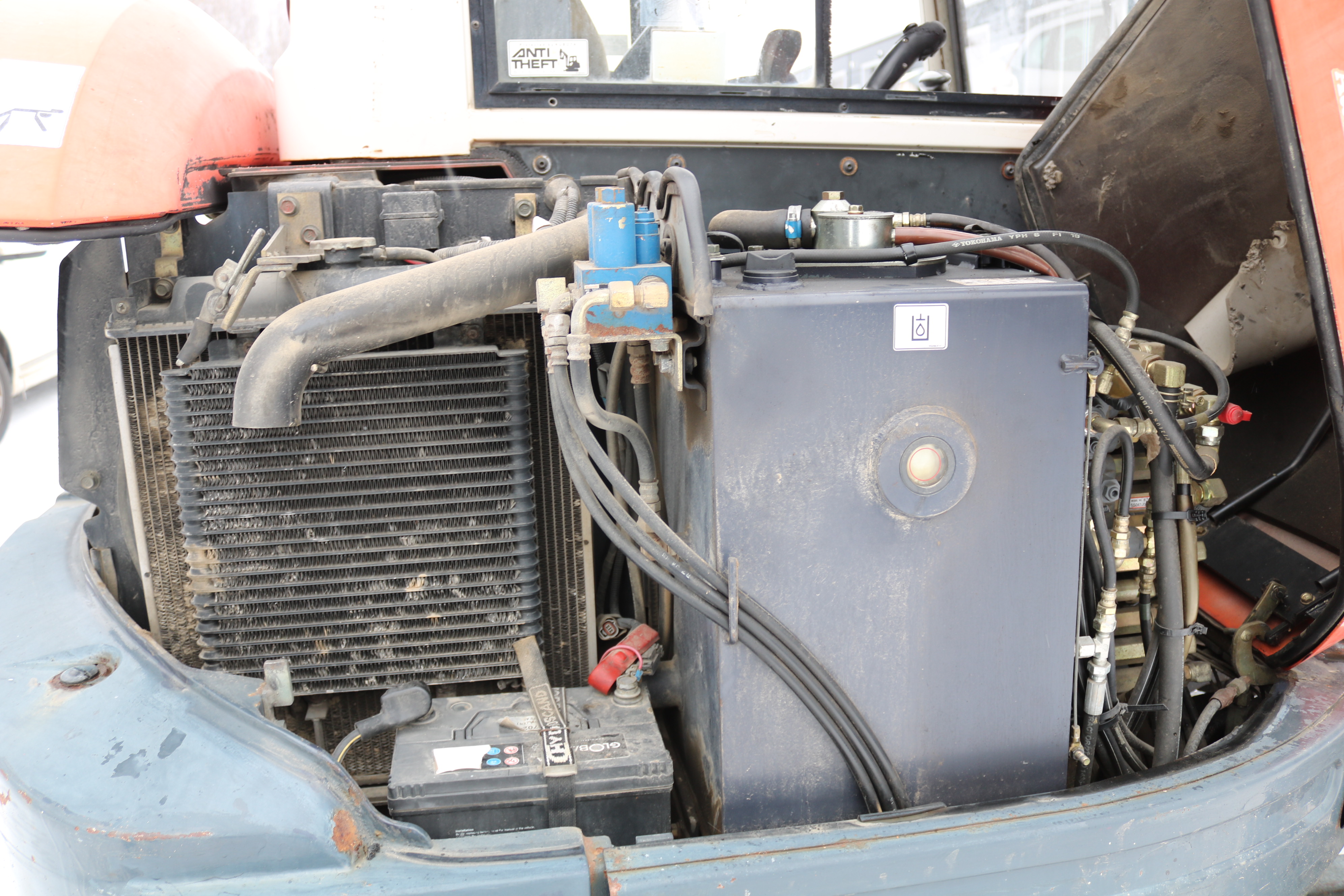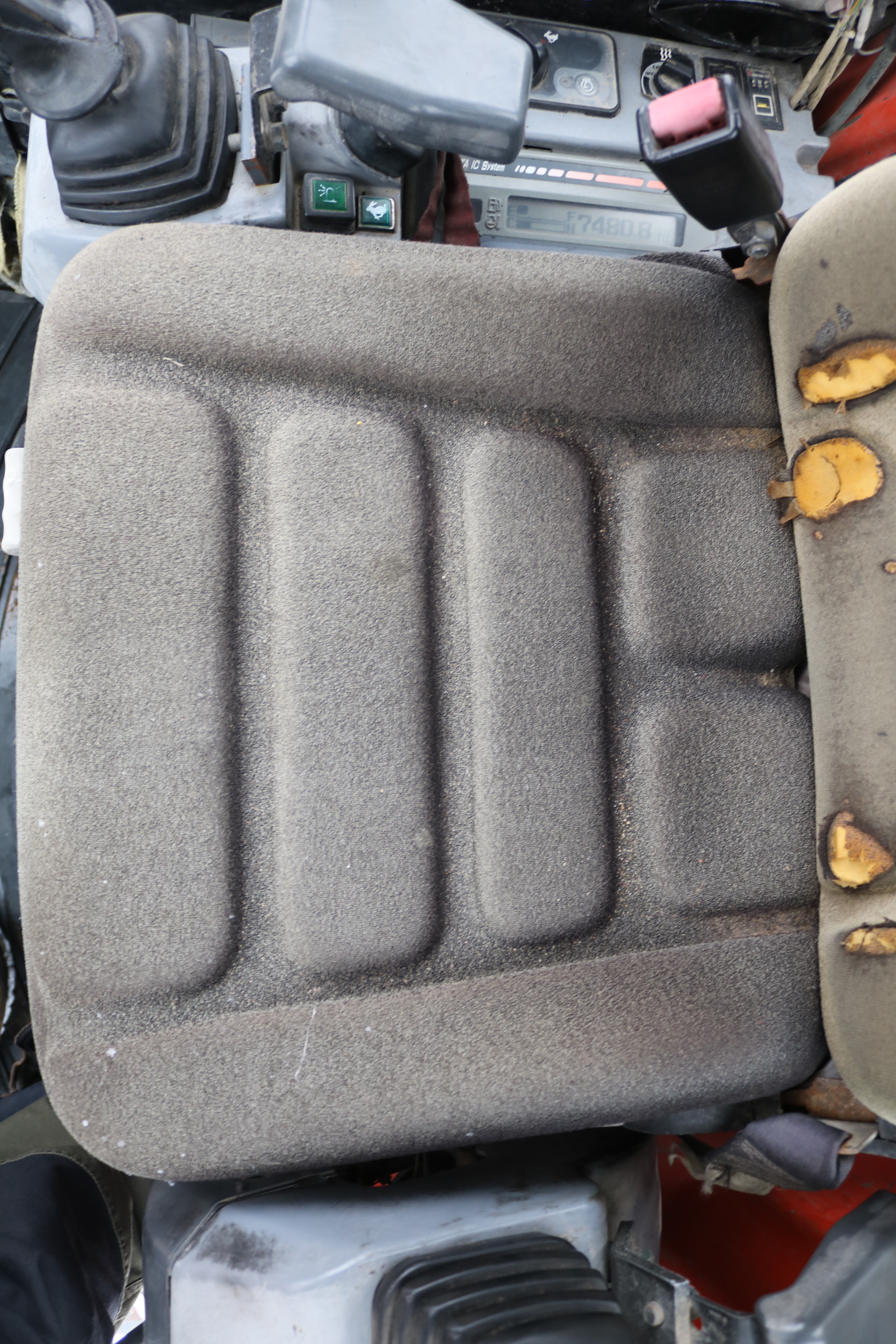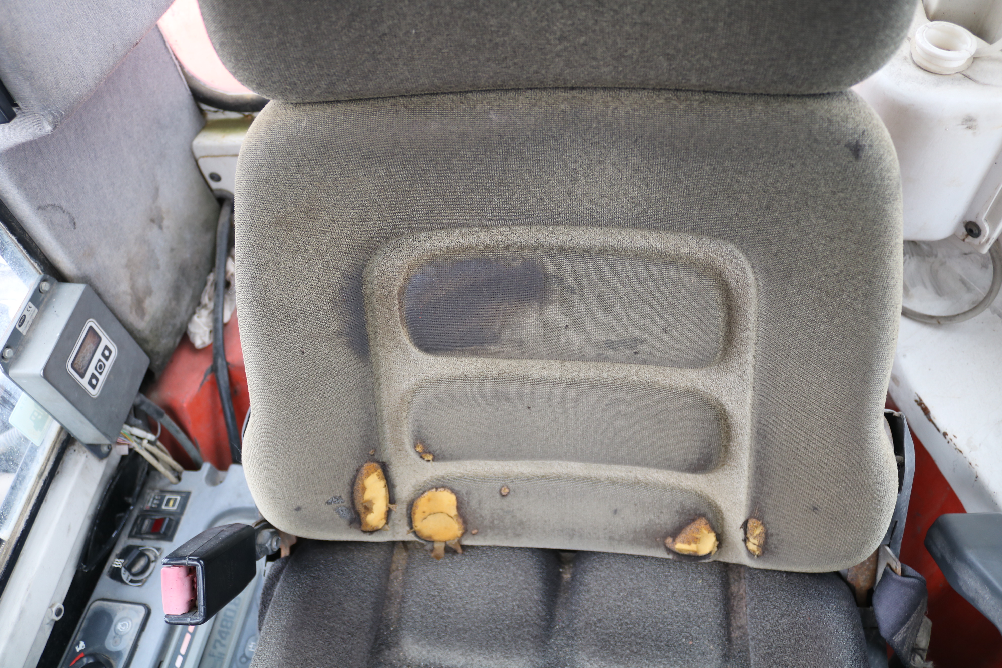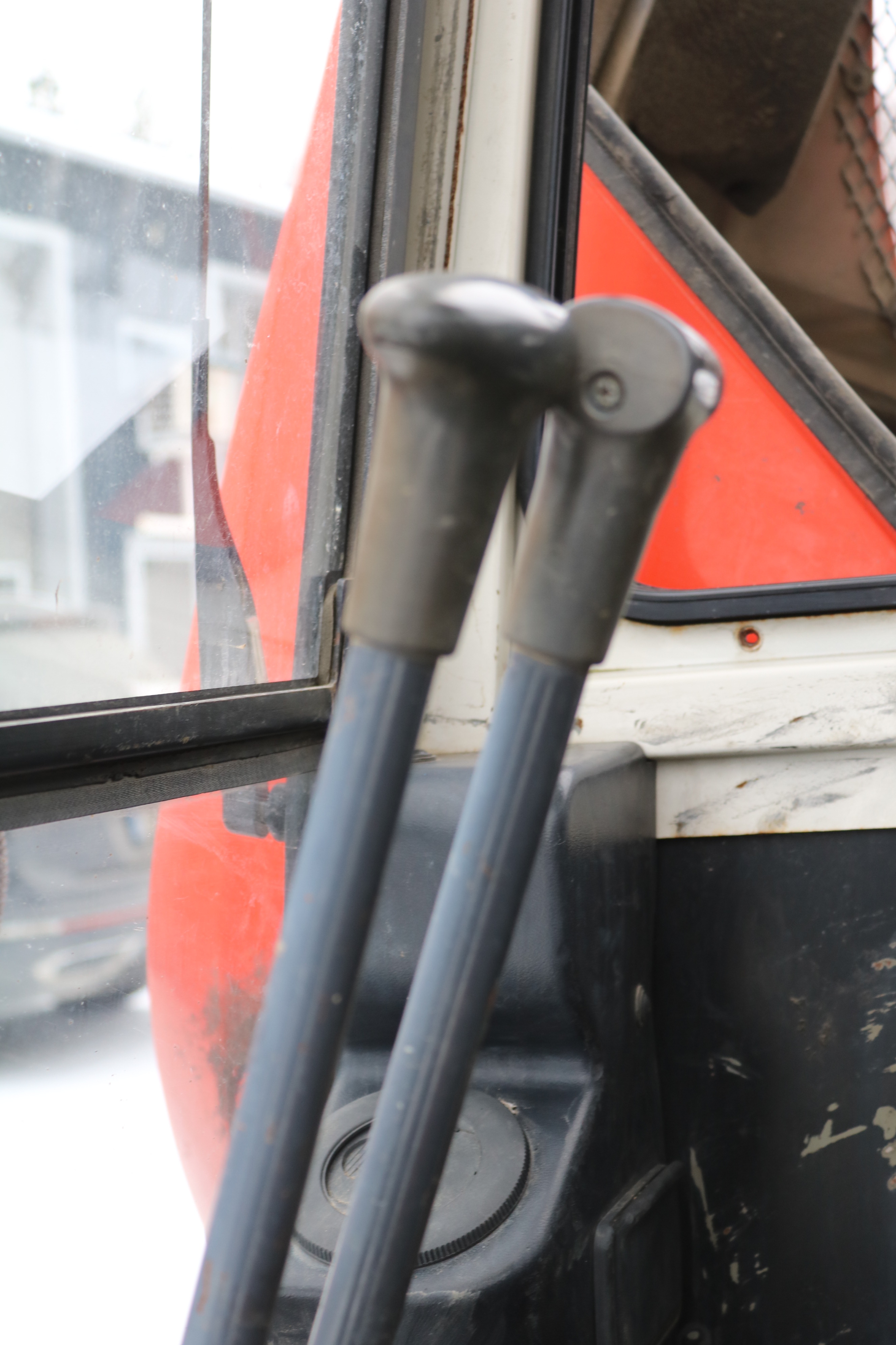 The window on the right side of the cab is broken, but a new window is included that the buyer can install themselves.