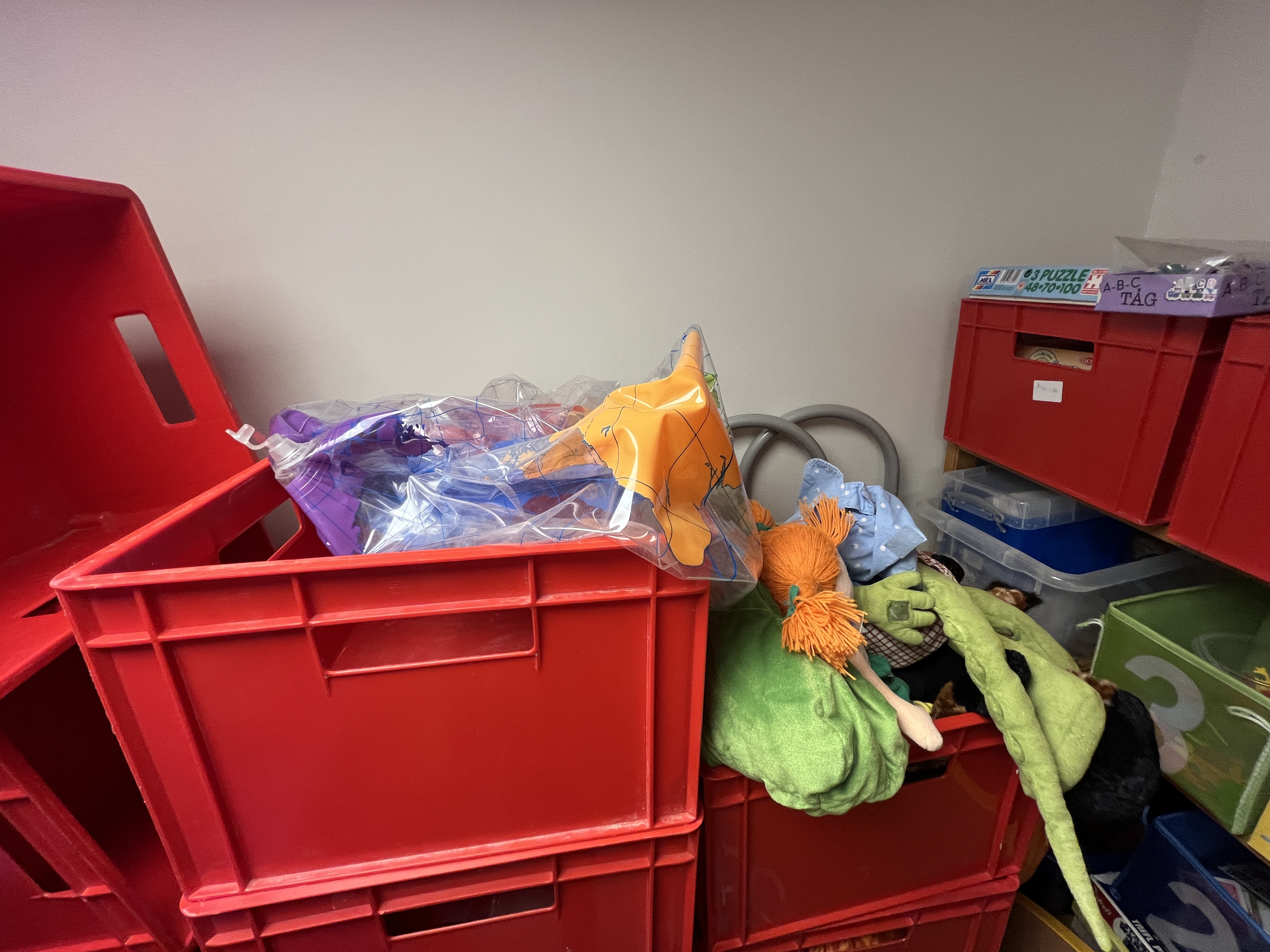 • Contents: games, stuffed animals, building materials, play materials