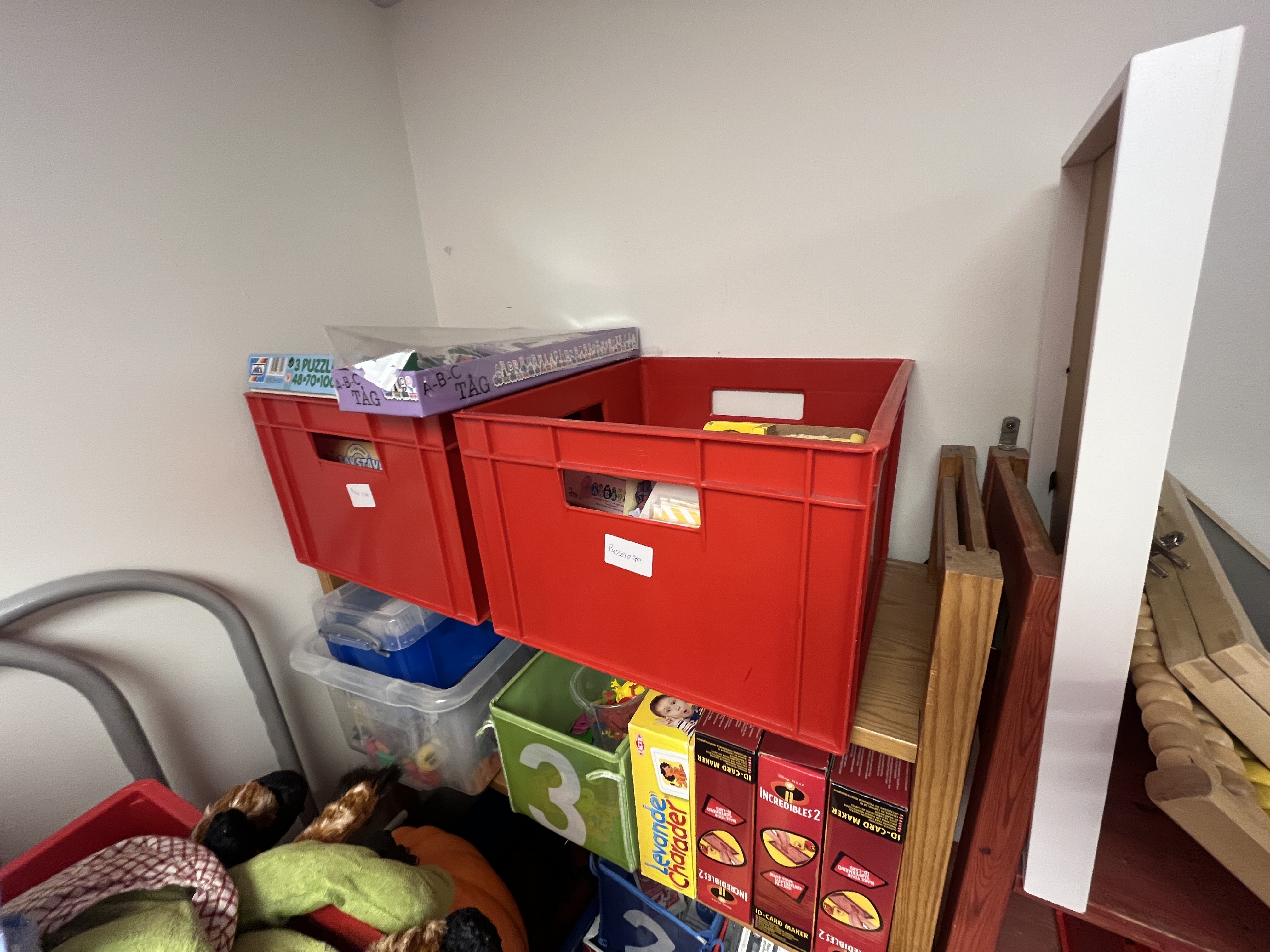 • Shelf with games, train track and animal toys