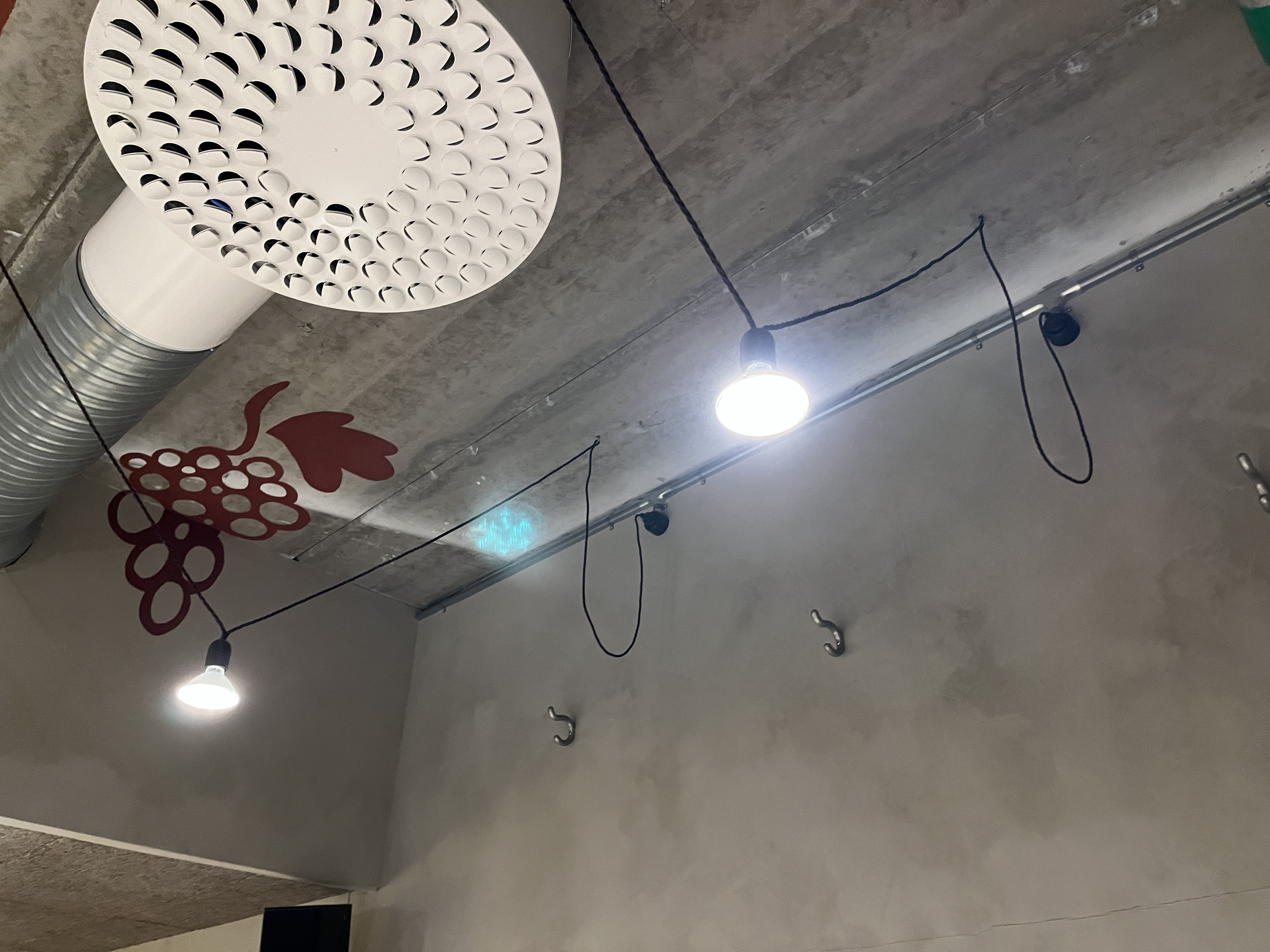 • Suspension: Black electrical cables with ceiling brackets
