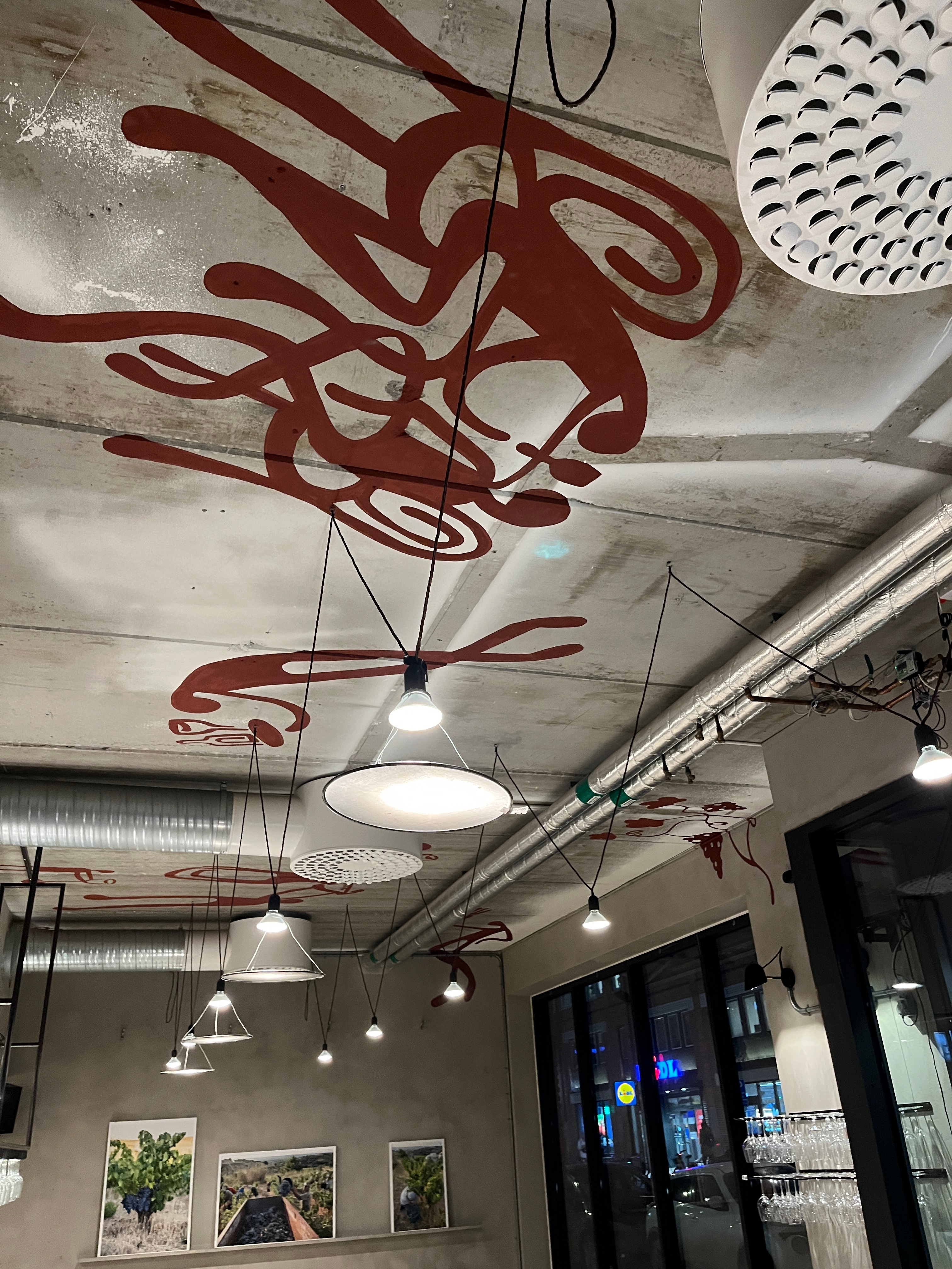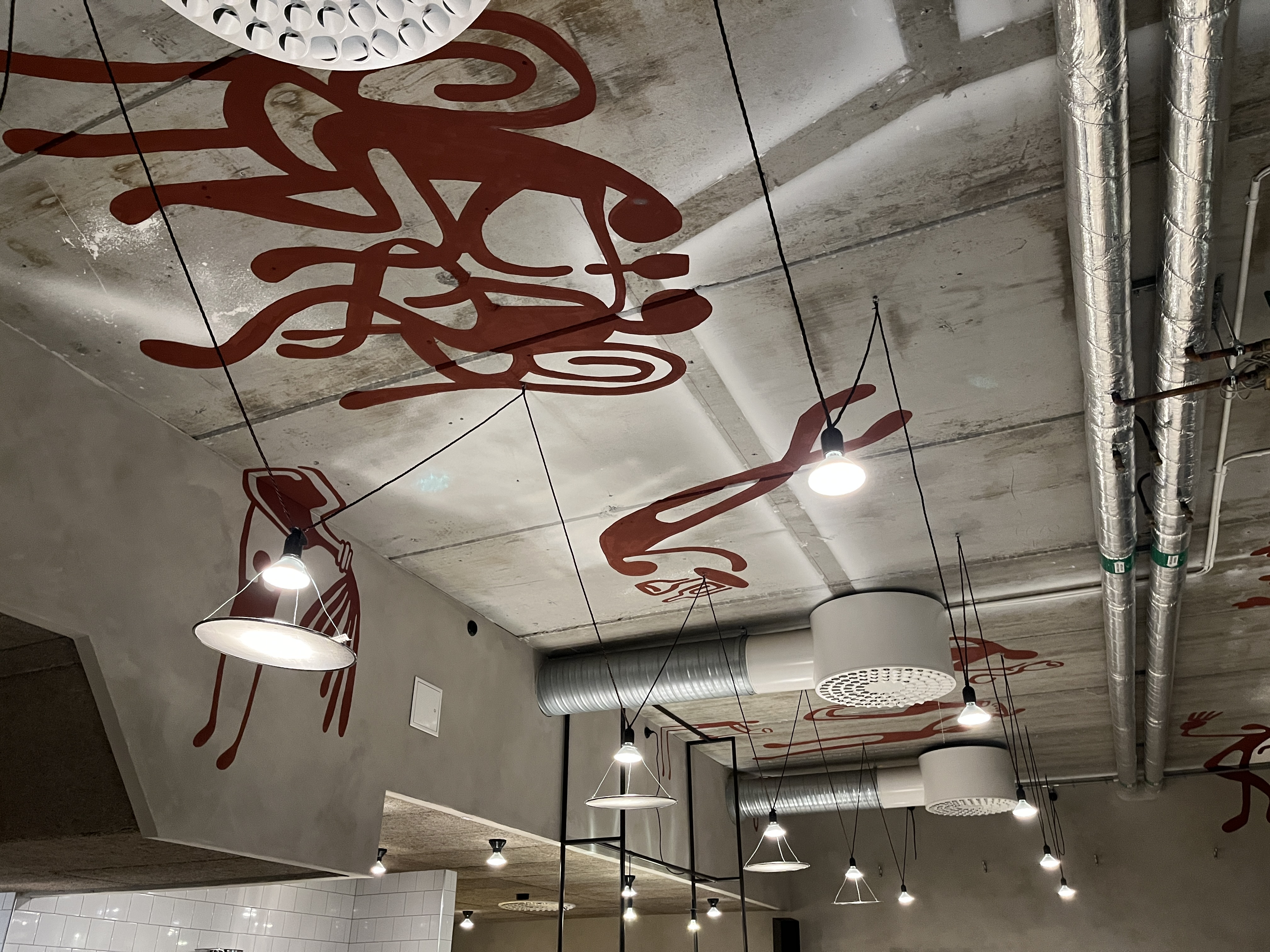 • Two separate ceiling loops with pendant luminaires mounted in wire suspension.