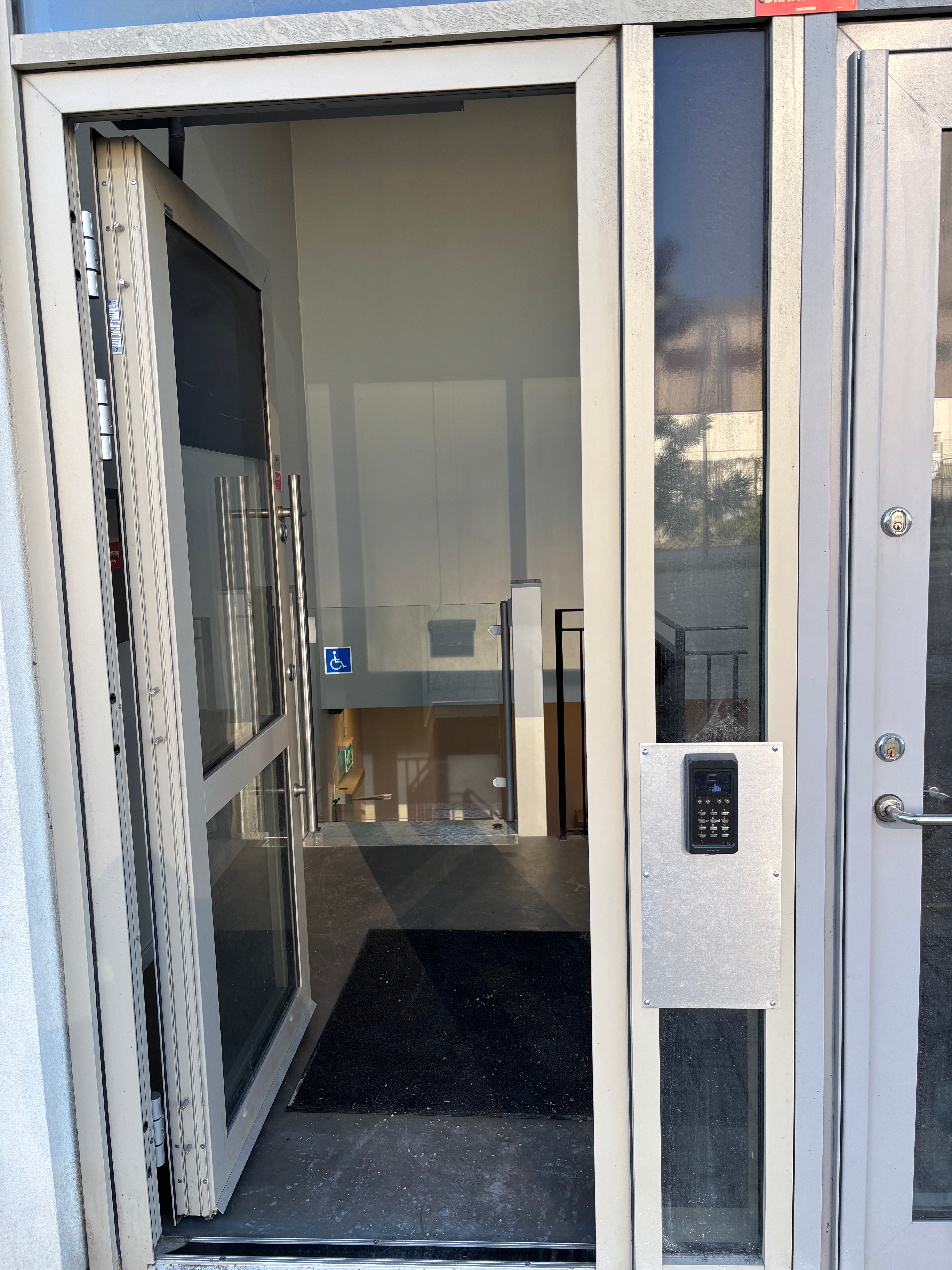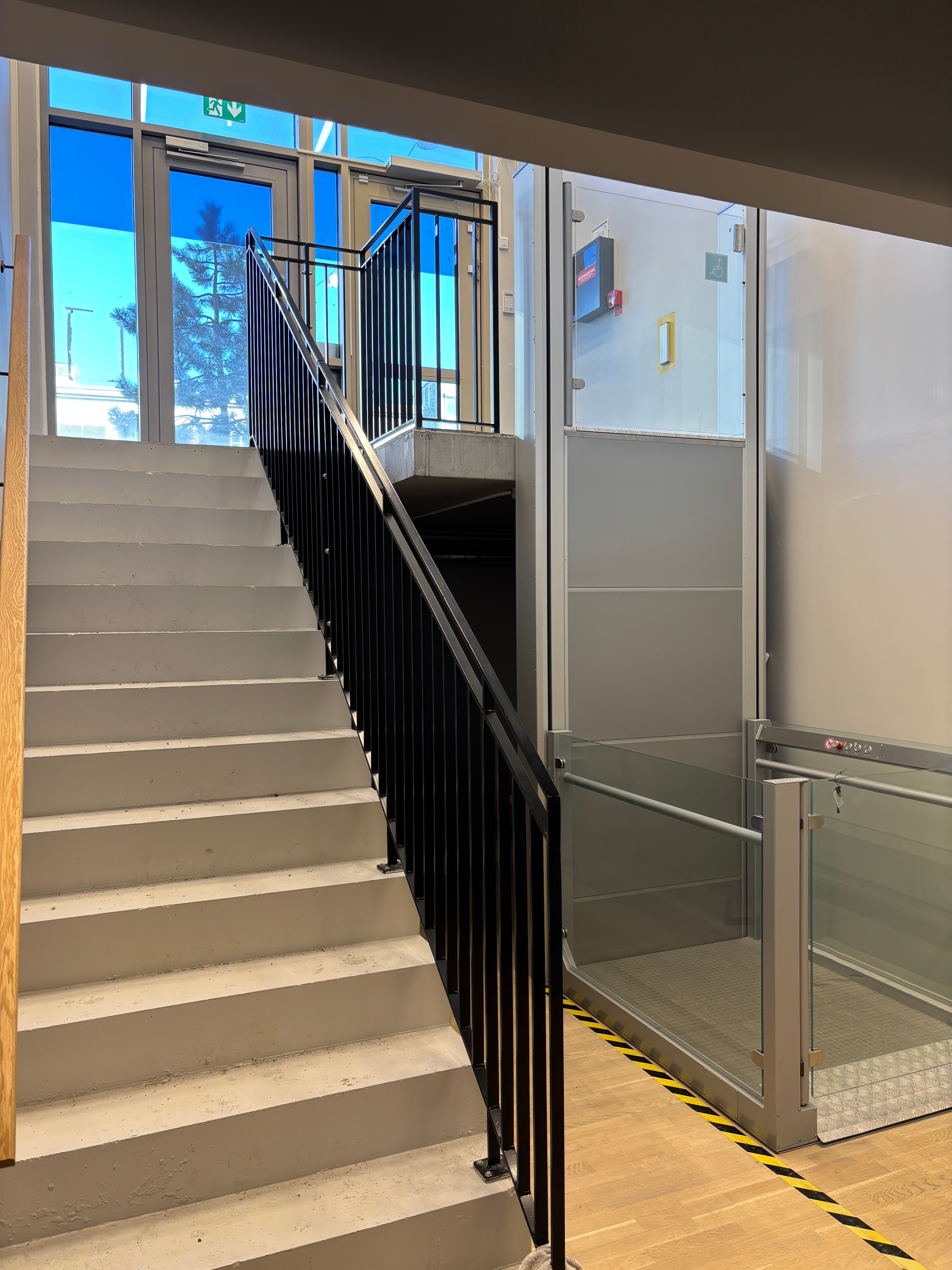 Conditions on site: Stairs up to the ground floor. Access to a small disabled lift is available in the premises, see pictures. Loading zone for parking is nearby around the premises. See pictures of the objects for exit and stairs.