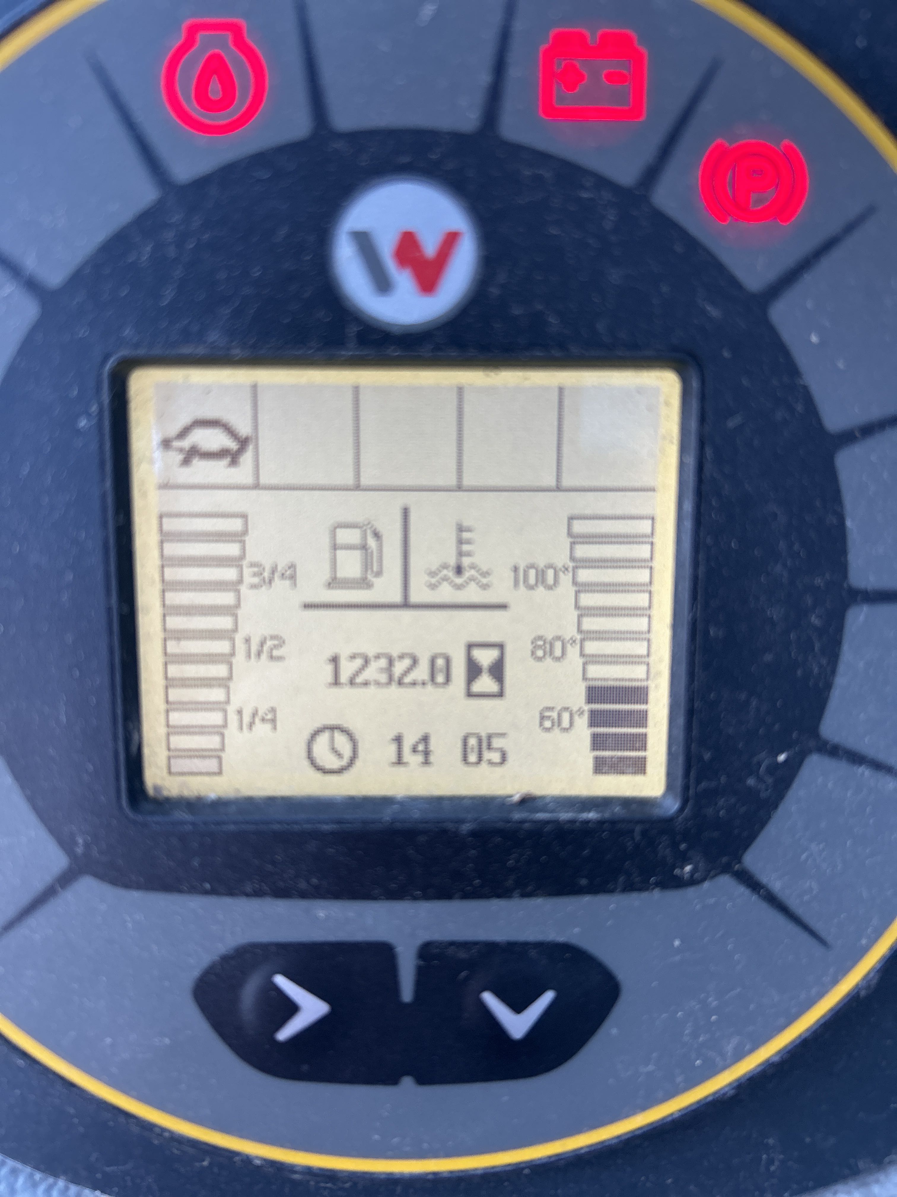 Operating hours according to meter: 1232.8 h