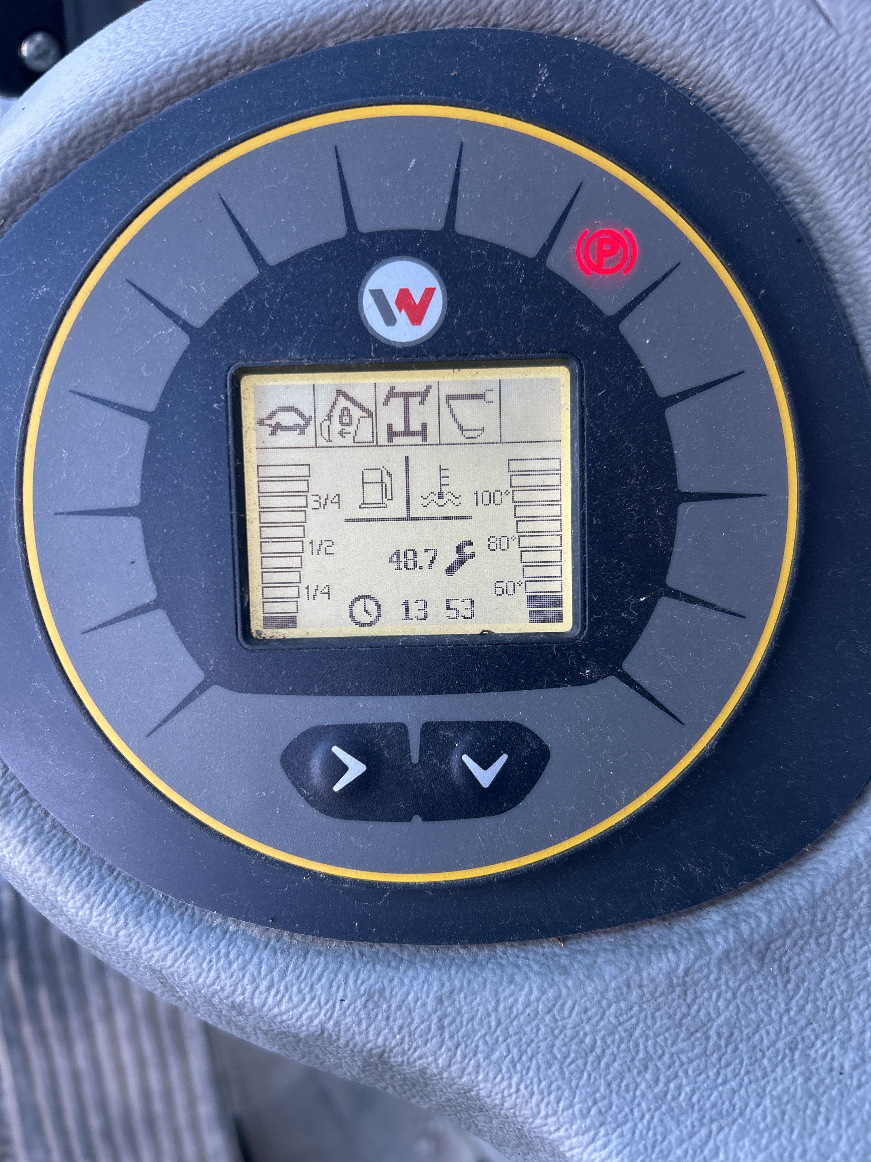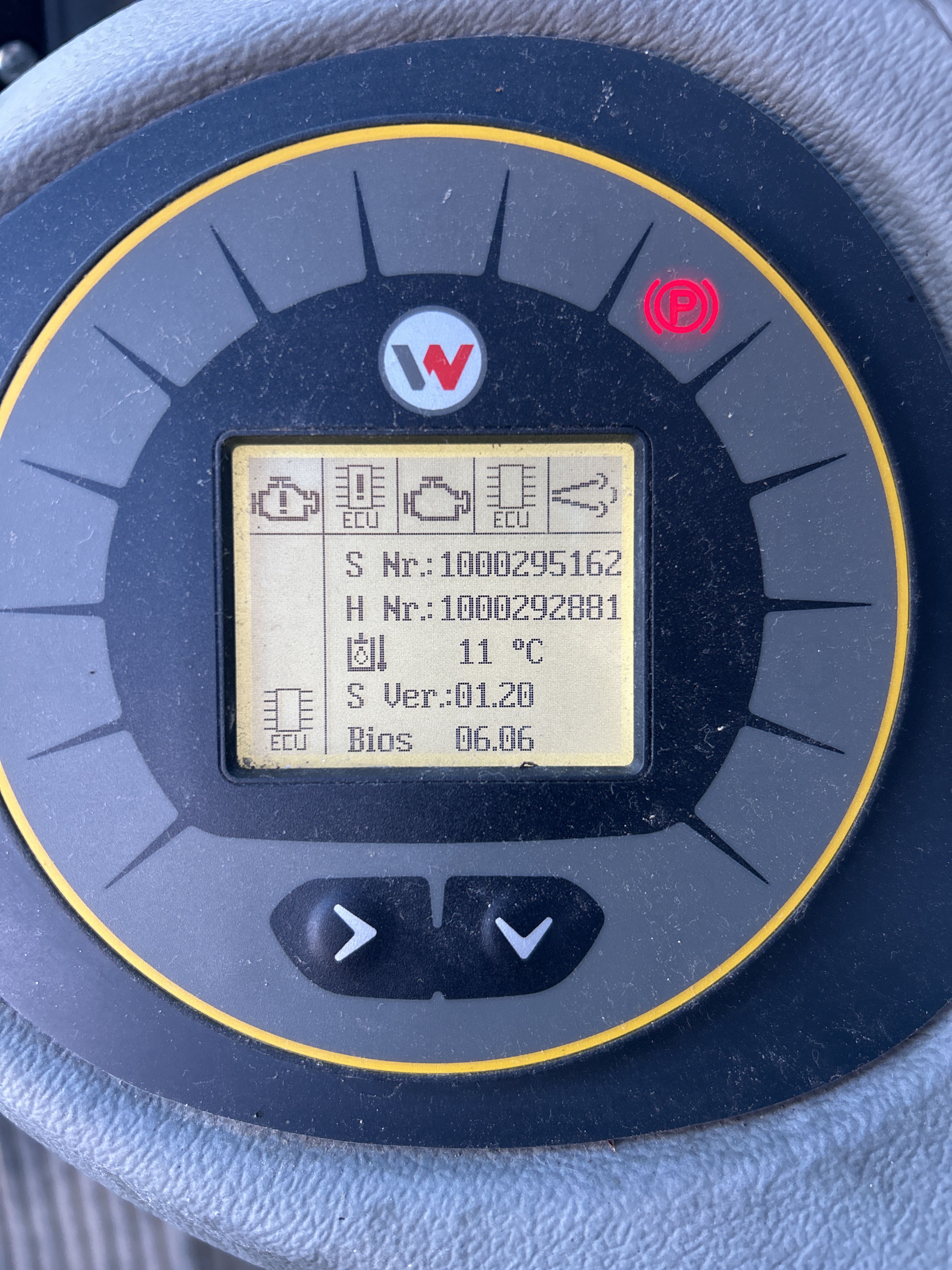 The machine has a reversing camera installed.