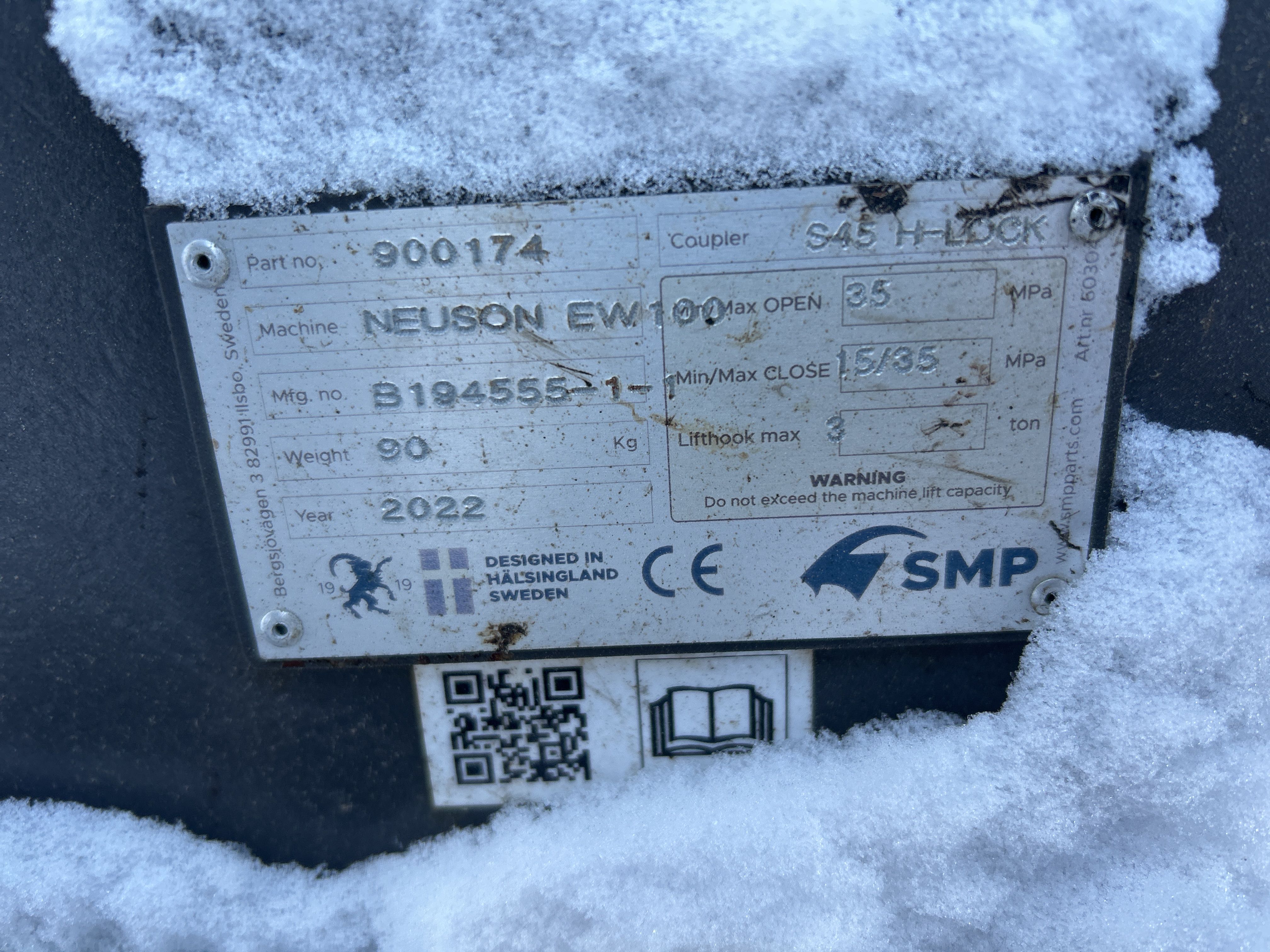 SMP S45 H-LOCK quick coupler mounted