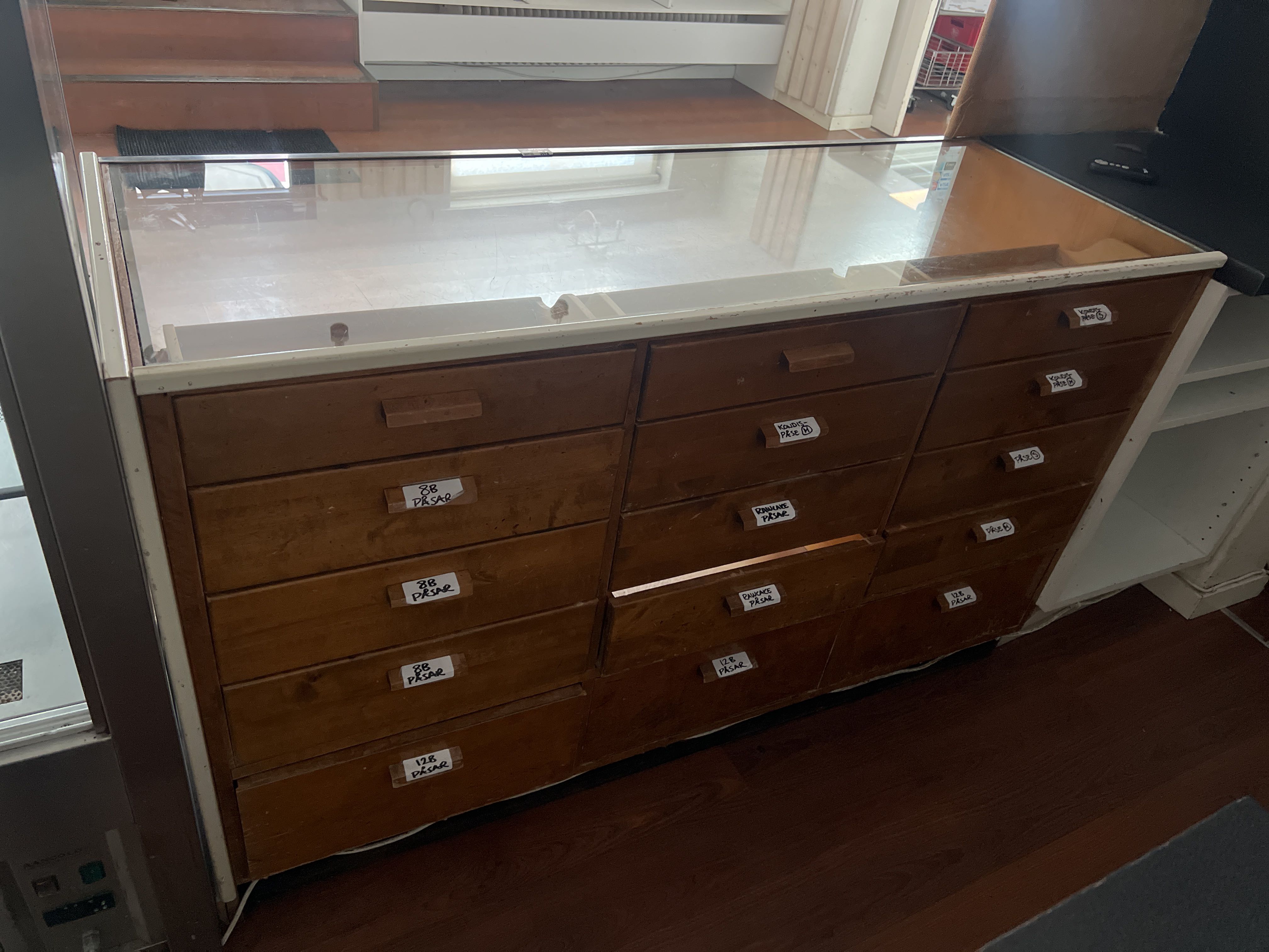 Merchant's counter with glass top