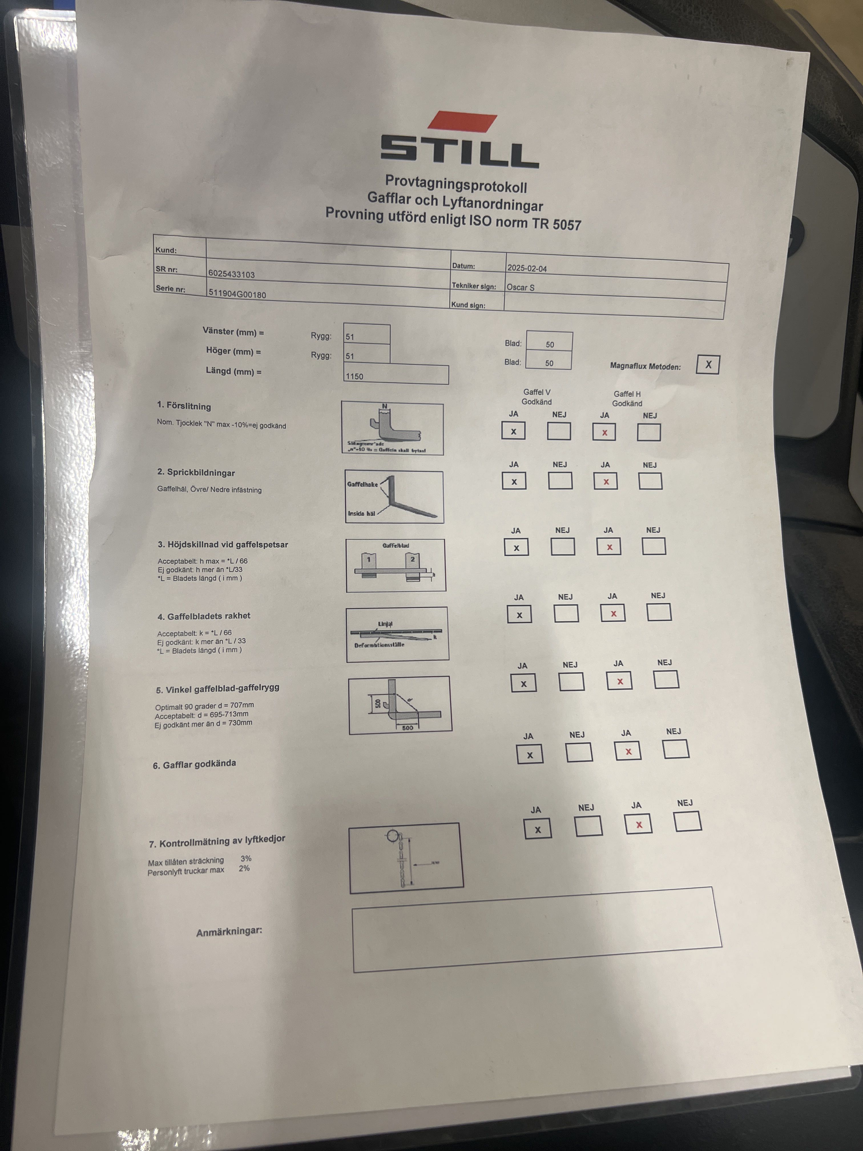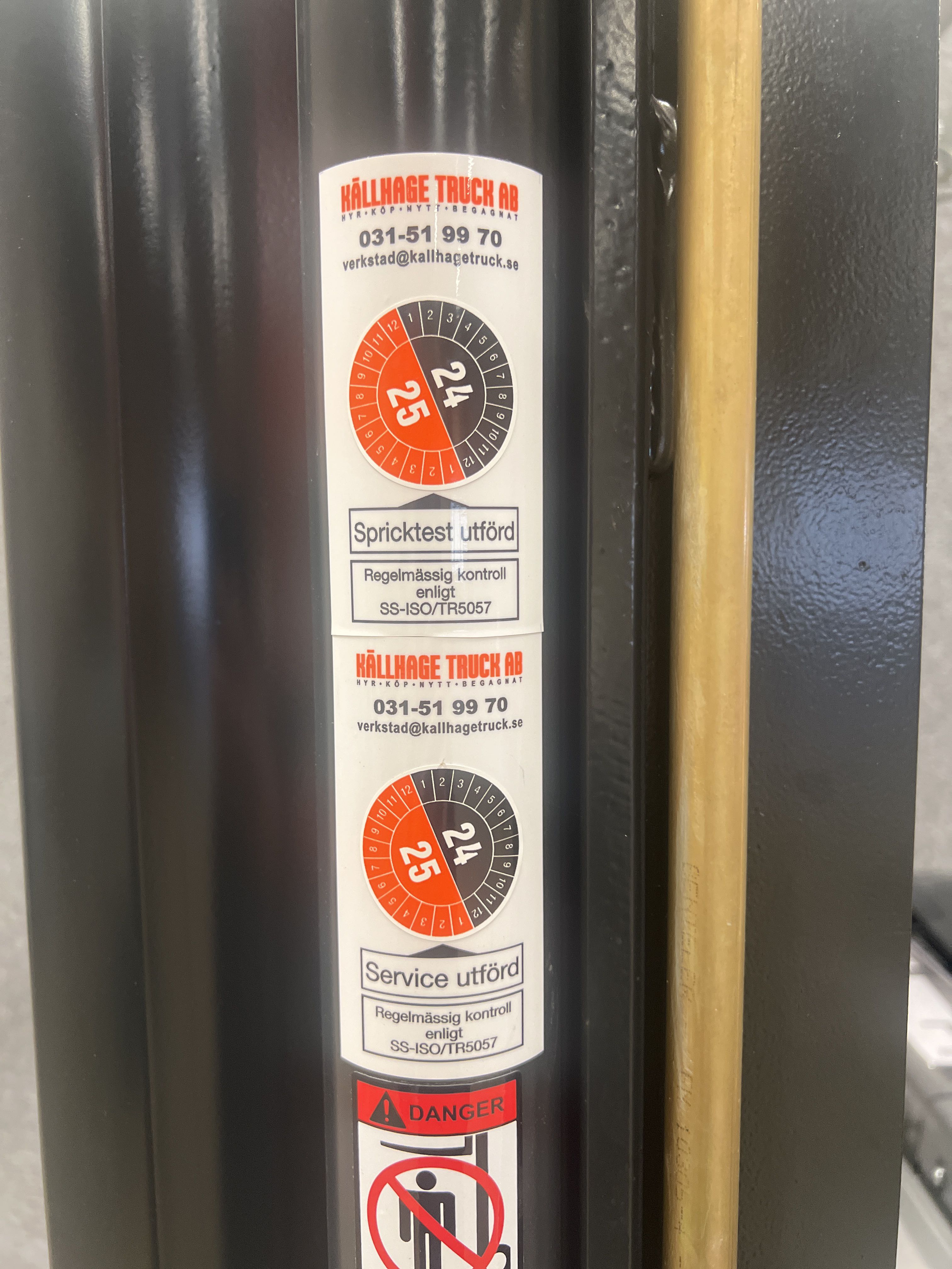 Kållhage Truck AB crack test and service labels