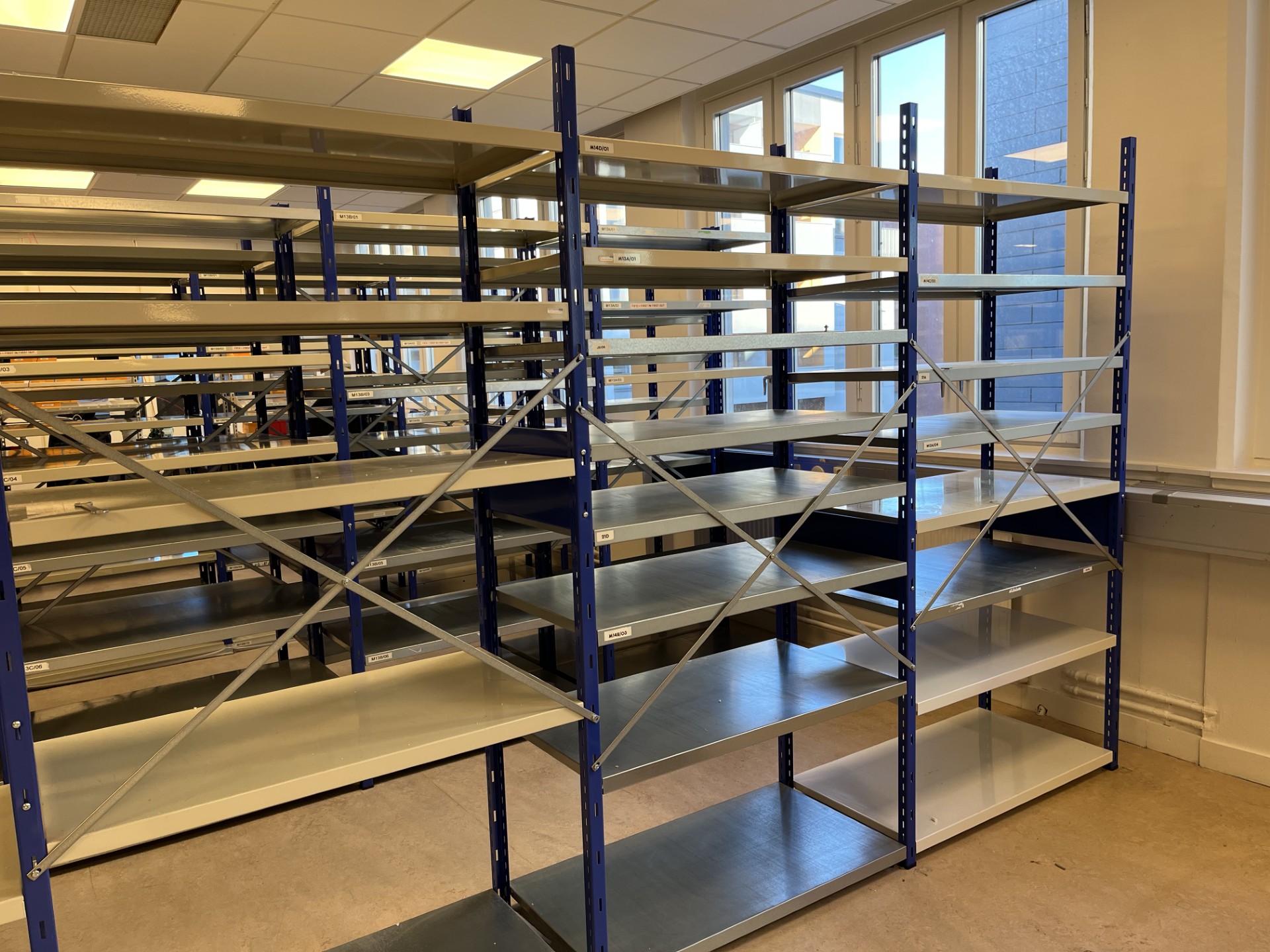 • Blue end panels, depth 0.50 m: 85 pcs (height approx. 1.96 m)