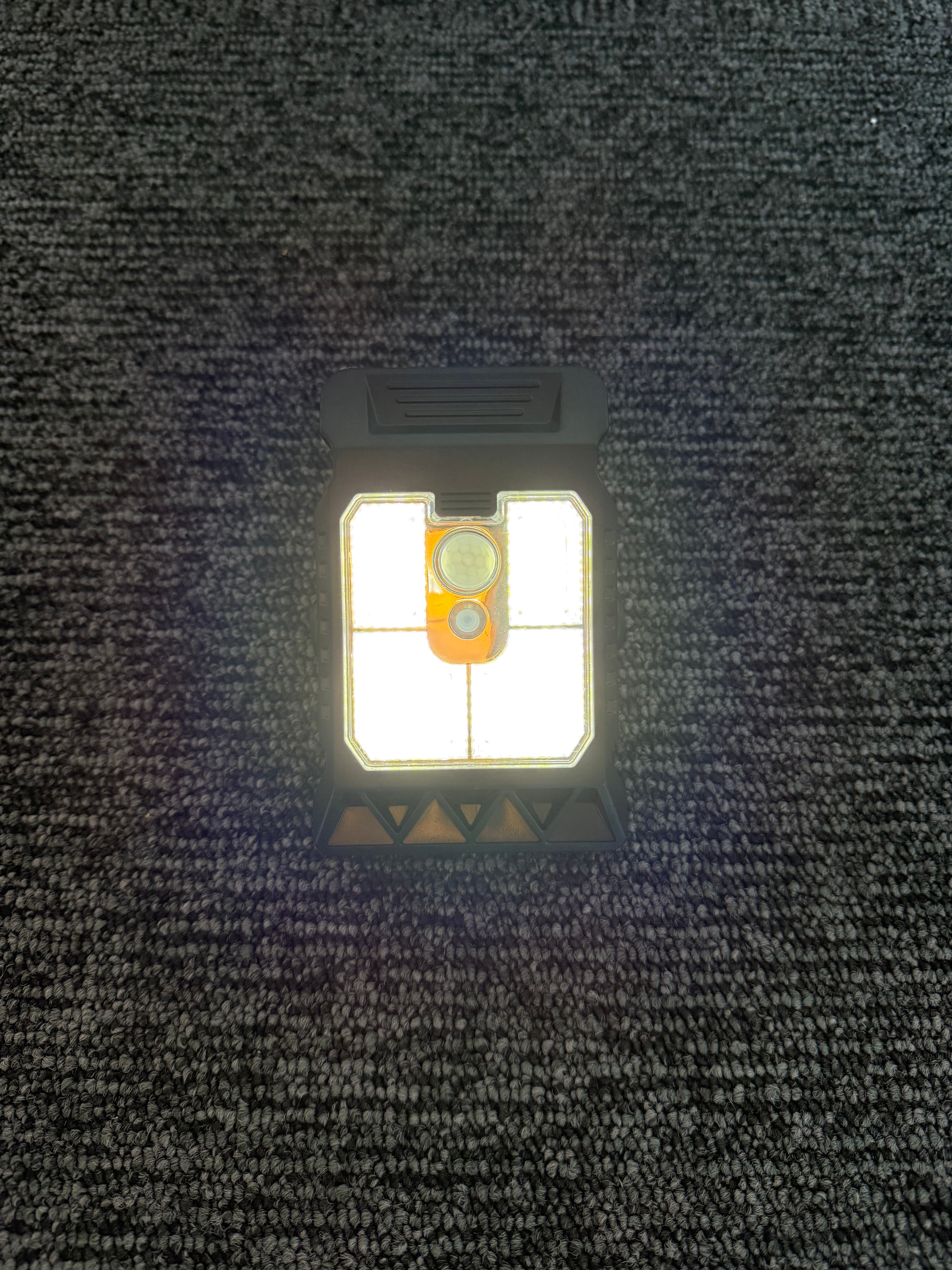 Solar-powered wall lamp equipped with many small LED lights that provide strong and even light distribution. Easily mounted with a clamp - no cables or screws needed. Perfect for larger areas such as walkways, parking lots or gardens.