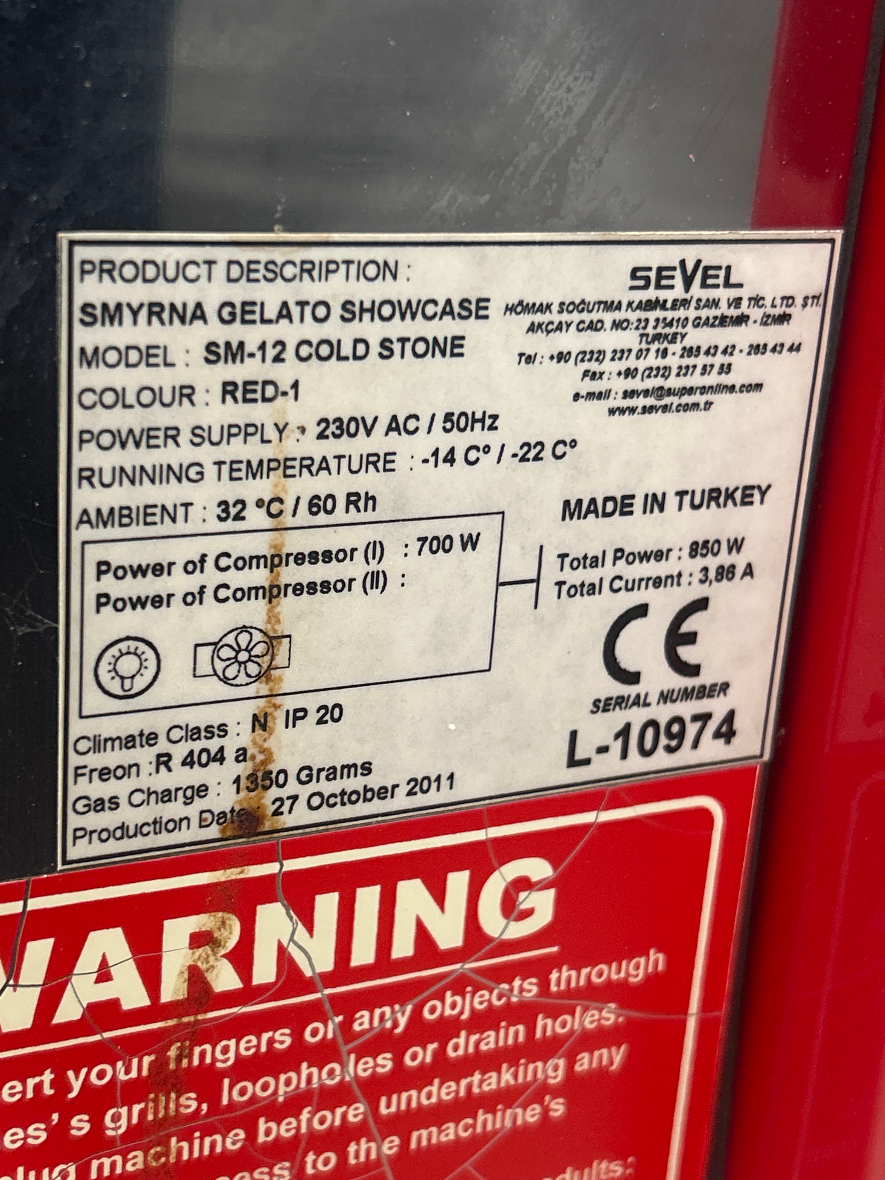 Ice cream freezer / Gelato counter - Sevel Smyrna SM-12 Cold Stone (Function tested)