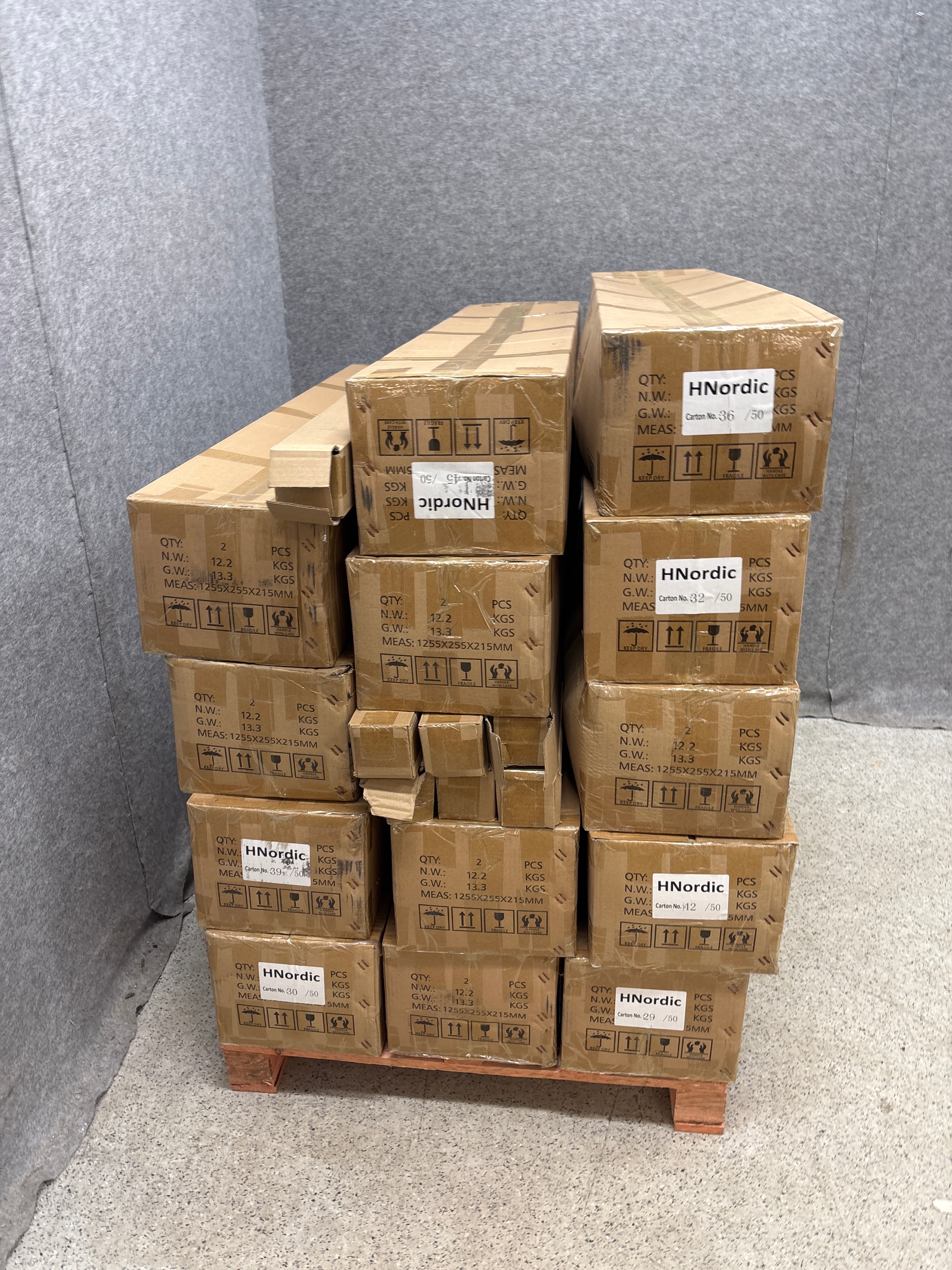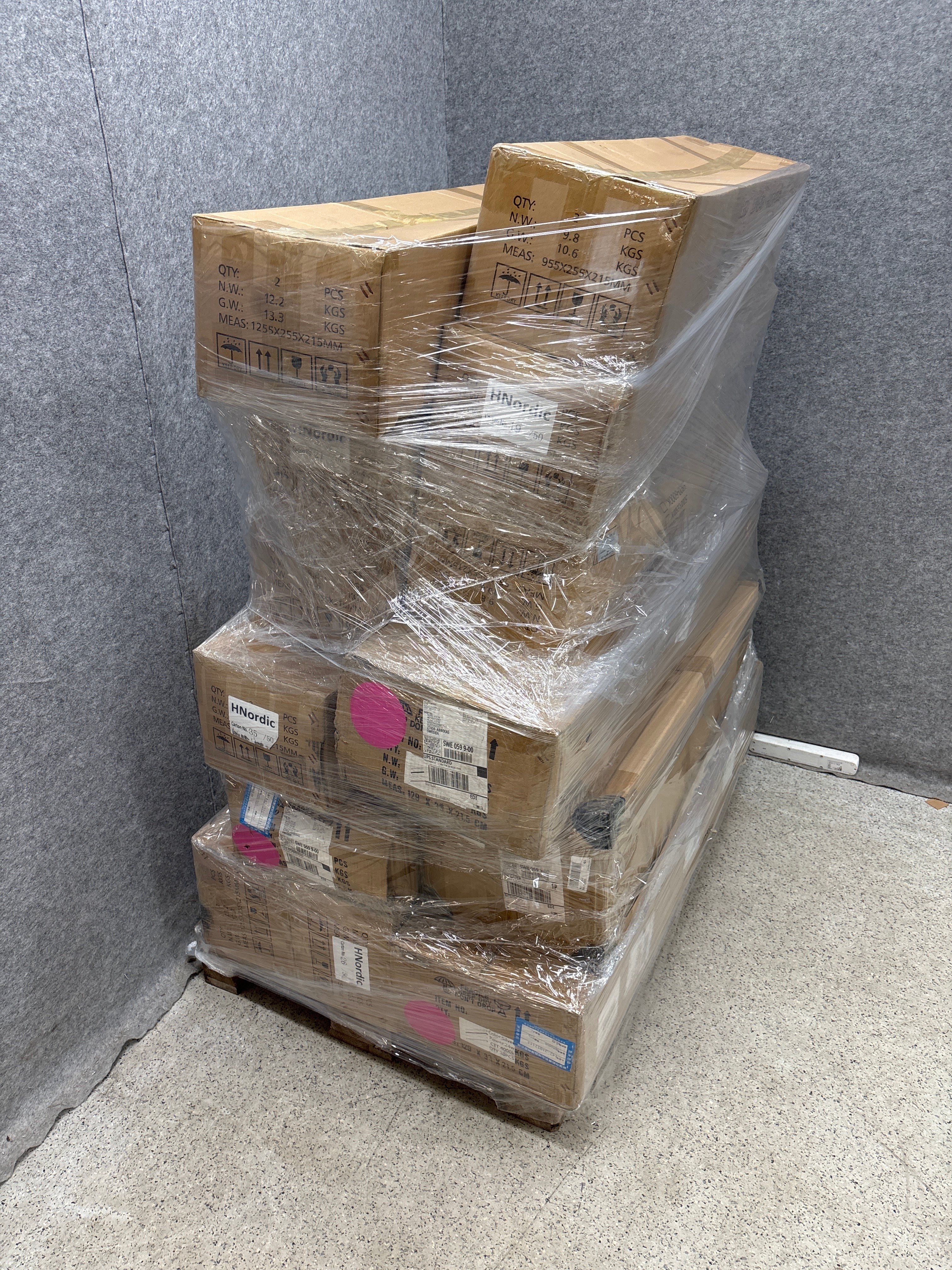 • The object is packed on approximately 3 disposable pallets and in 2 postal cages.