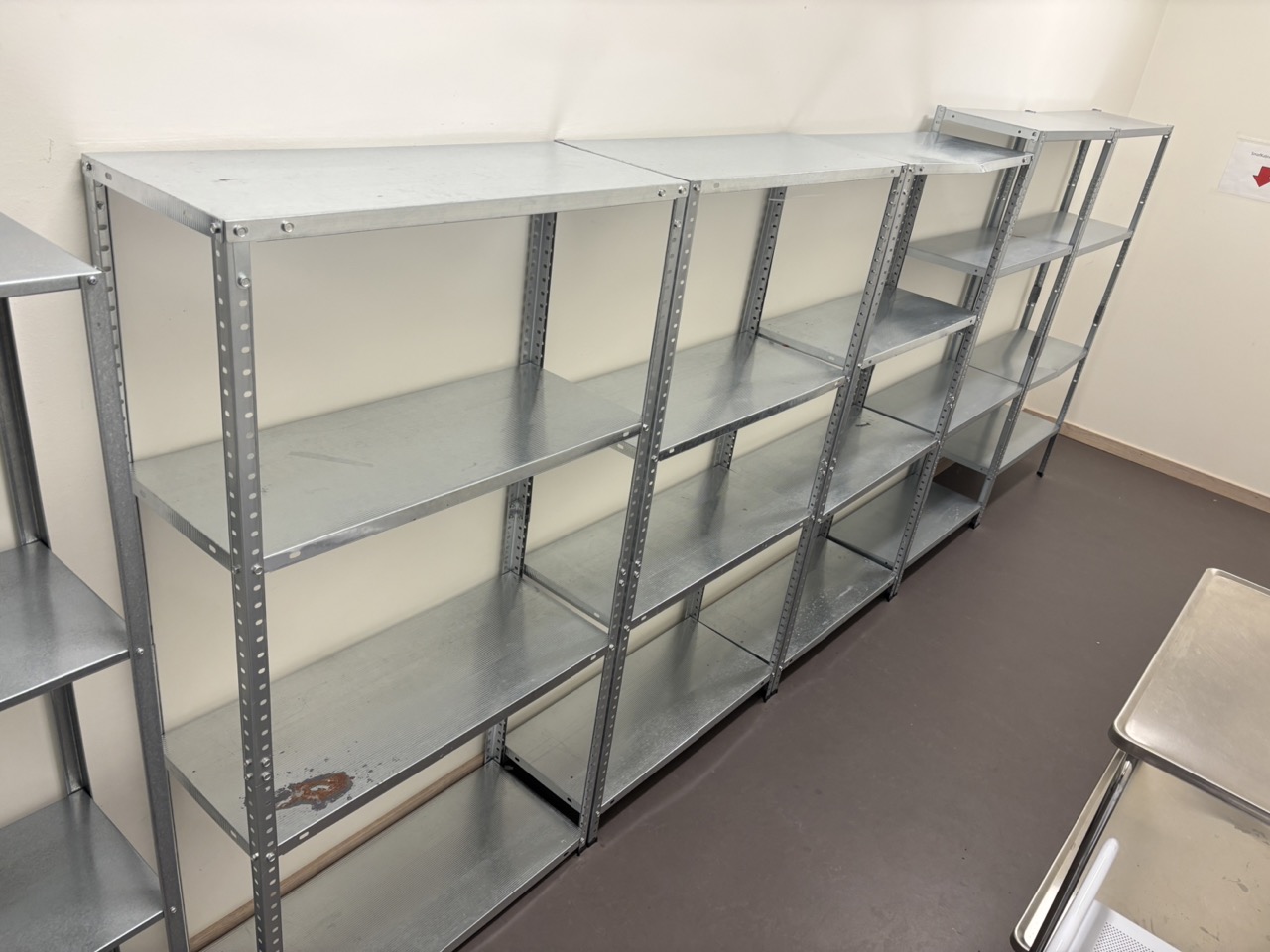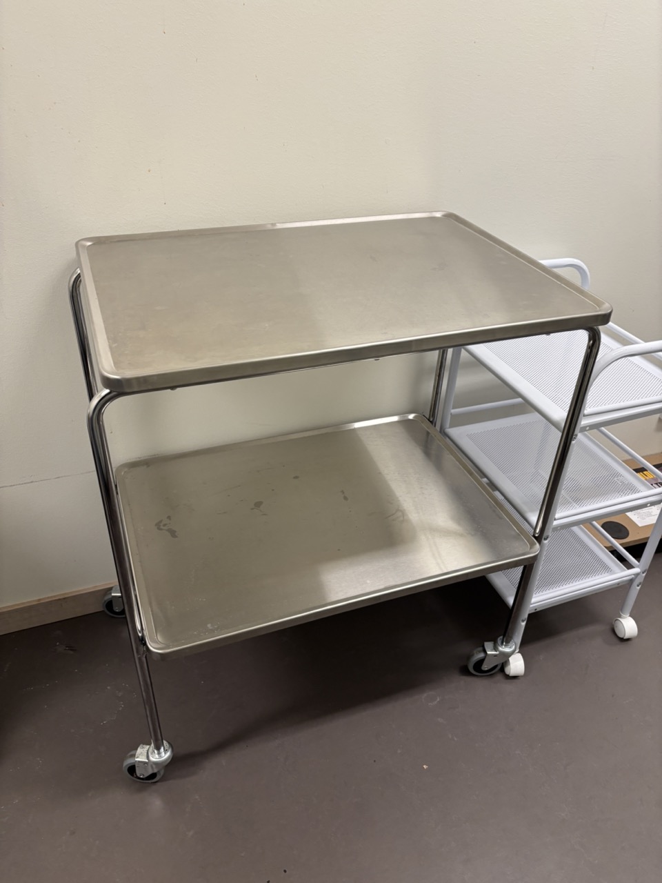 Warehouse shelves 6 sections, stainless steel trolley