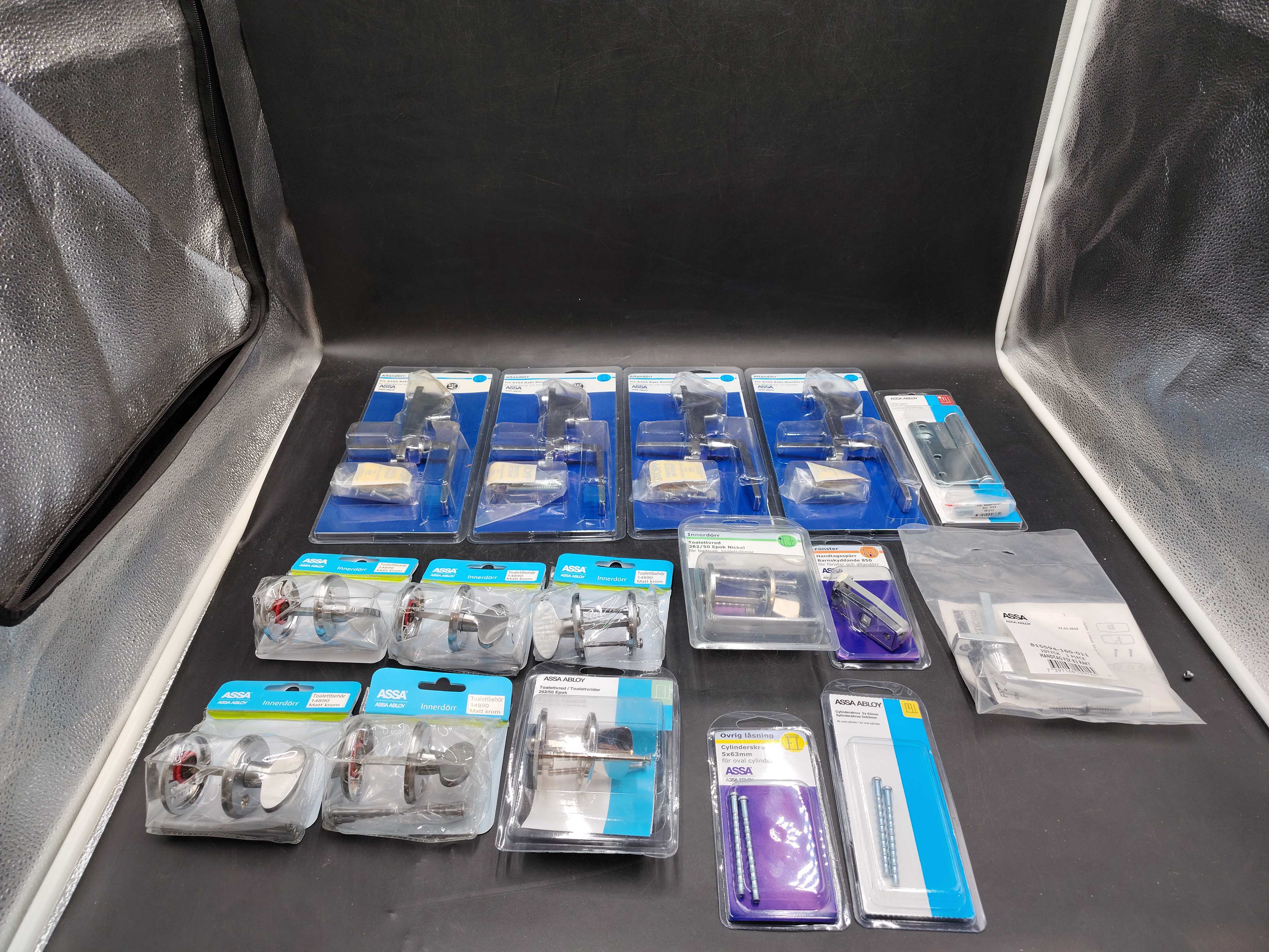 Mixed lot of door and window fittings from Assa Abloy, suitable for both interior doors and patio doors. All items are new in packaging.