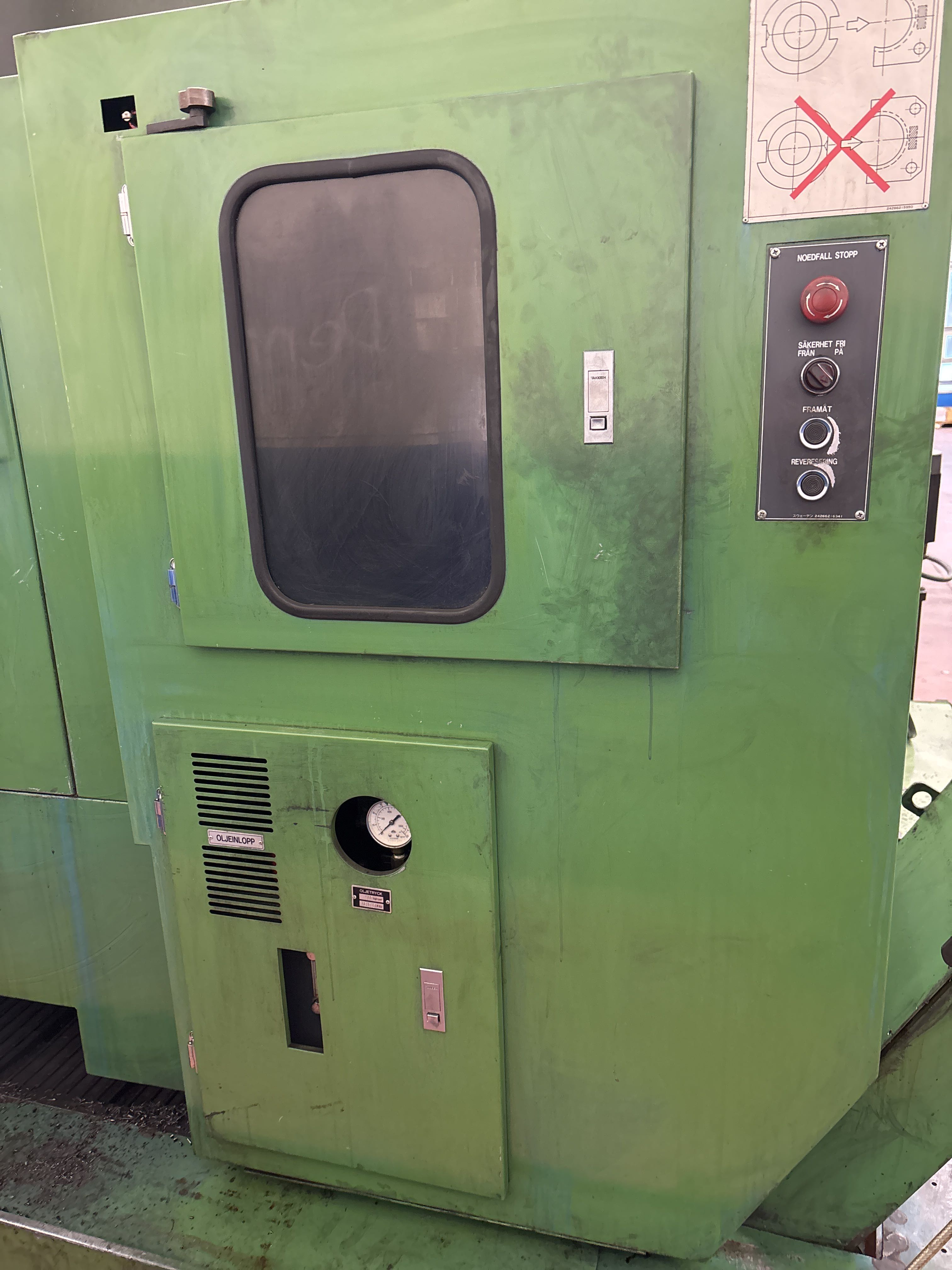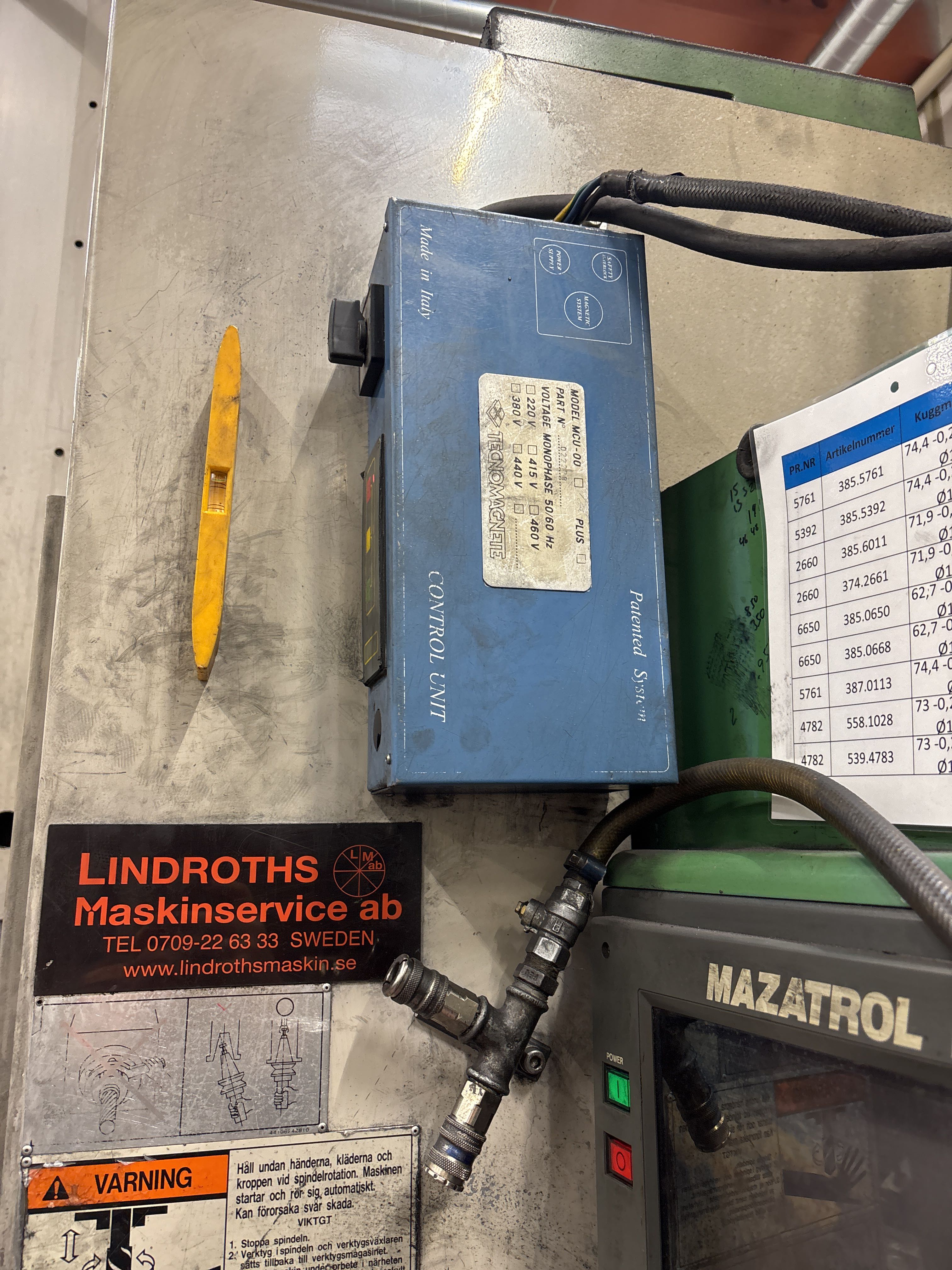 Nameplates from both Mazak and Mayfran mounted on the machine