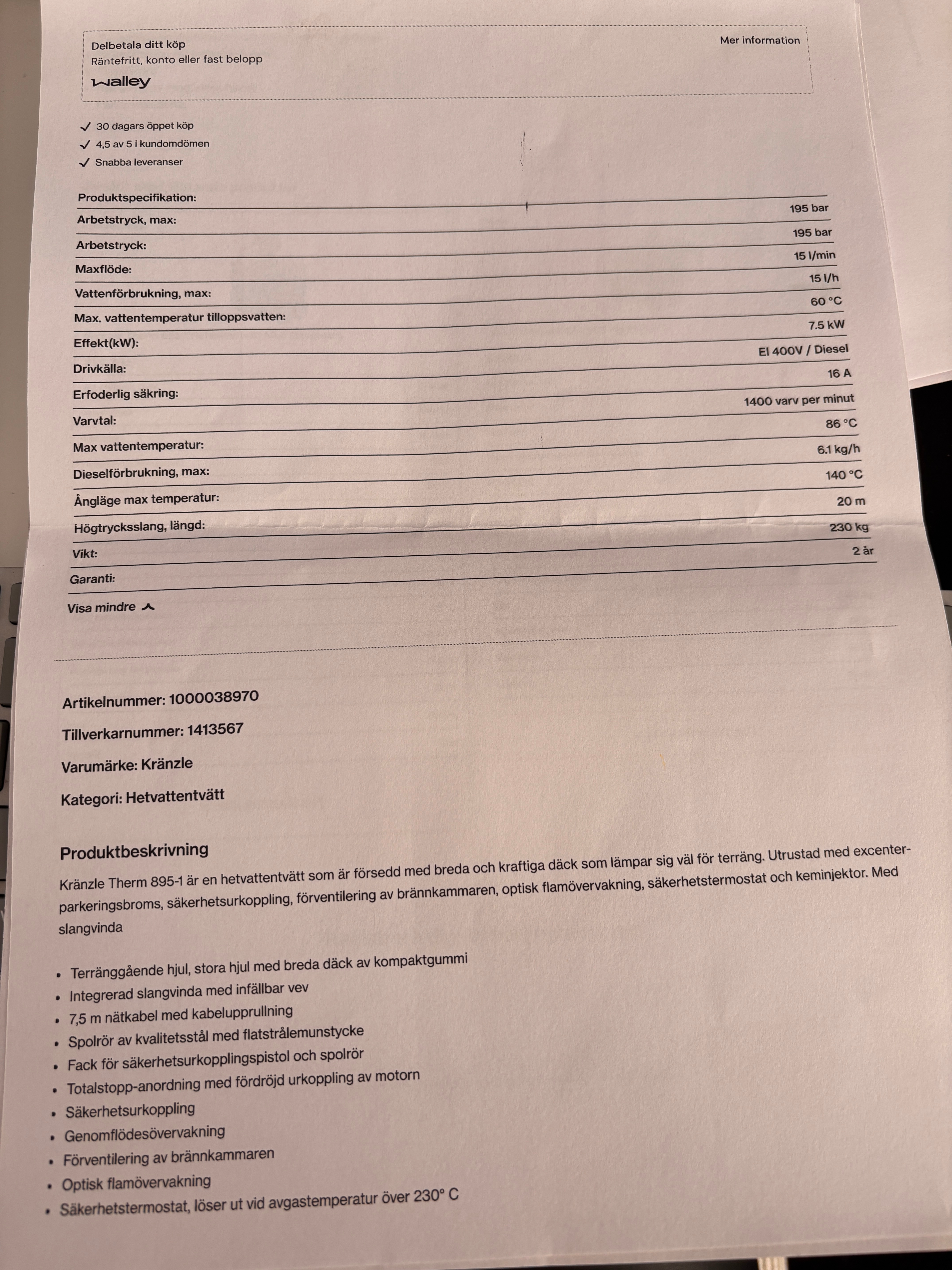 Invoice copy and proof of payment must be brought to the pick up. The buyer shall at the appointed time arrange collection, loading, disassembly / packing of the item.
