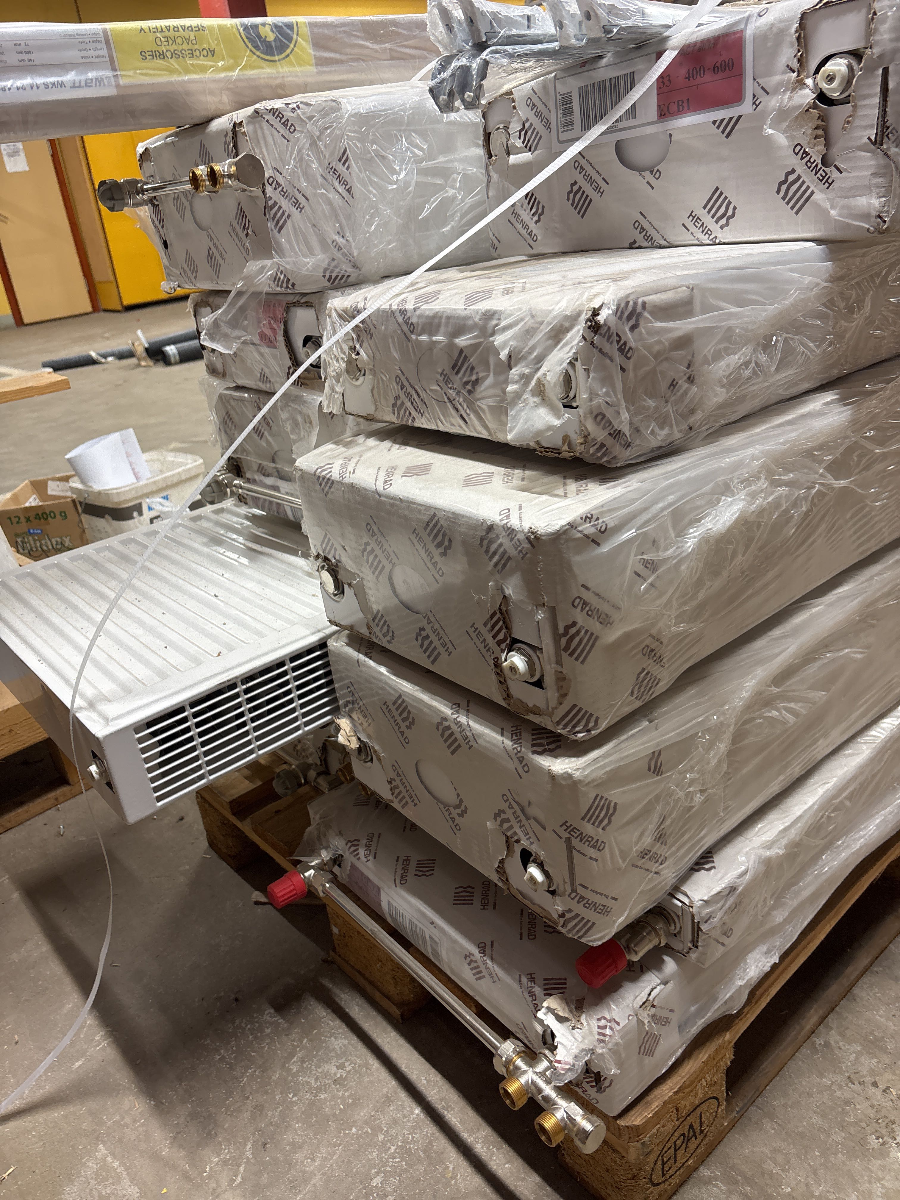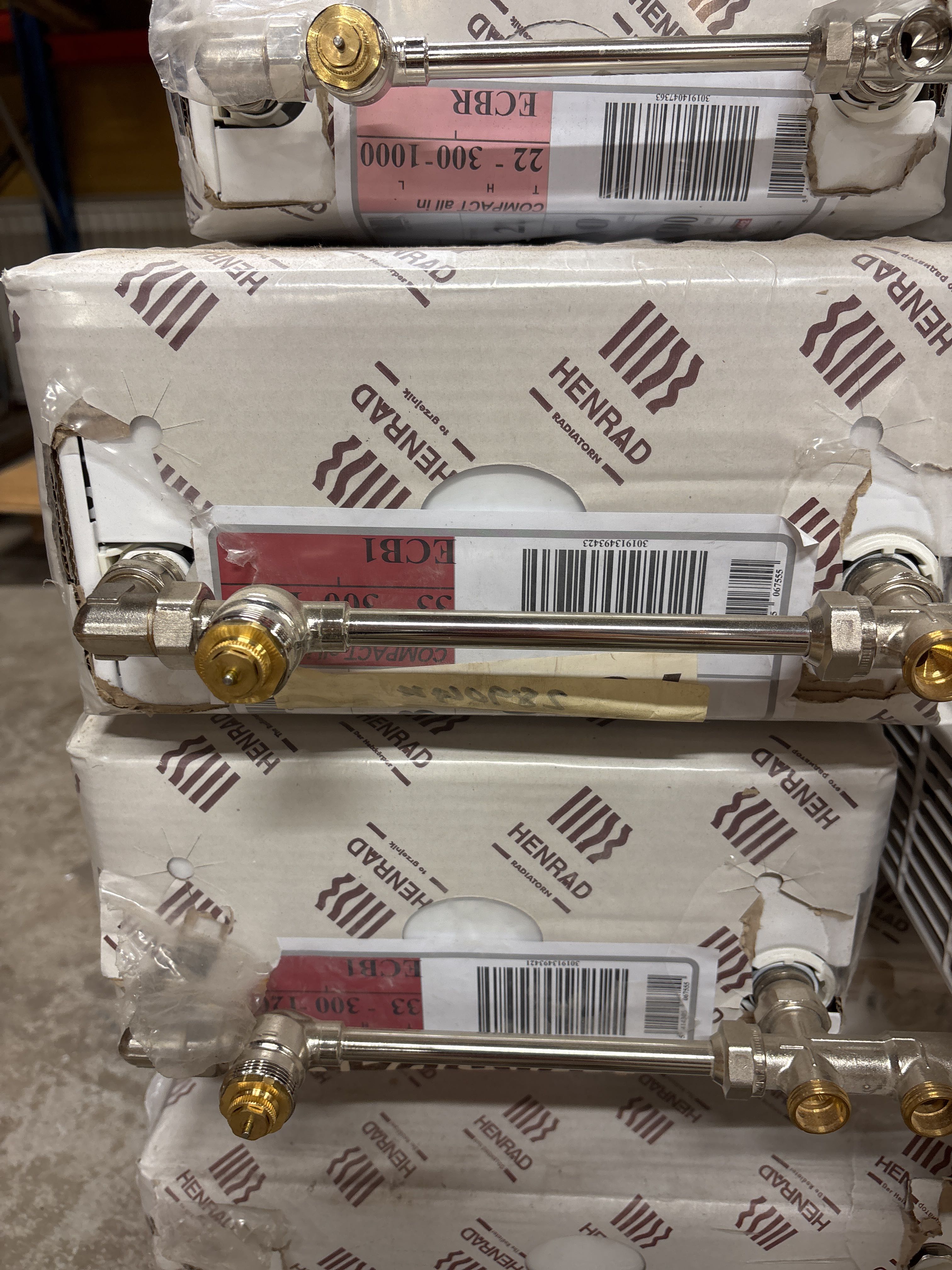 The radiators are unused and still in their packaging.