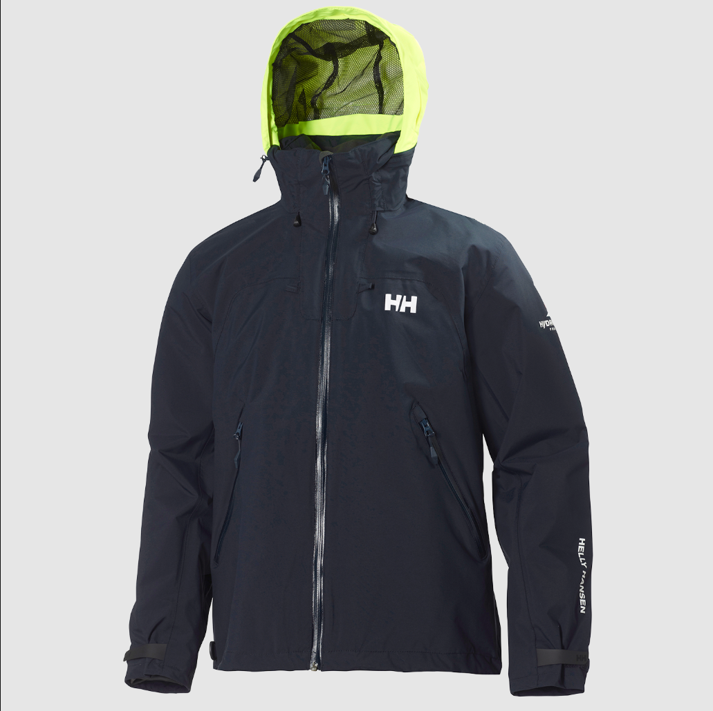 A lightweight sailing jacket designed for active course racing with an ergonomic fit. The construction is based on a two-layer fabric with breathable properties and fully sealed seams. Storm flap, reflective details and an adjustable hood in reflective fabric provide good protection during intensive activities on board.