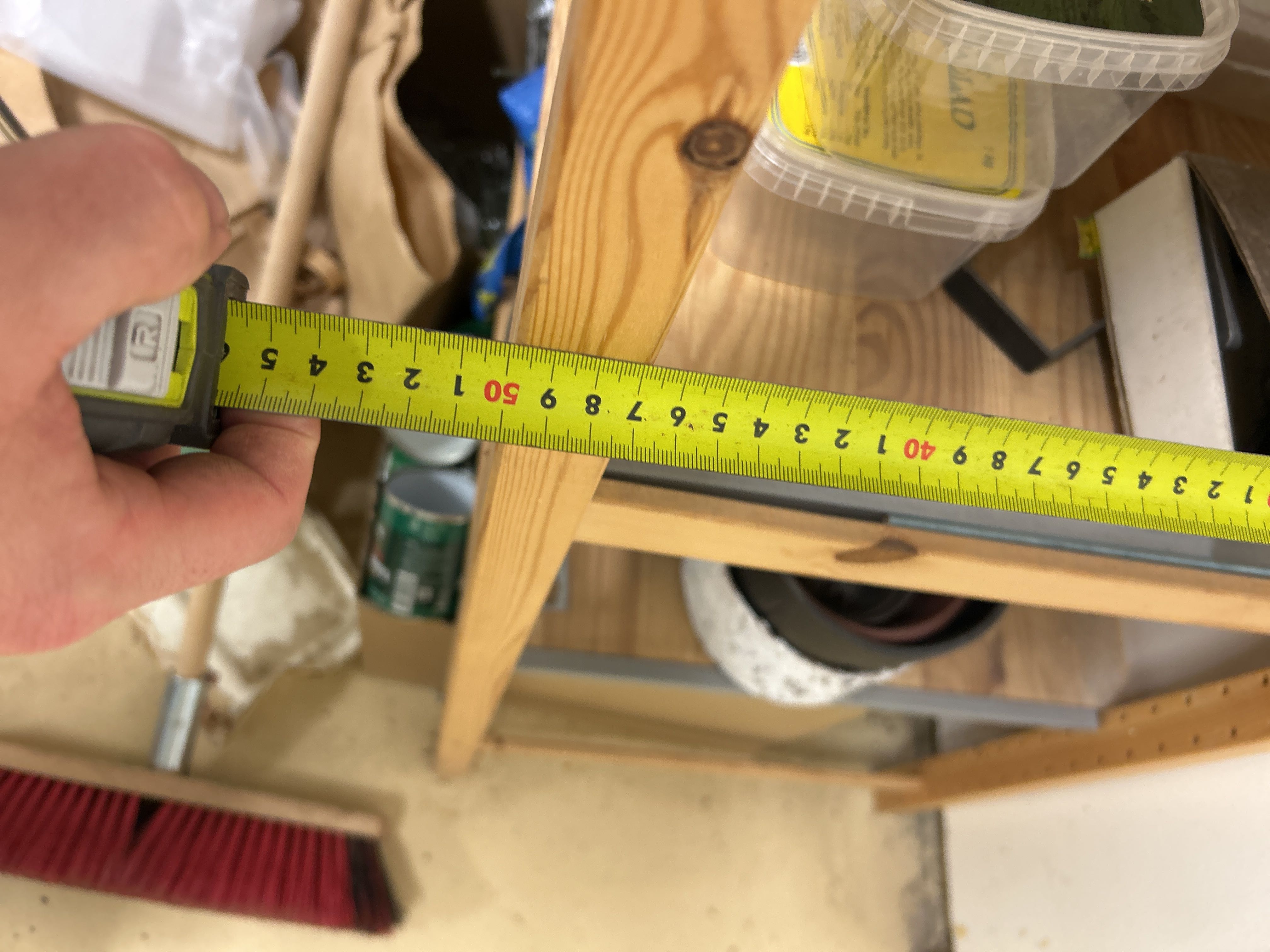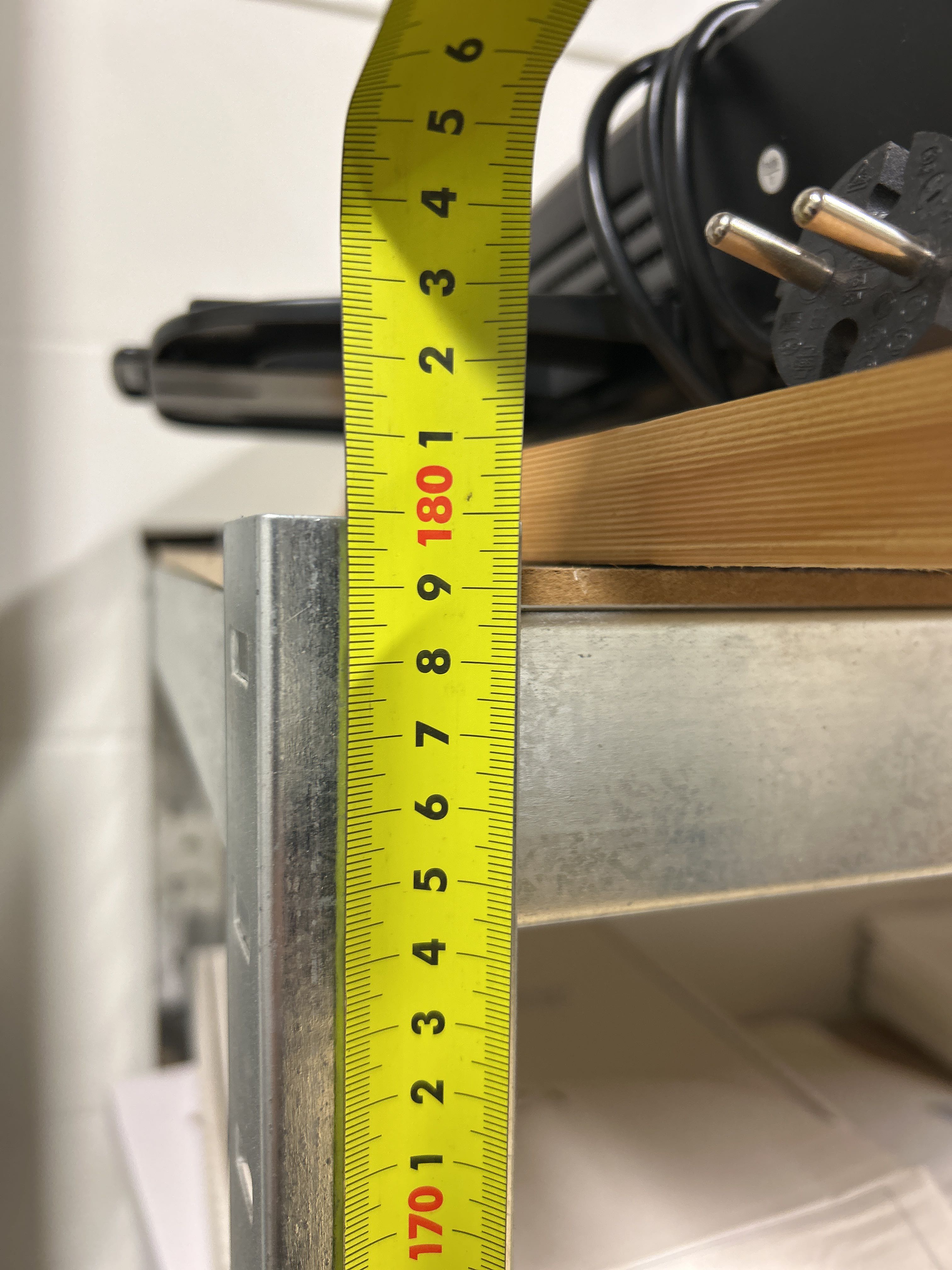 • Shelves: 1 metal shelf, 1 wooden shelf