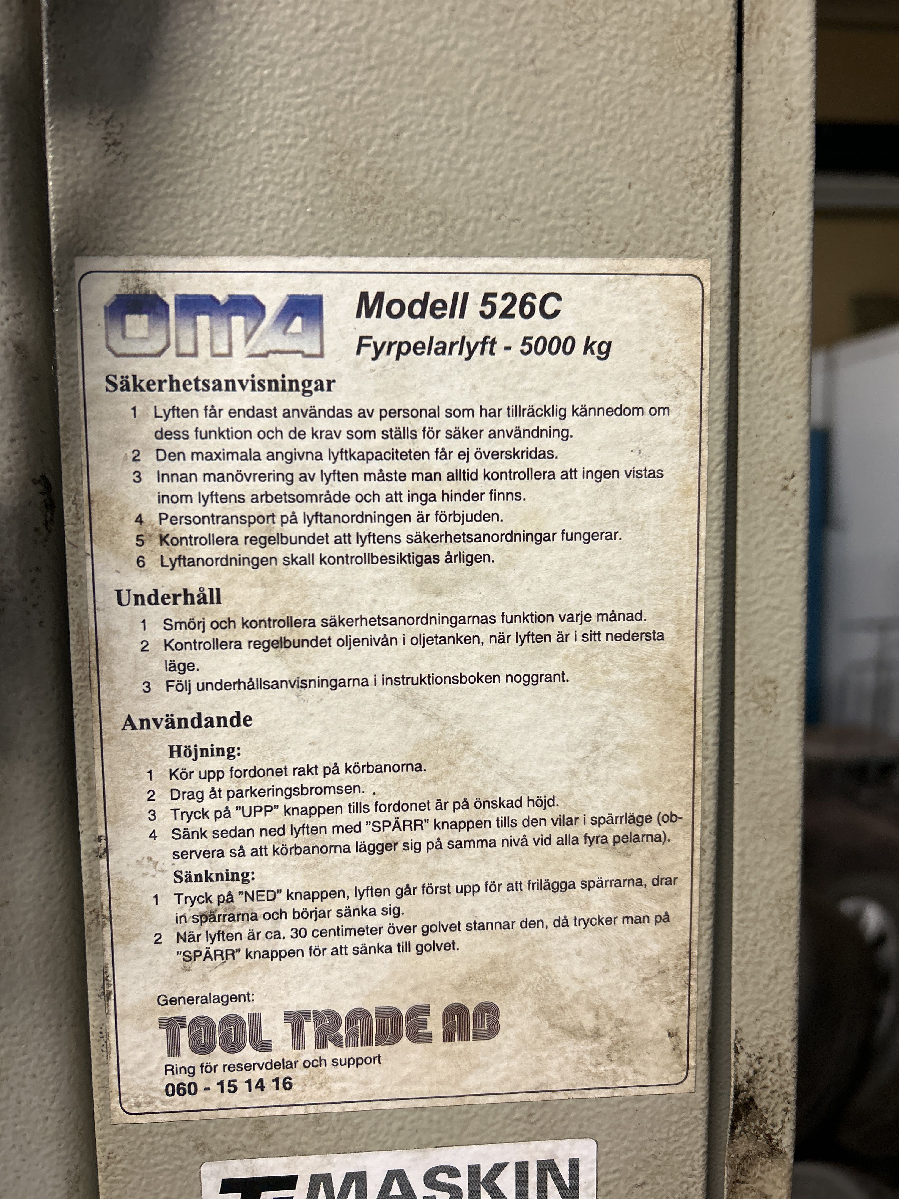 Four-pillar lift 5 tons - OMA 526C -2011