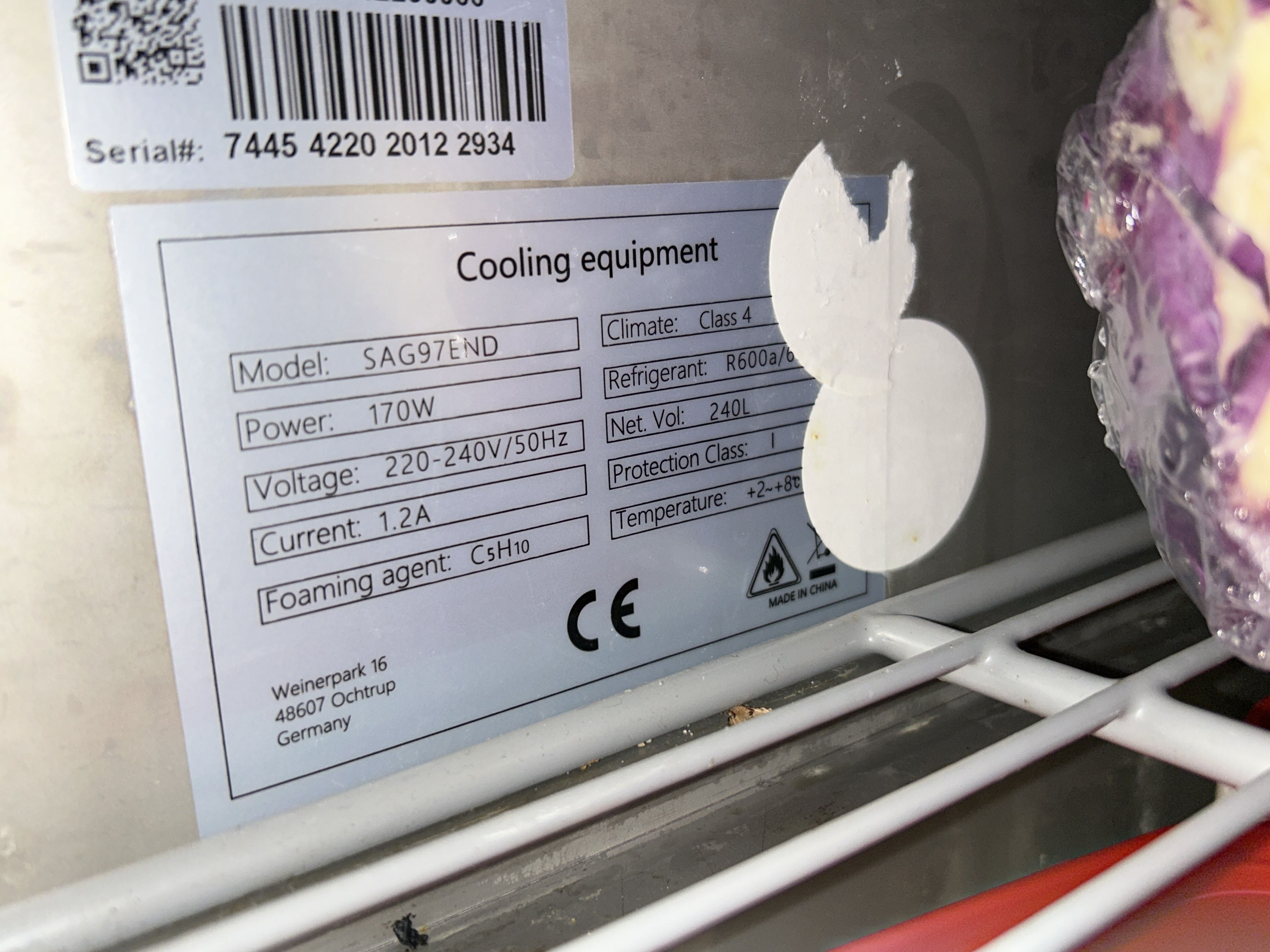 • Refrigerant: R600a