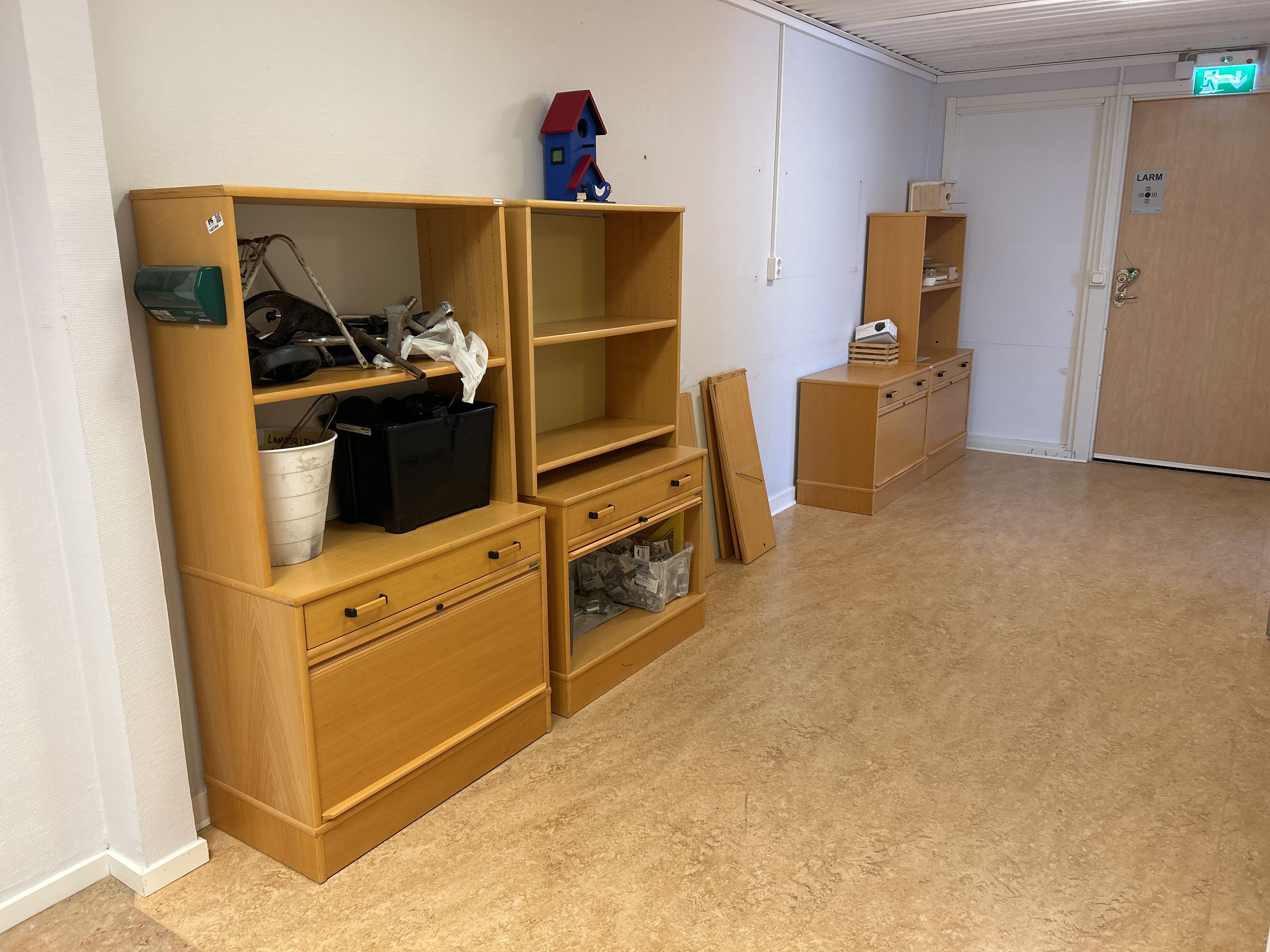 • Four dressers of varying heights, some with integrated upper cabinets for storage.