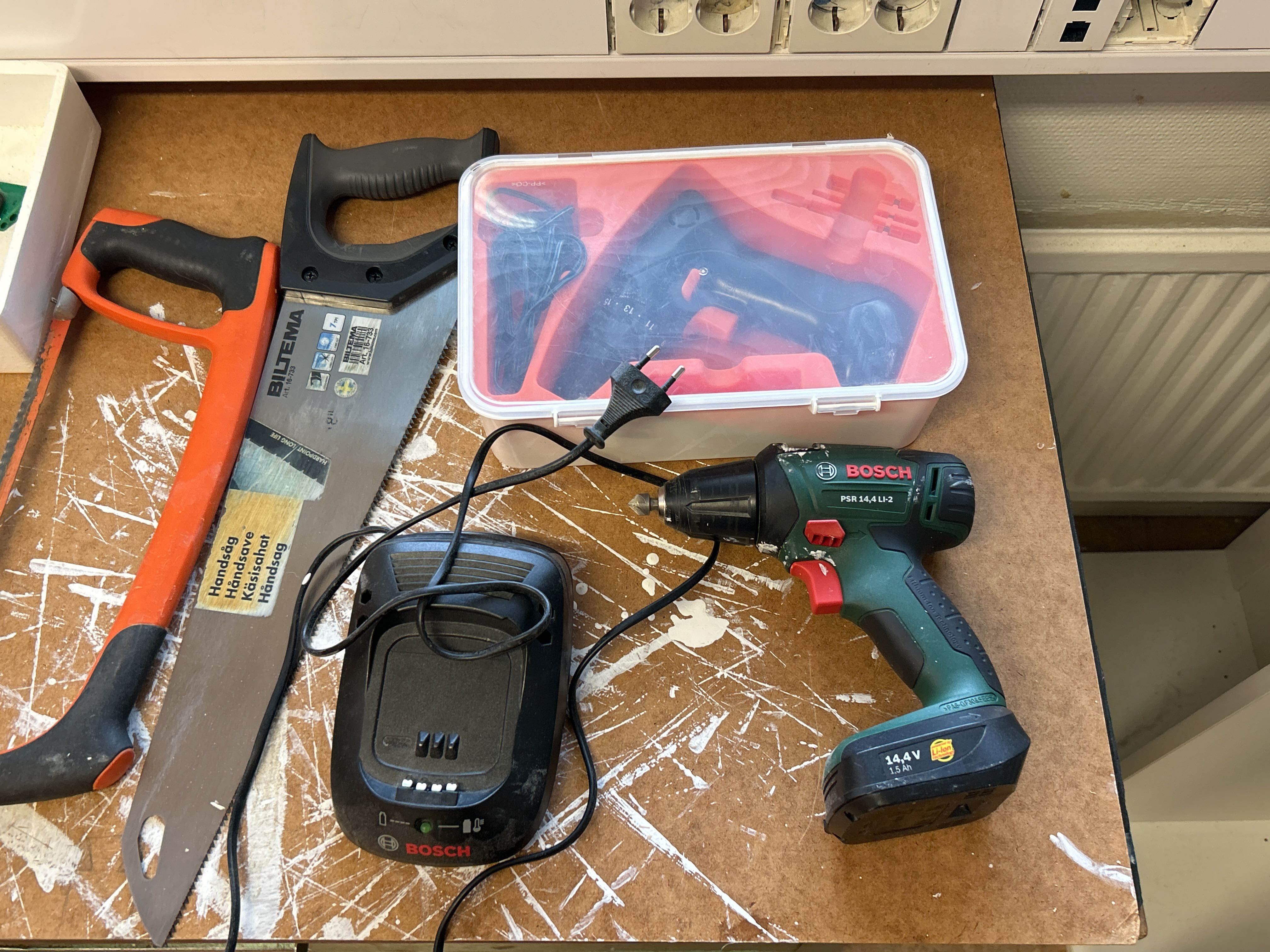 Workbench with various tools