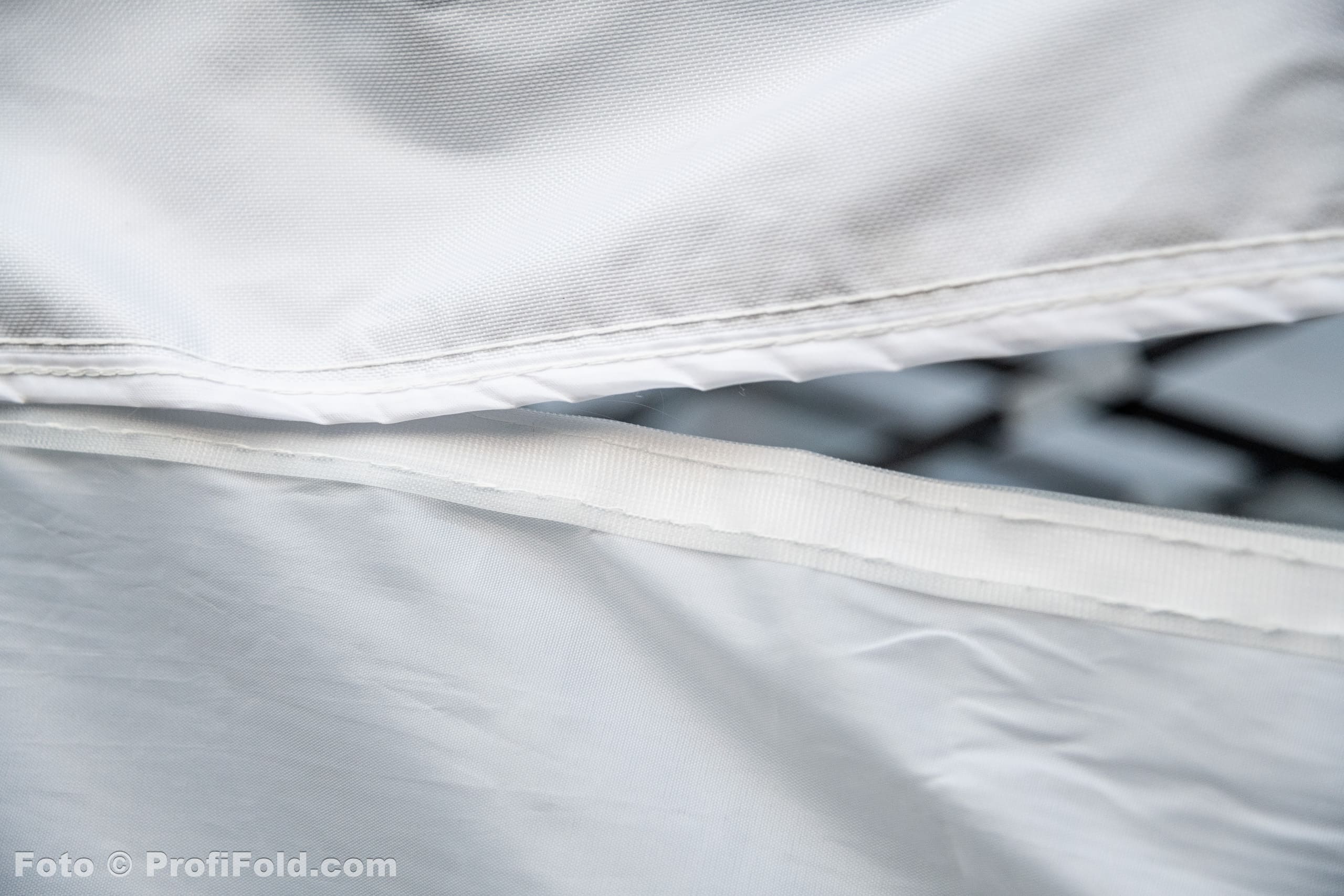 420g/m2). The sides are thinner and water-repellent (PVC 210D 15+g/m2).