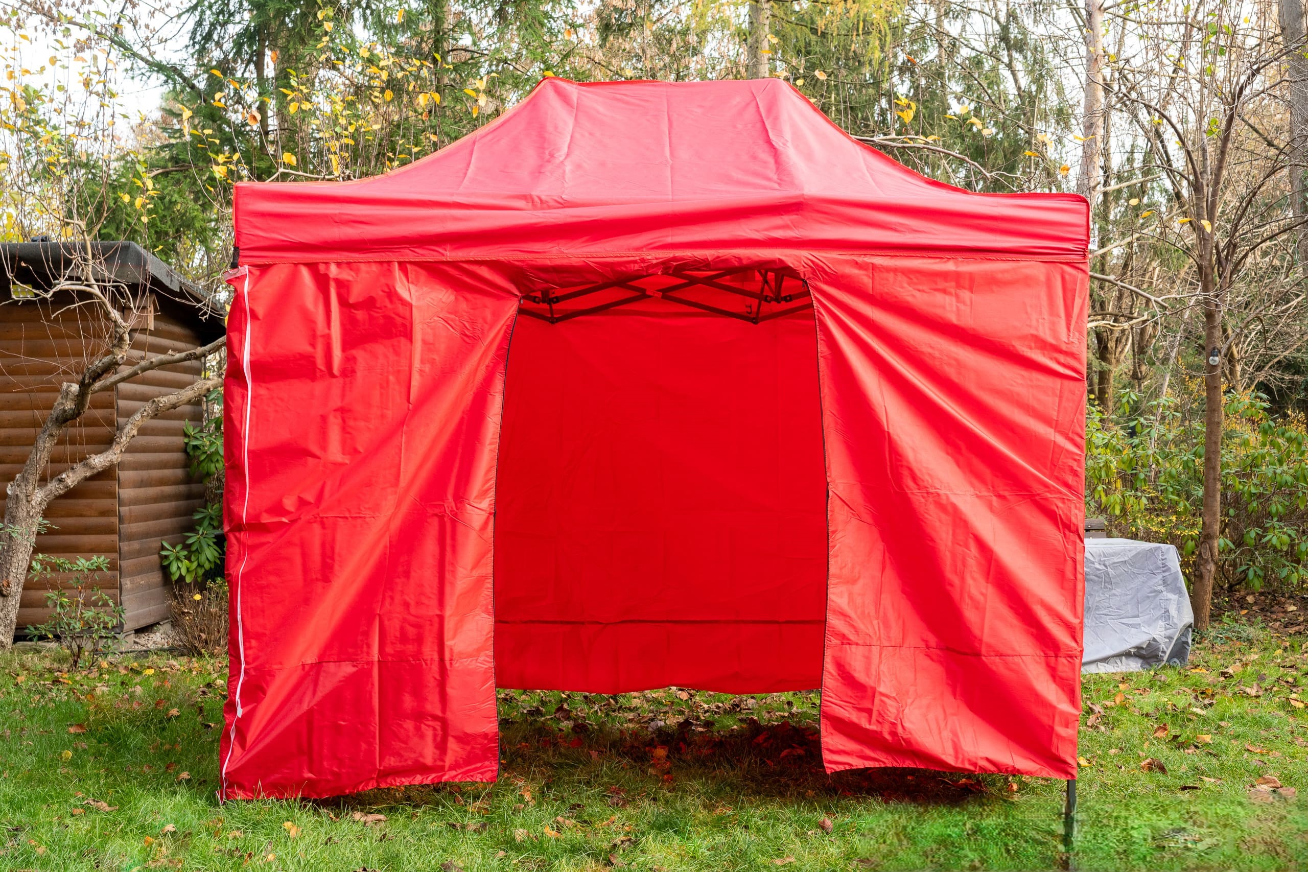 door with zipper. The roof is made of a thick, durable waterproof fabric (PVC 600D