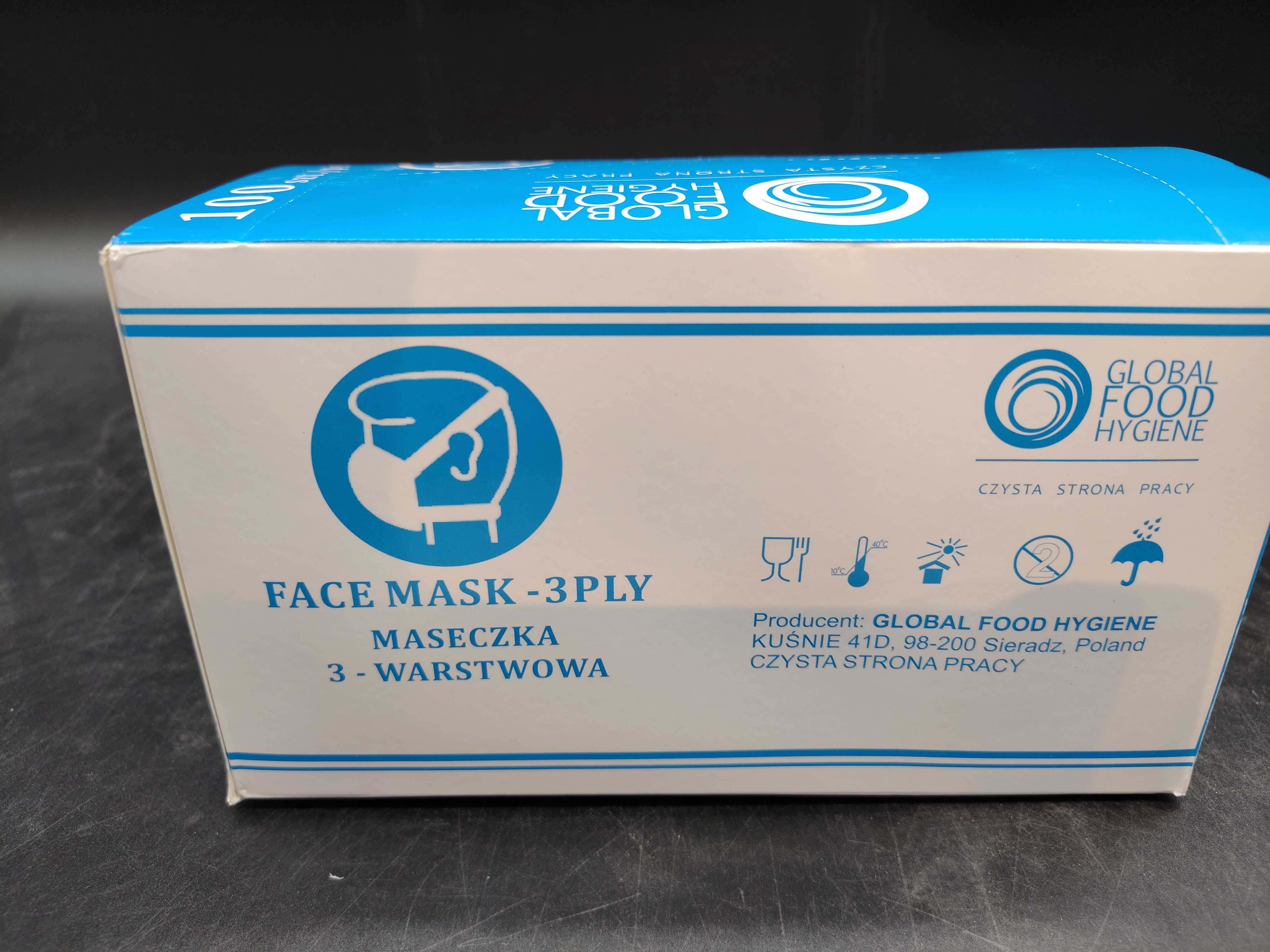 Disposable face mask with three layers (3-PLY) and IIR classification. Equipped with elastic ear loops and nose clip for a better fit. Suitable for hygienic environments.