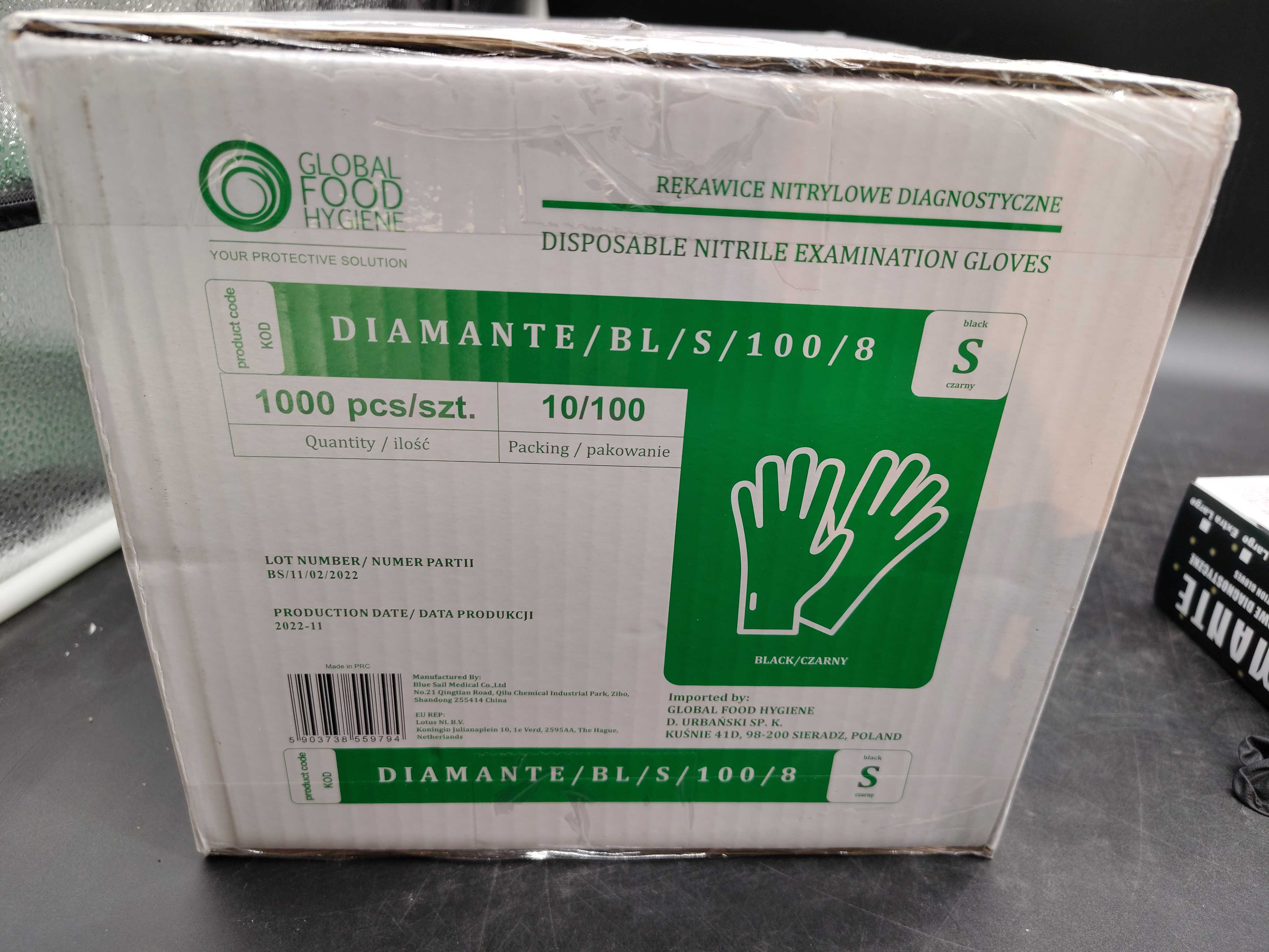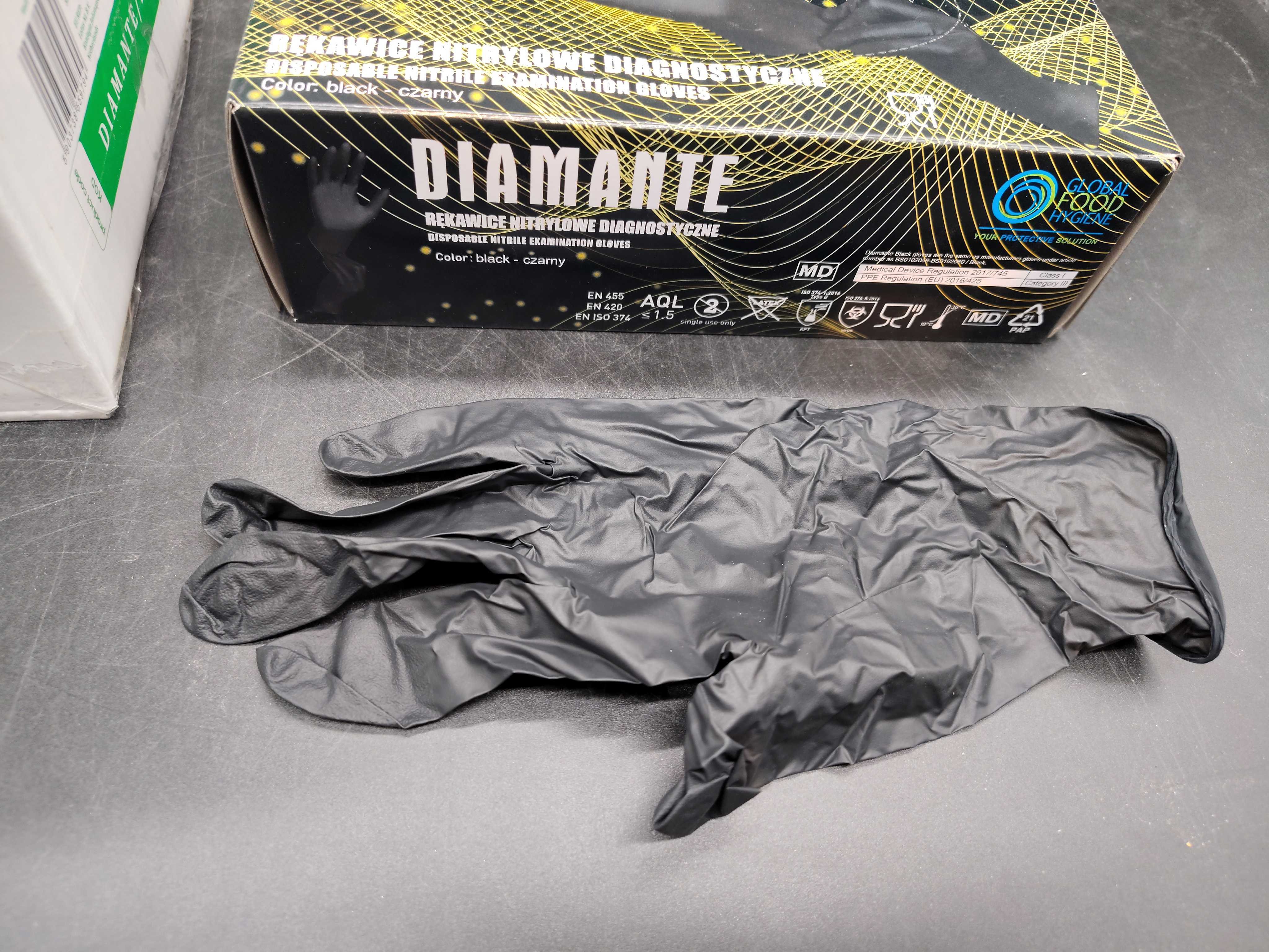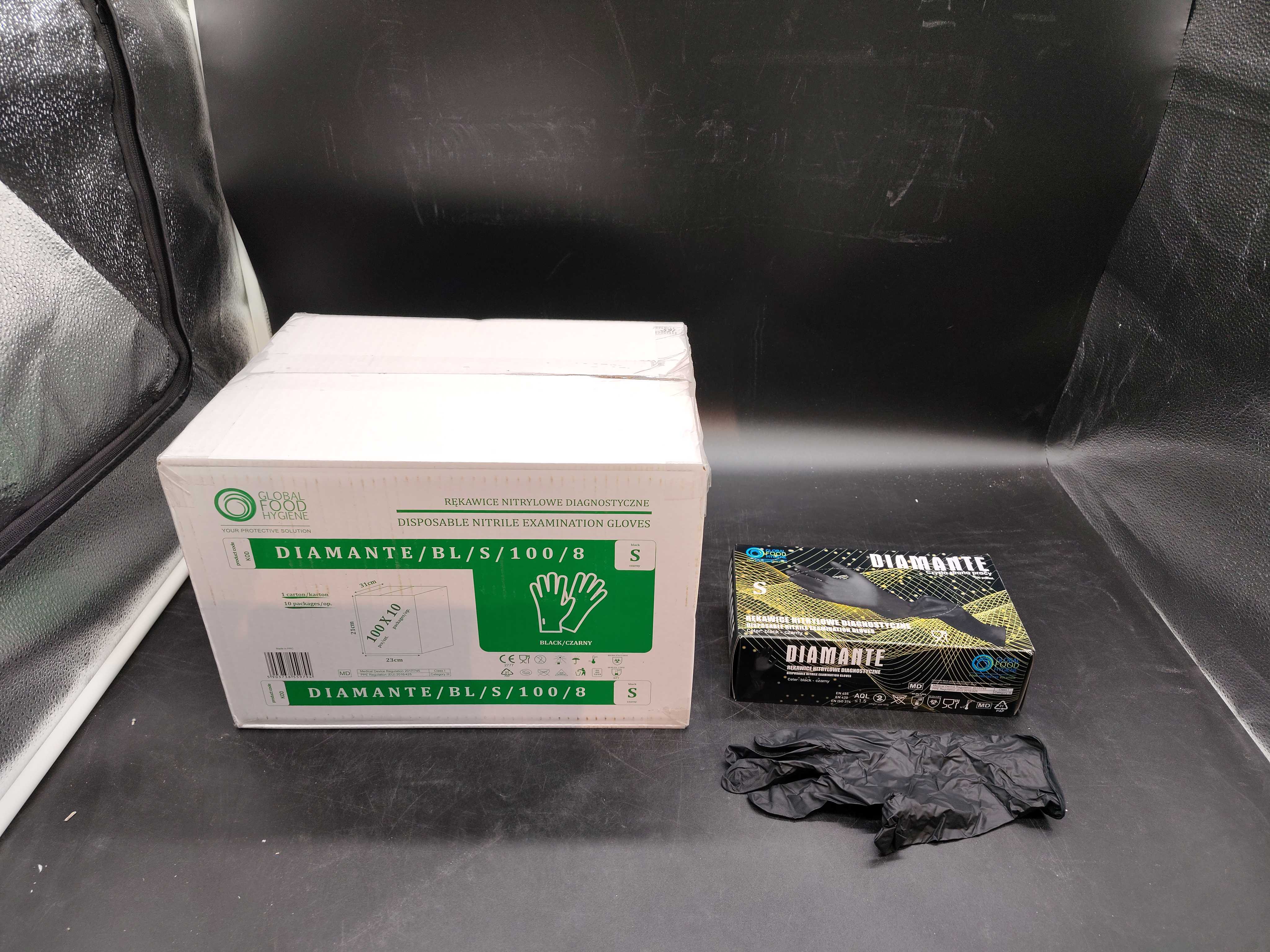 Disposable black nitrile gloves, size S. Powder-free and suitable for medical use, food handling and general hygiene. Packed in boxes of 100.