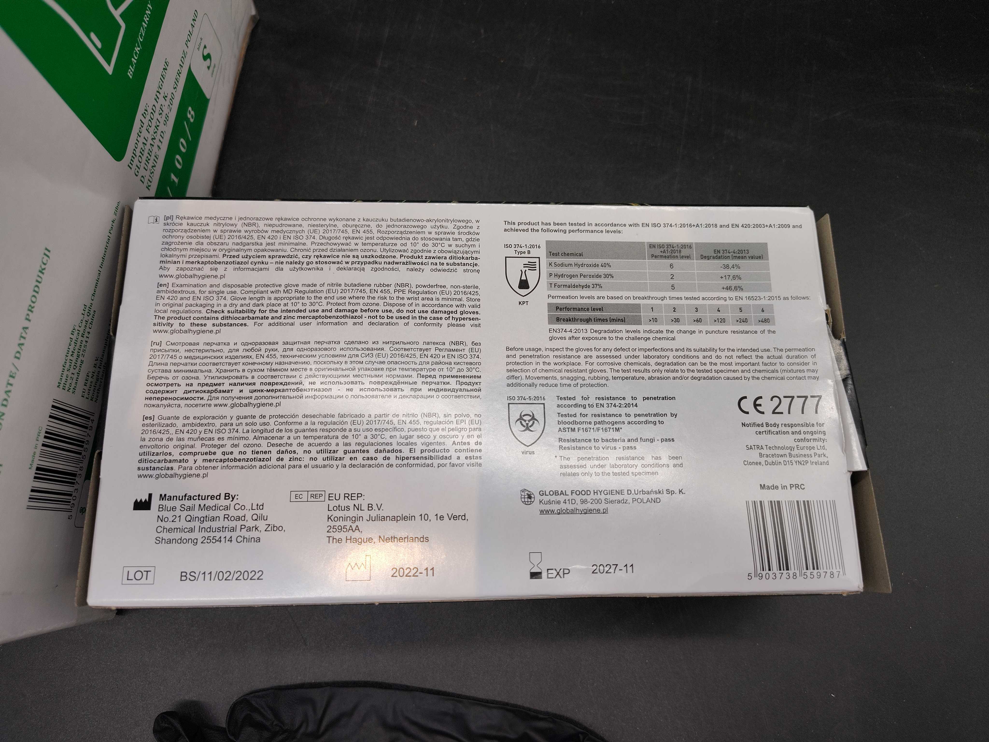 Among the items are disposable nitrile gloves powder-free blue, disposable nitrile gloves black powder-free, mouthguard IIR 3-PLY blue, machine stretch film nano, food film refill PE transparent, packaging tape transparent PP clear solvent, zipper bag without writing field