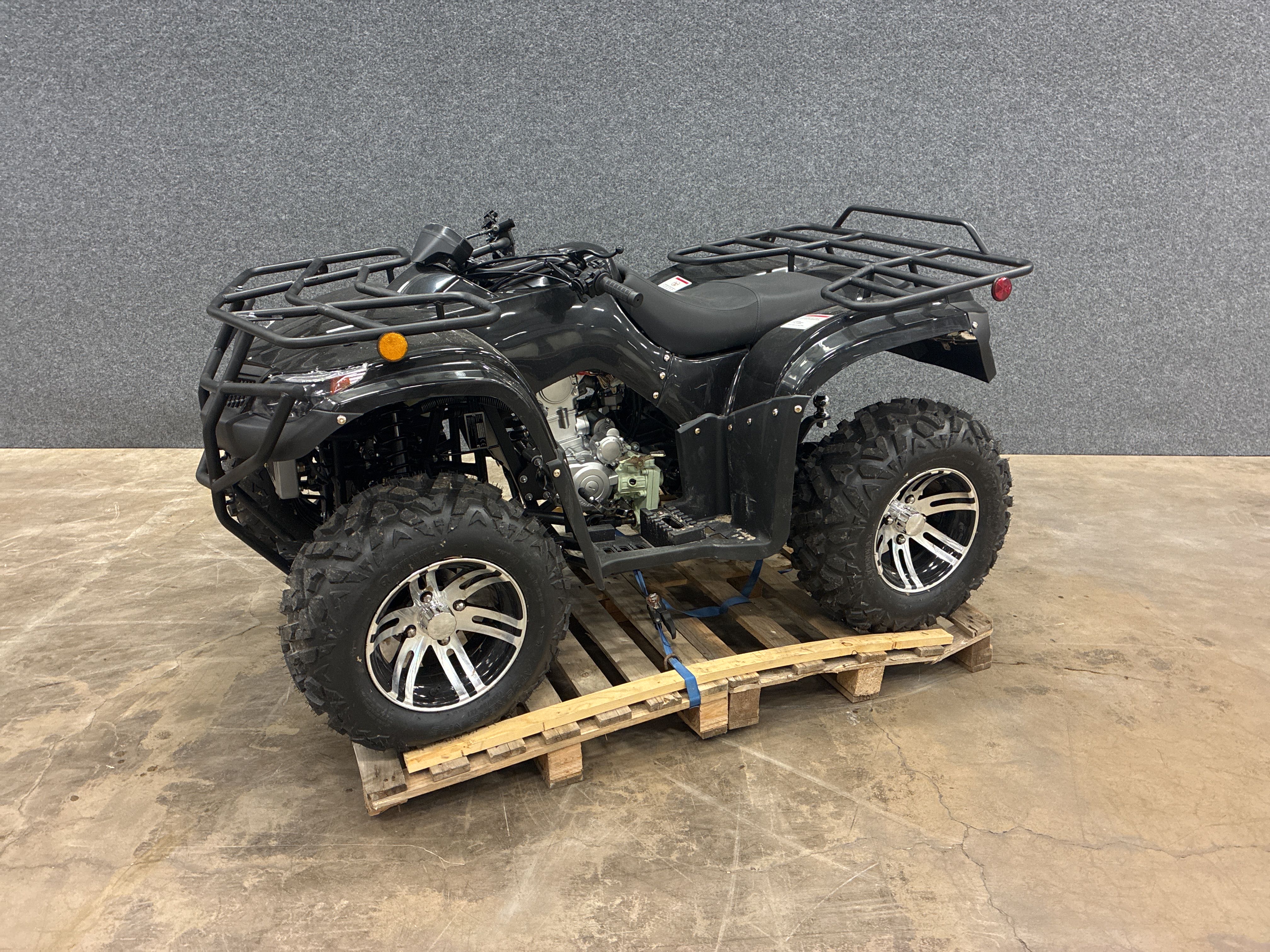 This quad is a smooth and modern ATV equipped with a 250cc, 4-stroke water-cooled engine and cardan drive. The ATV has a manual gearbox with four forward and reverse gears, which gives the driver full control over the vehicle's performance. With a maximum power of 11.5 kW, it can reach a top speed that is sufficient for both work and leisure. The fuel tank holds 12 liters, which provides a good range for longer trips. The quad is equipped with both front and rear brakes and robust wheels that provide stability and control in varying terrain.