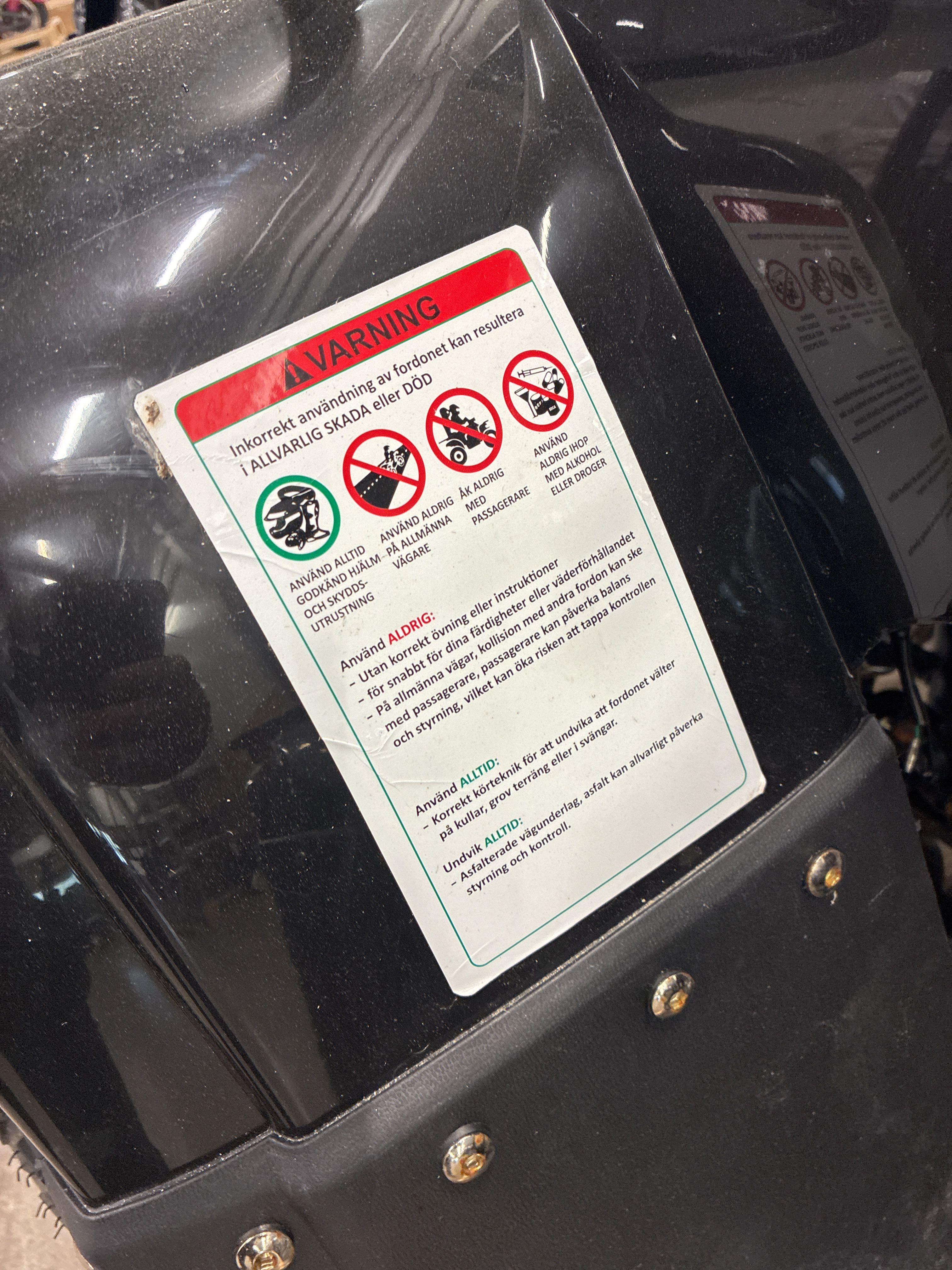- May only be driven in a fenced area, not approved for roads.