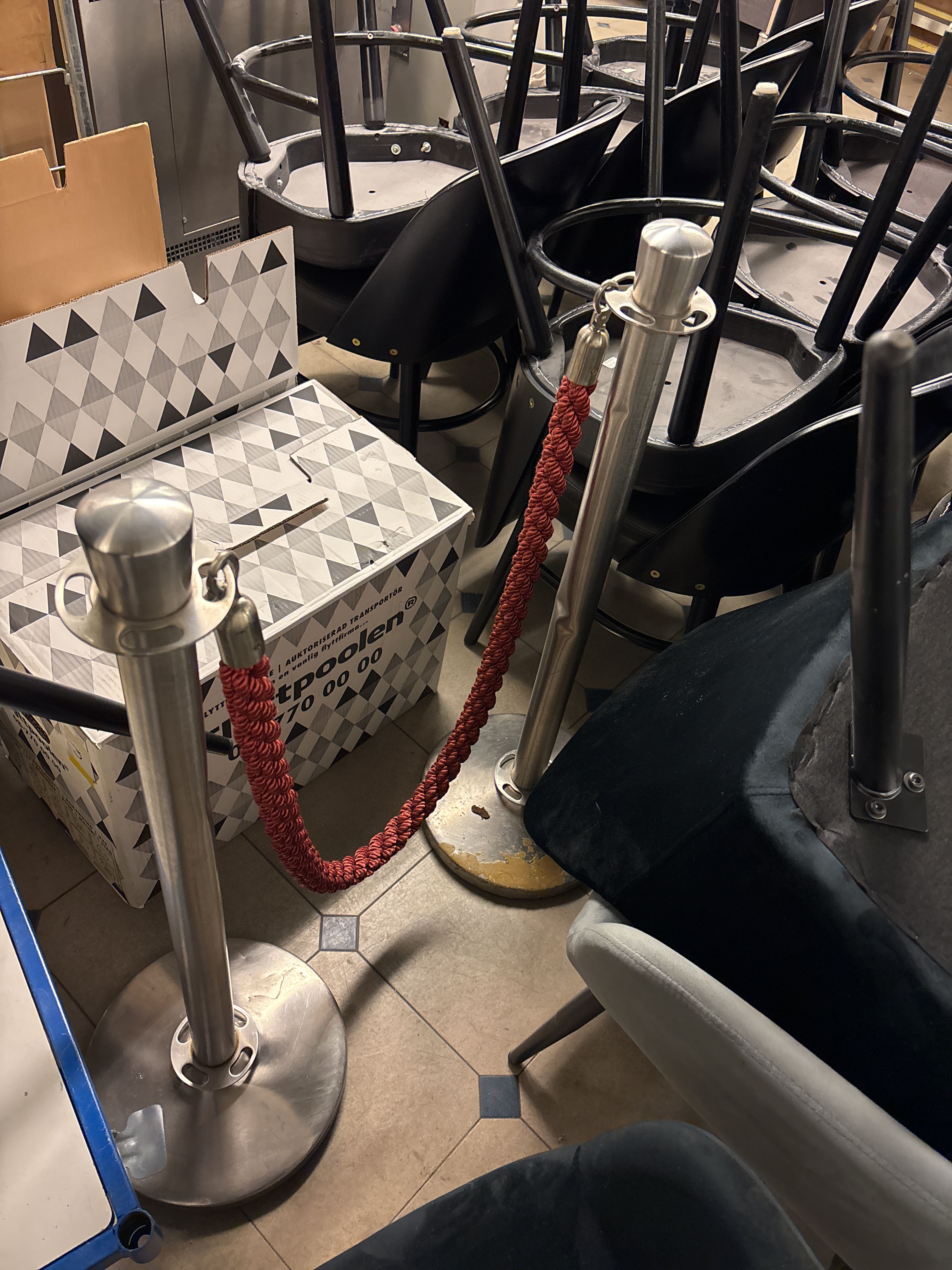 • 2 barrier posts with a braided rope between them.