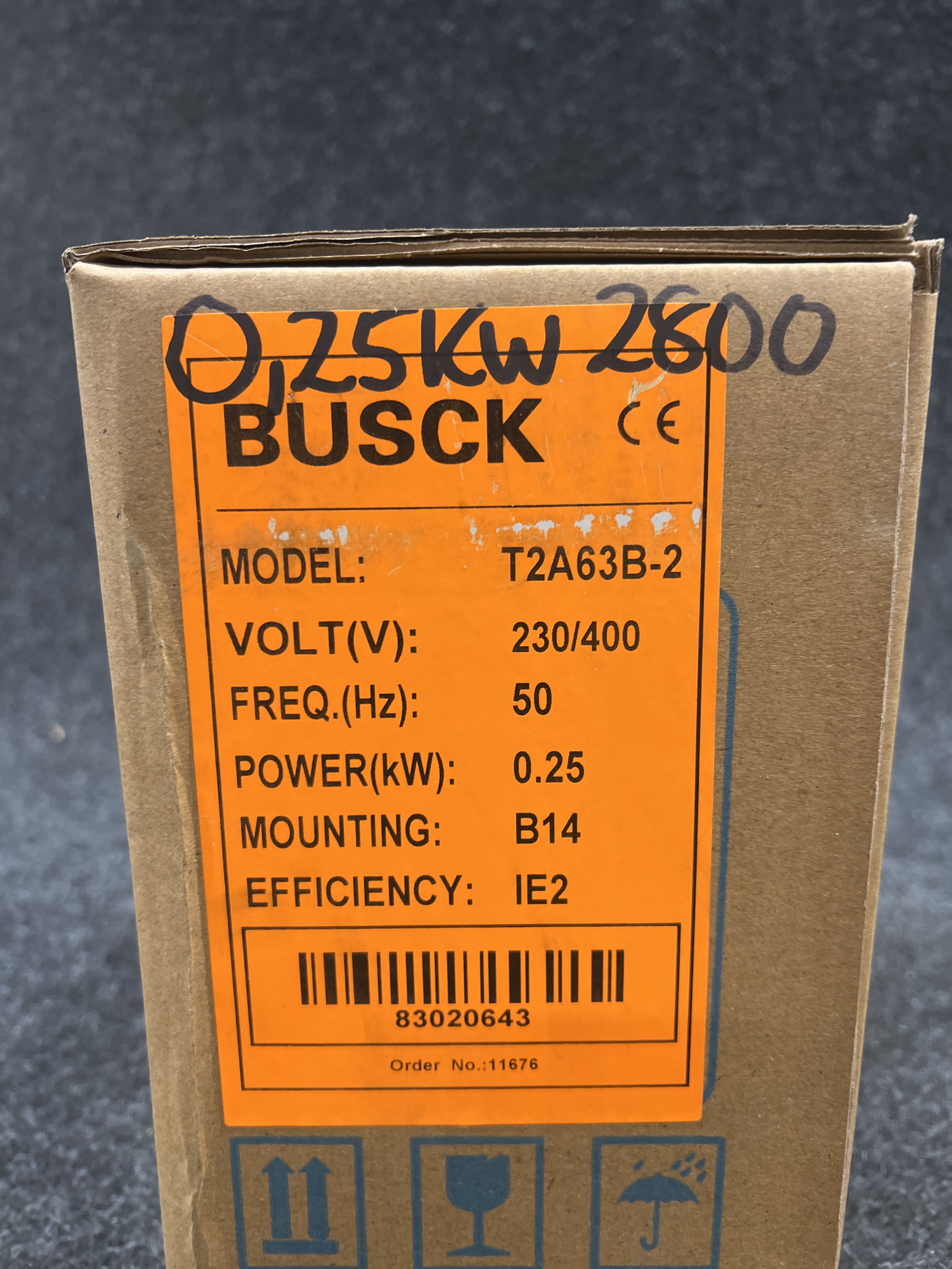3-phase motor Busck T2A63B-2 0.25kw 2800t/m 230/400V B14