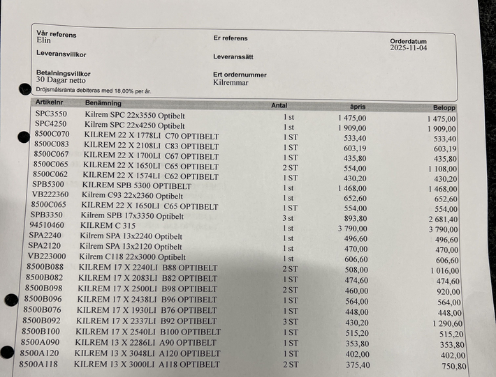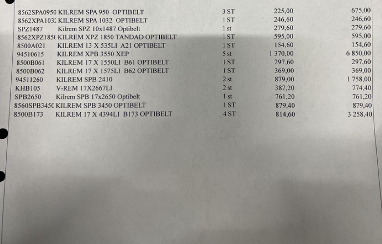 Lot with V-belts