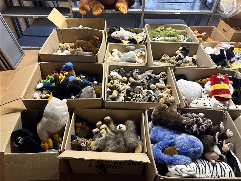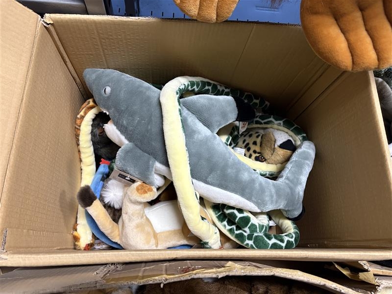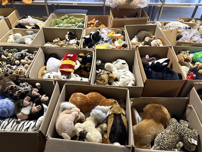 Lot of stuffed animals – mixed animal models in boxes