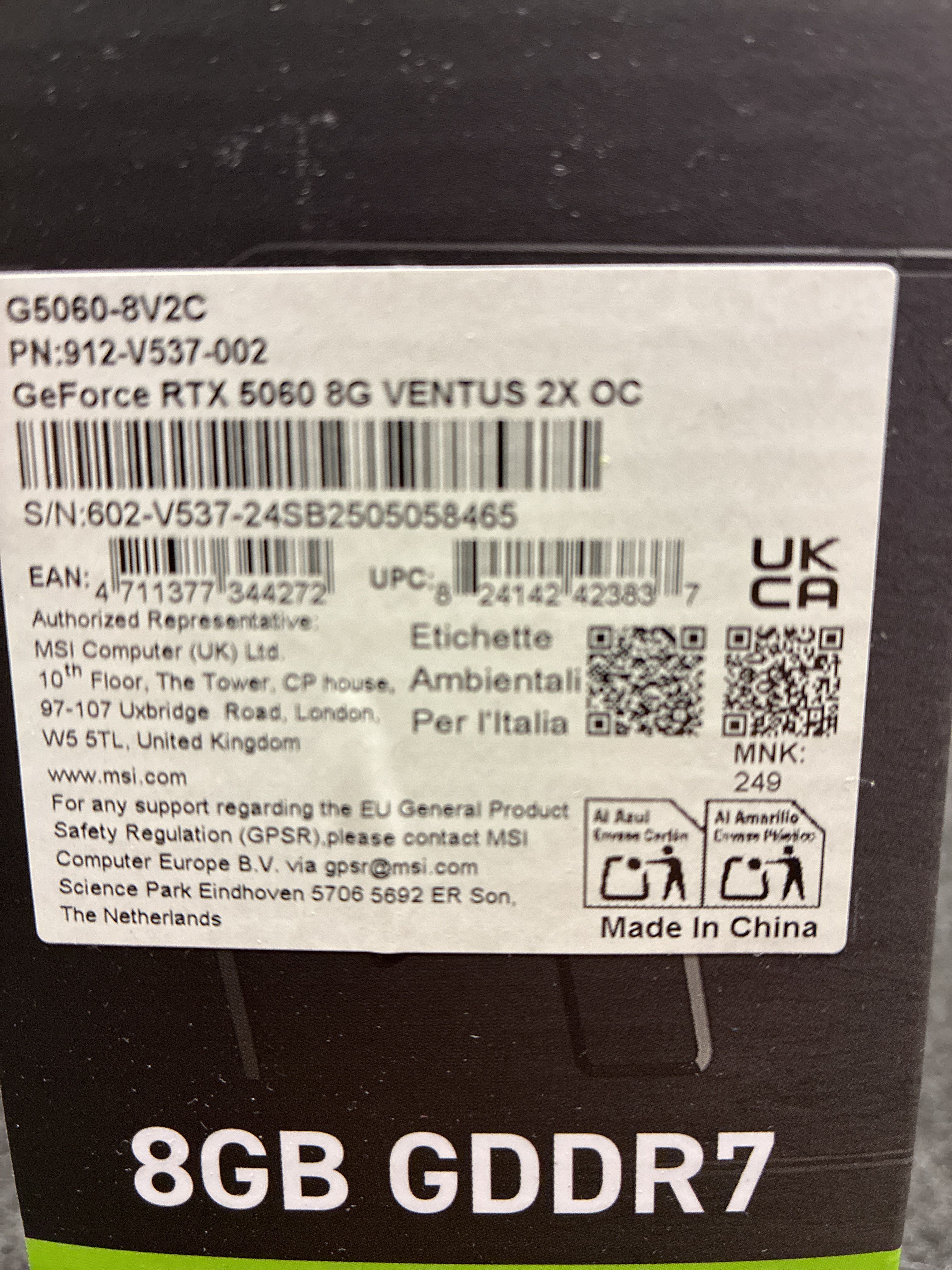 Graphics card MSI GeForce RTX 5060 VENTUS 2X.