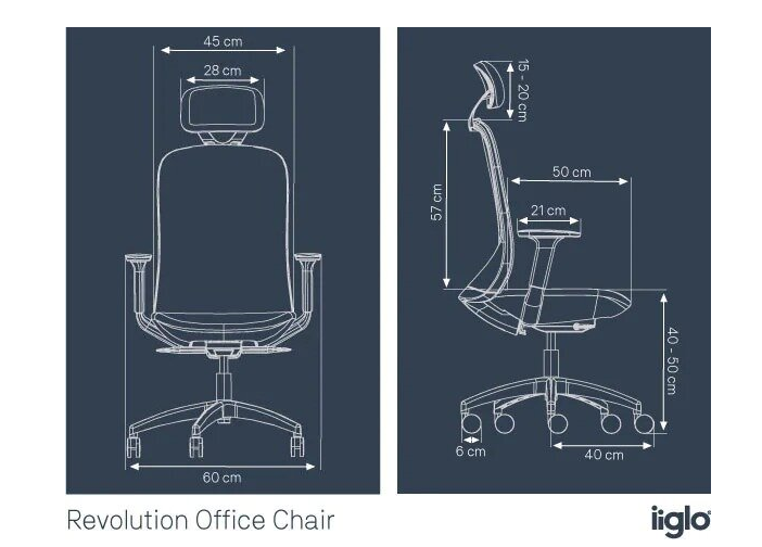 iiglo Ergo Revolution is an ergonomic office chair designed together with the German design studio FORM AND BRANCH. Its unique ergonomic shape gives you perfect back support and a healthy sitting posture, allowing 360 joints and more than 700 muscles to move effectively throughout the day. This helps reduce strain and increases your productivity during long days at the office.