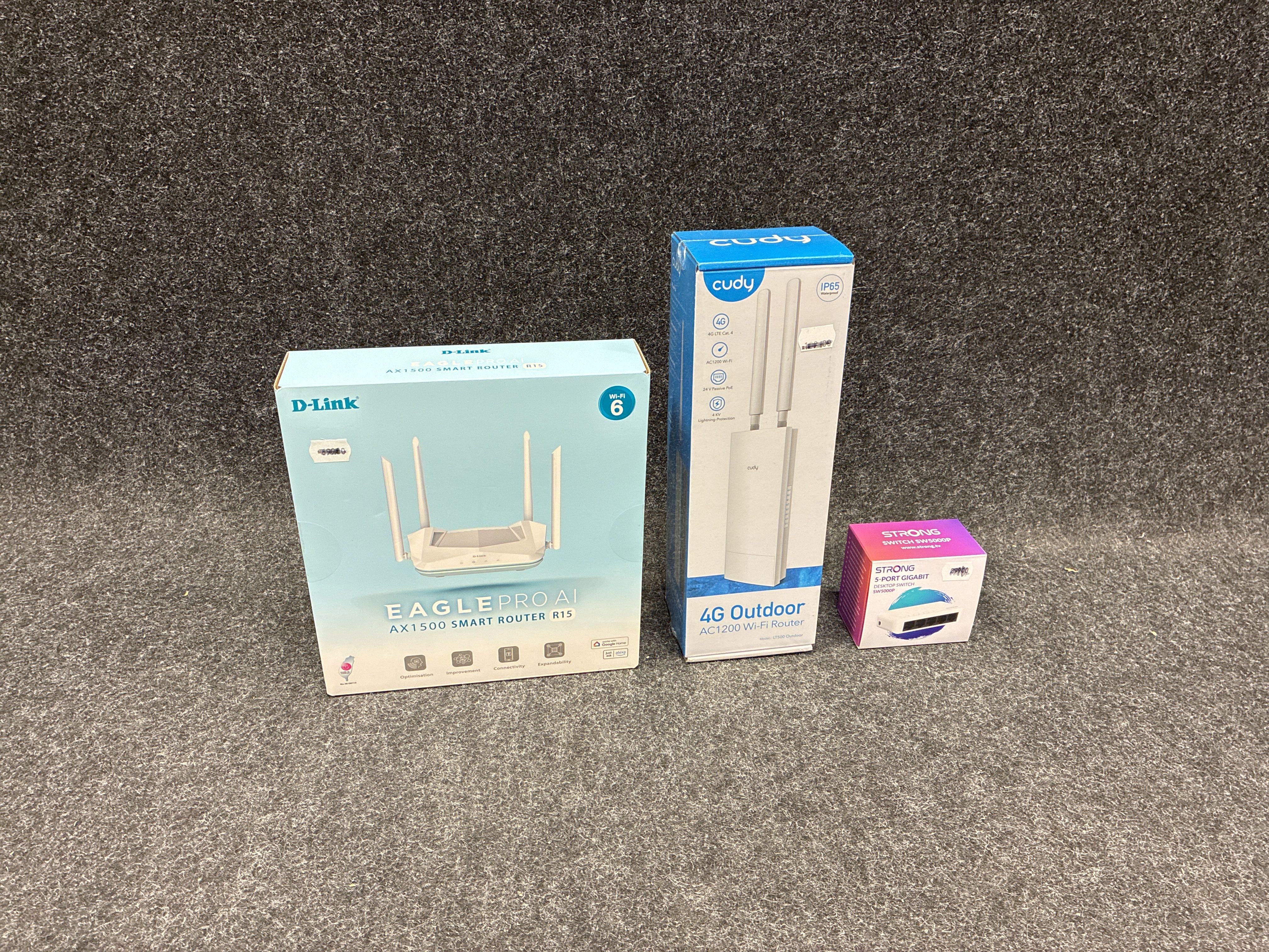 Router AC1200 Cudy, Desktop switch Strong & Router D-Link AX1500