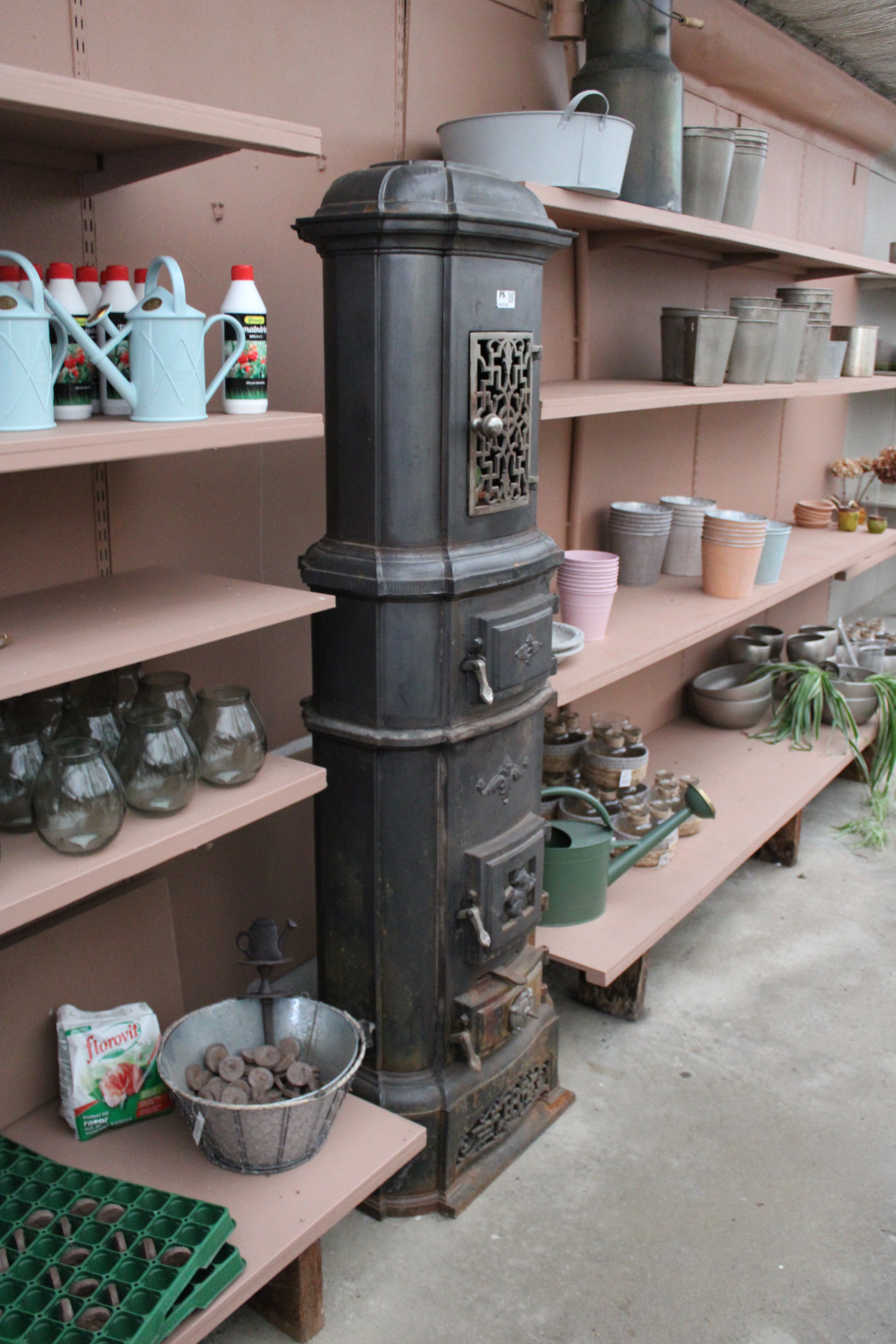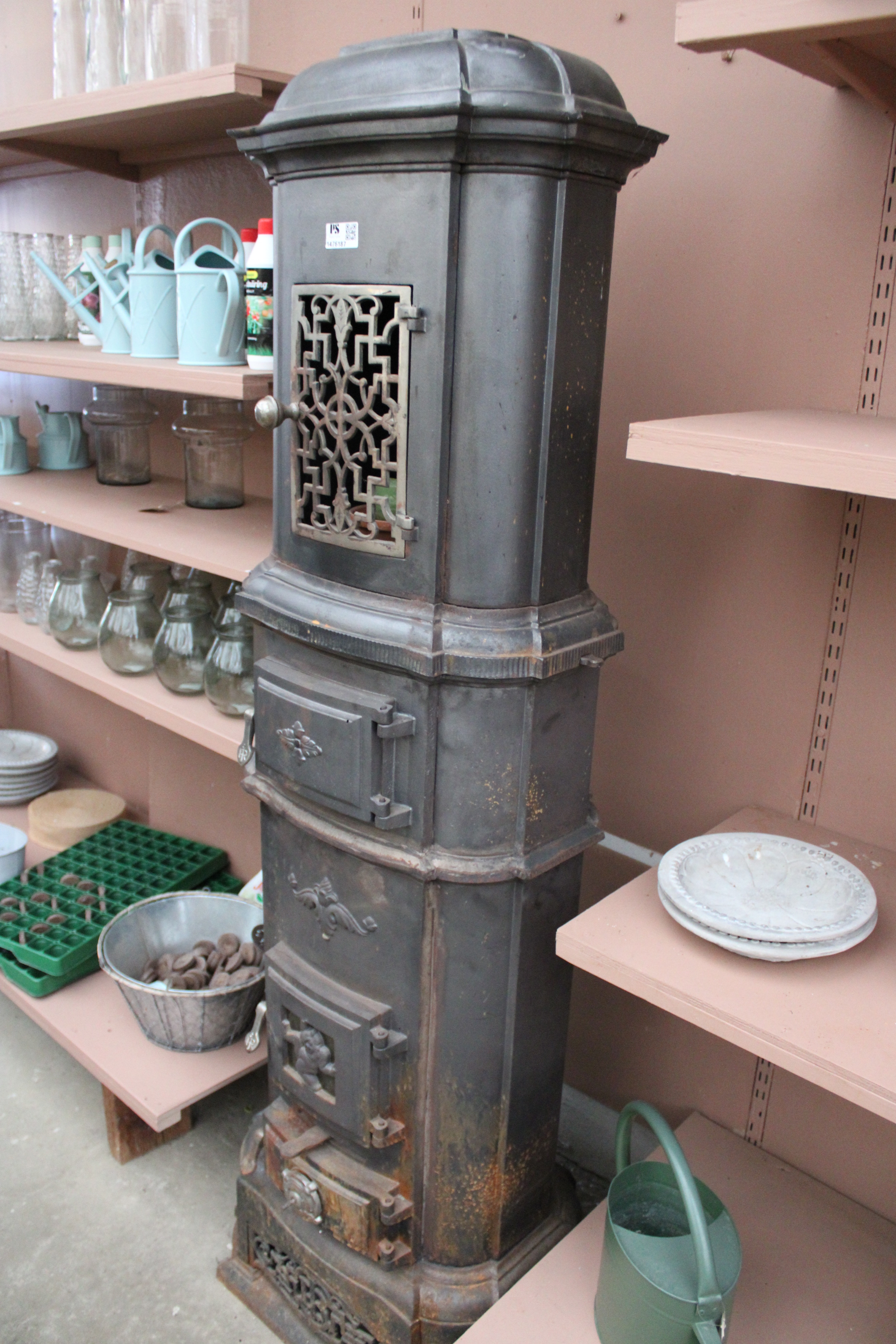 Cast iron stove, approx. 1.7 m high