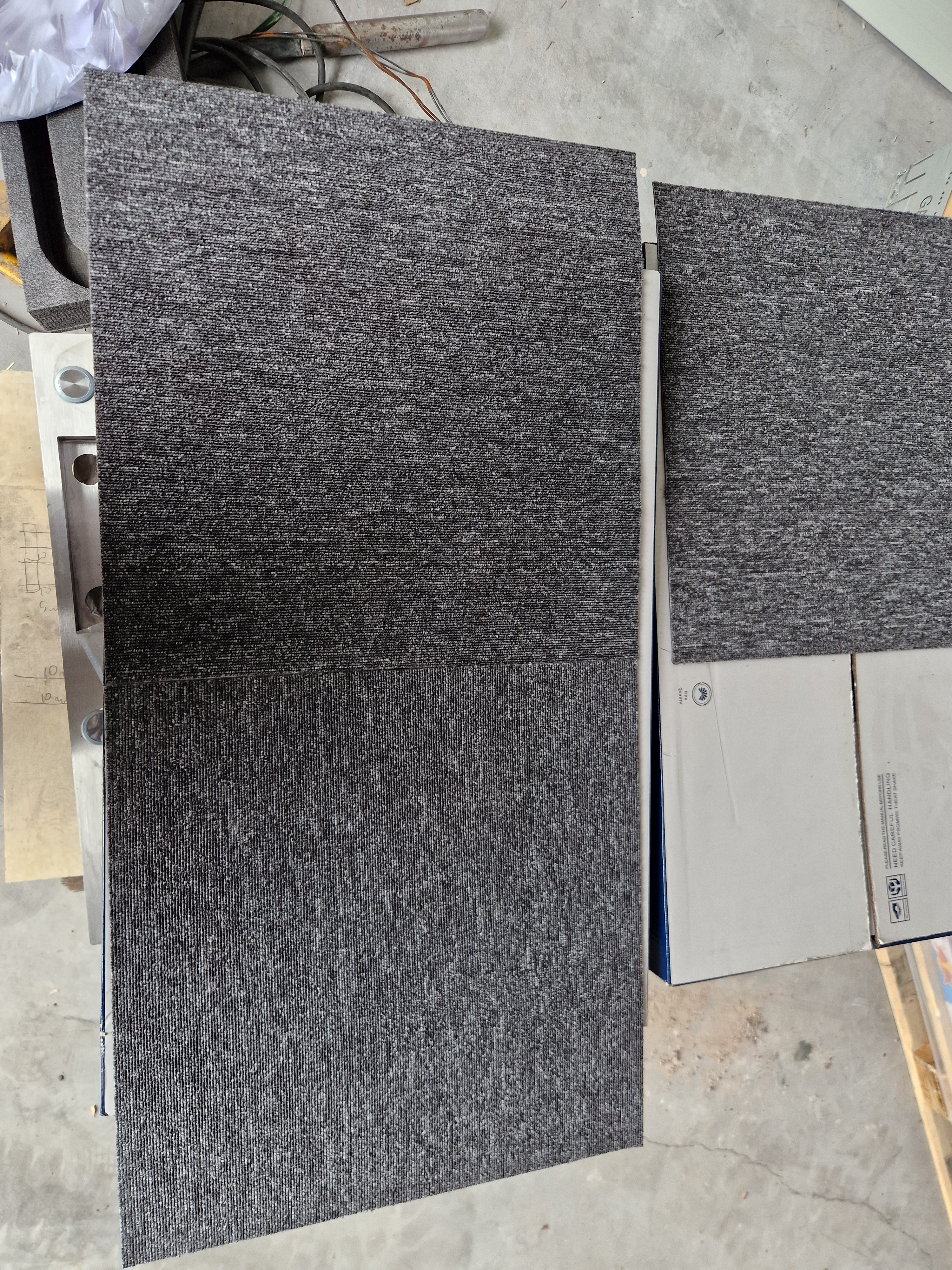 - Textile tiles for flooring, suitable for offices, shops or other indoor environments. Supplied in pieces of 50 x 50 cm.