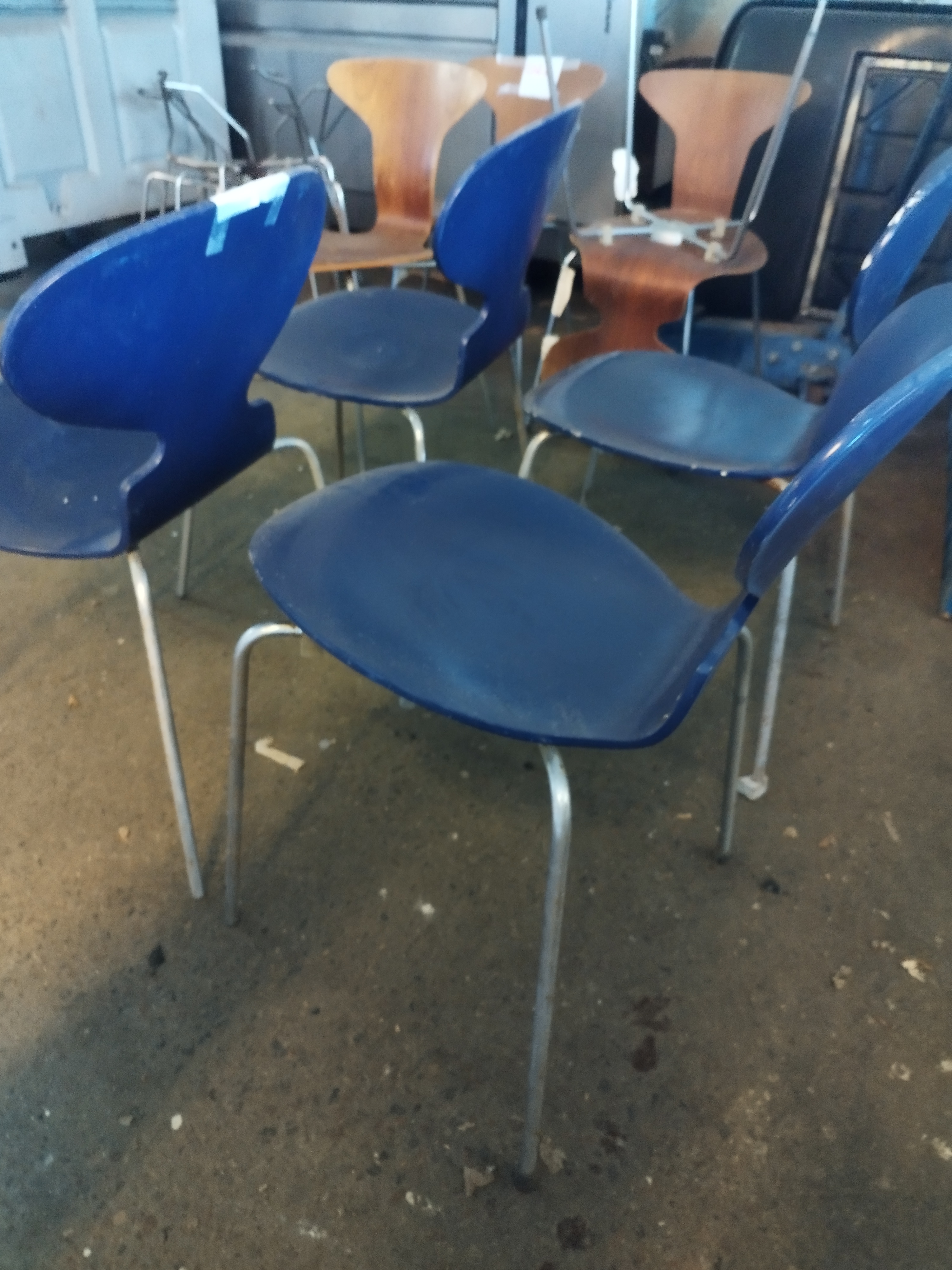 4 original Myran chairs. Good backs. Slightly chipped paint. Chromed legs that need to be repaired.