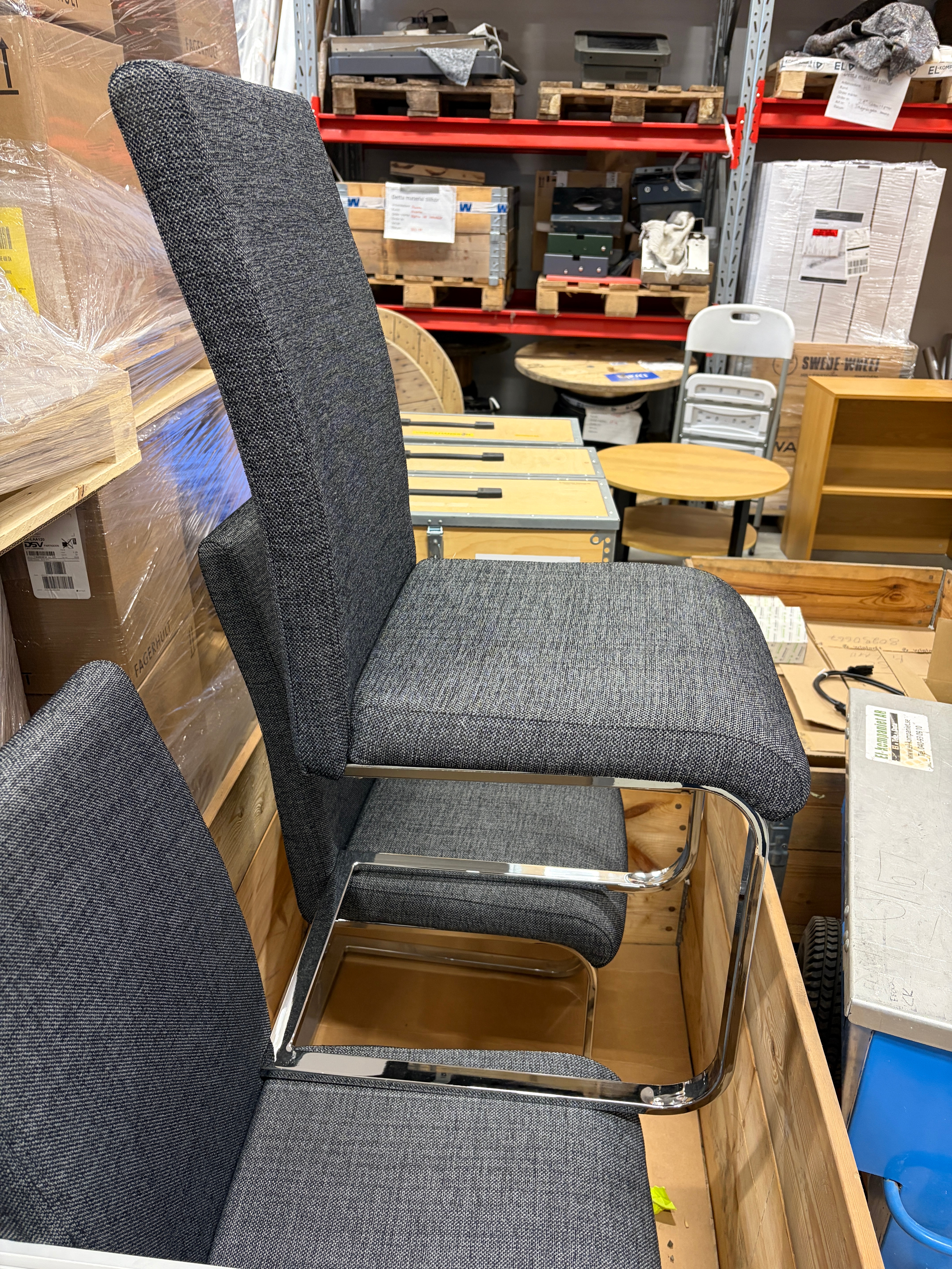 This auction includes office furniture such as desks, filing cabinets and storage cabinets, as well as ladders from Skeppshult and Scando in various lengths. There are also cable drums, cord racks, material carts and a pair of electric scooters from Ninebot by Segway.