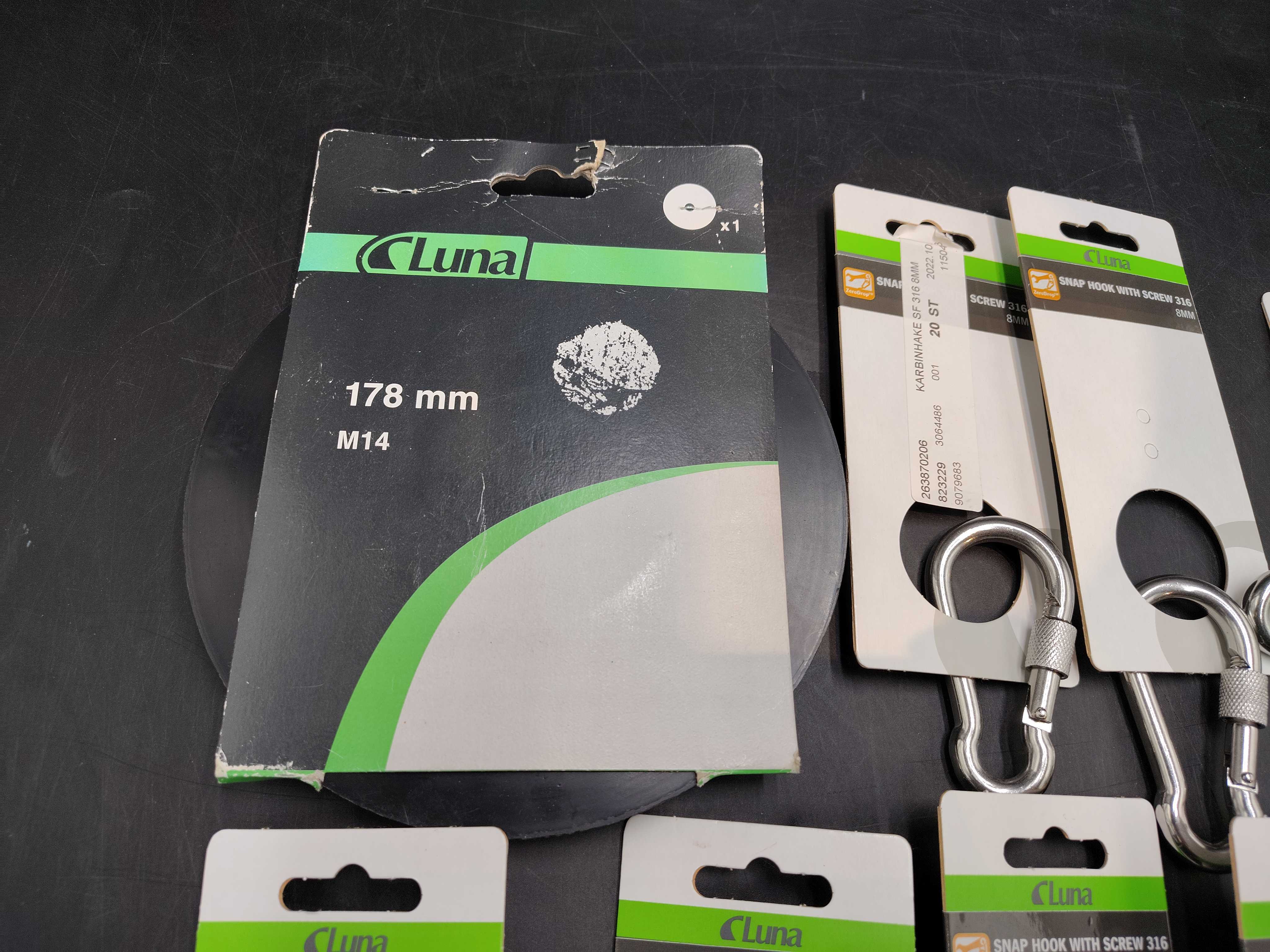 Carabiners, 11 pcs, Support plate 1 pc - Luna